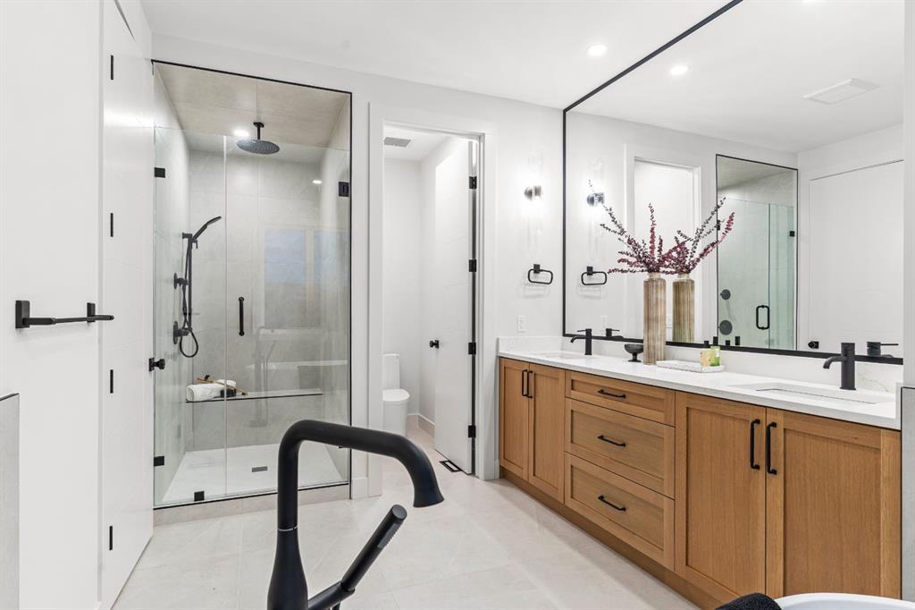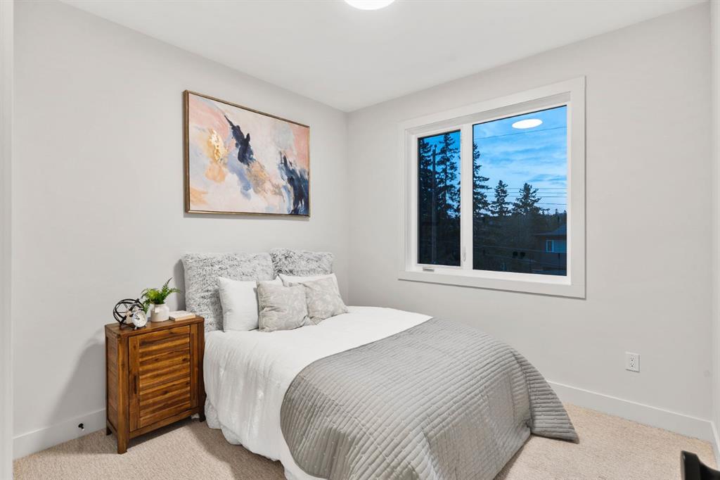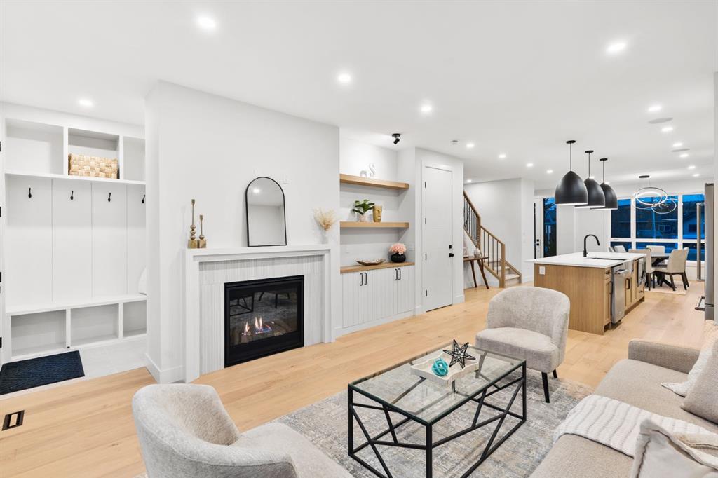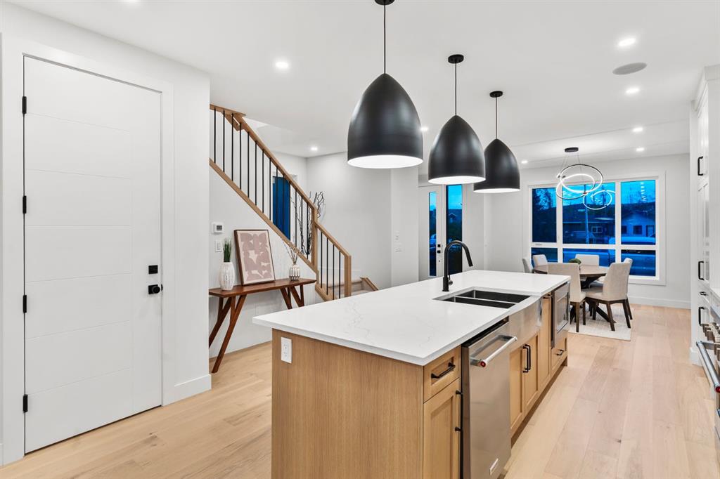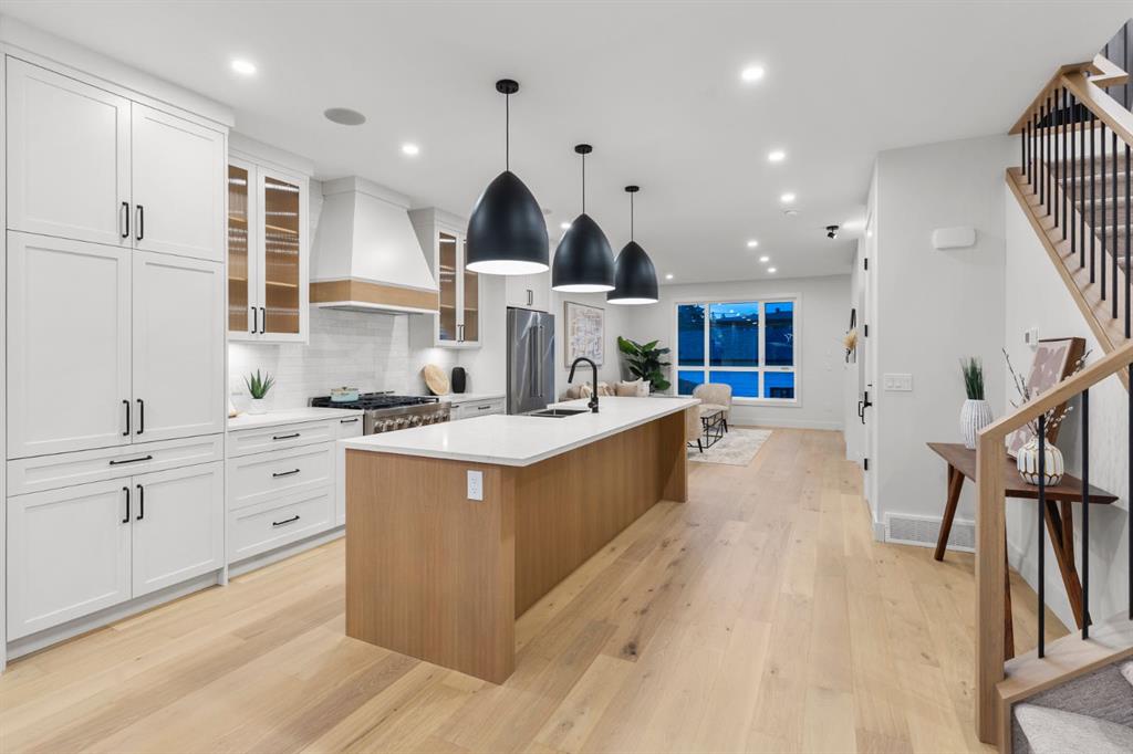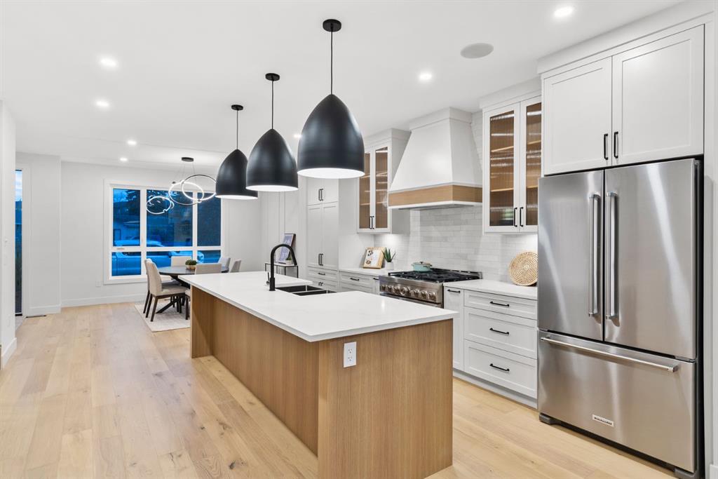 Experience refined living in this stunning custom-built home, where craftsmanship, comfort, and design come together seamlessly in the heart of Bowness. The entry opens to a bright, airy layout that flows naturally from a formal dining room accented with elegant custom wainscoting into a beautifully appointed kitchen featuring white oak cabinetry, a large quartz island, and premium KitchenAid appliances. Thoughtfully designed for both family living and entertaining, the kitchen transitions into a warm, inviting living room centred around a sleek gas fireplace and framed by oversized windows that fill the space with natural light. A spacious mudroom with built-in storage leads you into a stunning powder room. The mudroom also provides direct access to the backyard, keeping the main floor practical and organized. Upstairs, the primary suite offers a calm retreat with high tray ceilings, a custom feature wall, a large window with south exposure, a large walk-in closet and a luxurious ensuite featuring a freestanding tub, glass shower, dual vanities, and in-floor heating. Two additional bedrooms, a full bath, a laundry room, and a cozy family area complete the upper level. The fully developed lower level features a legal suite with two bedrooms, a stylish kitchen, laundry, and a private entrance, perfect for extended family or rental income. Outside, a large, landscaped yard offers space to entertain, garden, or simply unwind, completing this exceptional home that balances timeless finishes with modern livability. Additional upgrades include rough-ins for A/C, interior and exterior speakers, and security cameras. Nestled in the heart of Bowness, this home offers an unmatched balance of nature and convenience. Just steps from Bowness Park, Bowmont Park, and the Bow River pathway system, you’re surrounded by some of Calgary’s best outdoor spaces while staying minutes from everyday amenities, shops, and cafés. Nearby schools include Bowness High and several elementary options within walking distance, with downtown and the University of Calgary both an easy 10–15 minute drive. Call today to book your private tour.