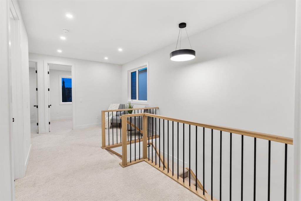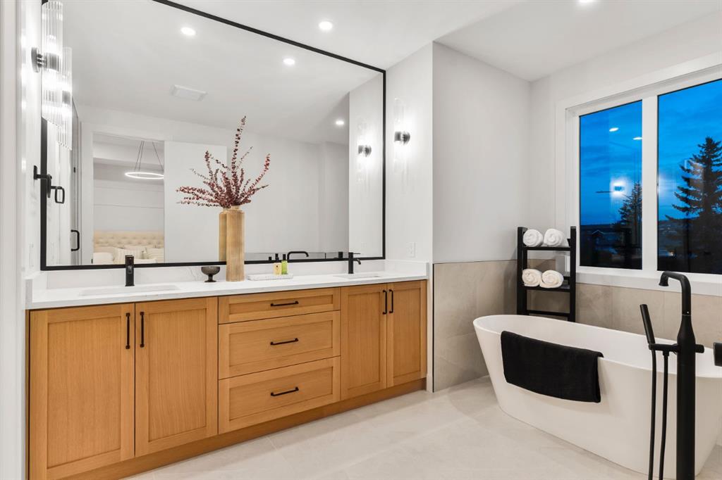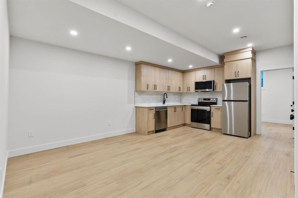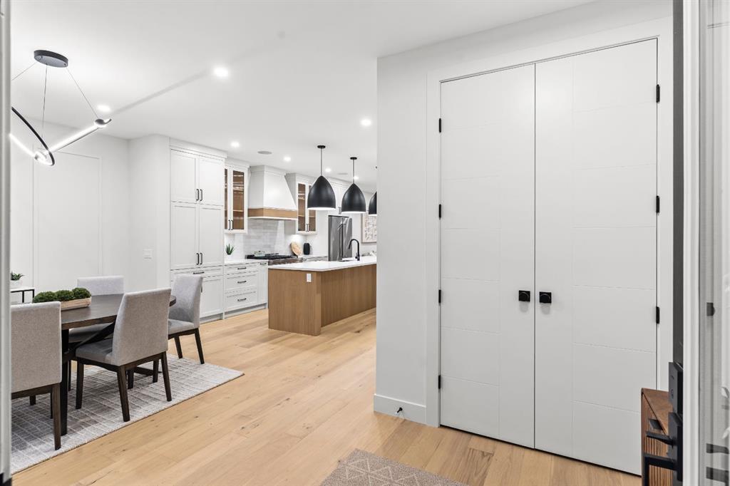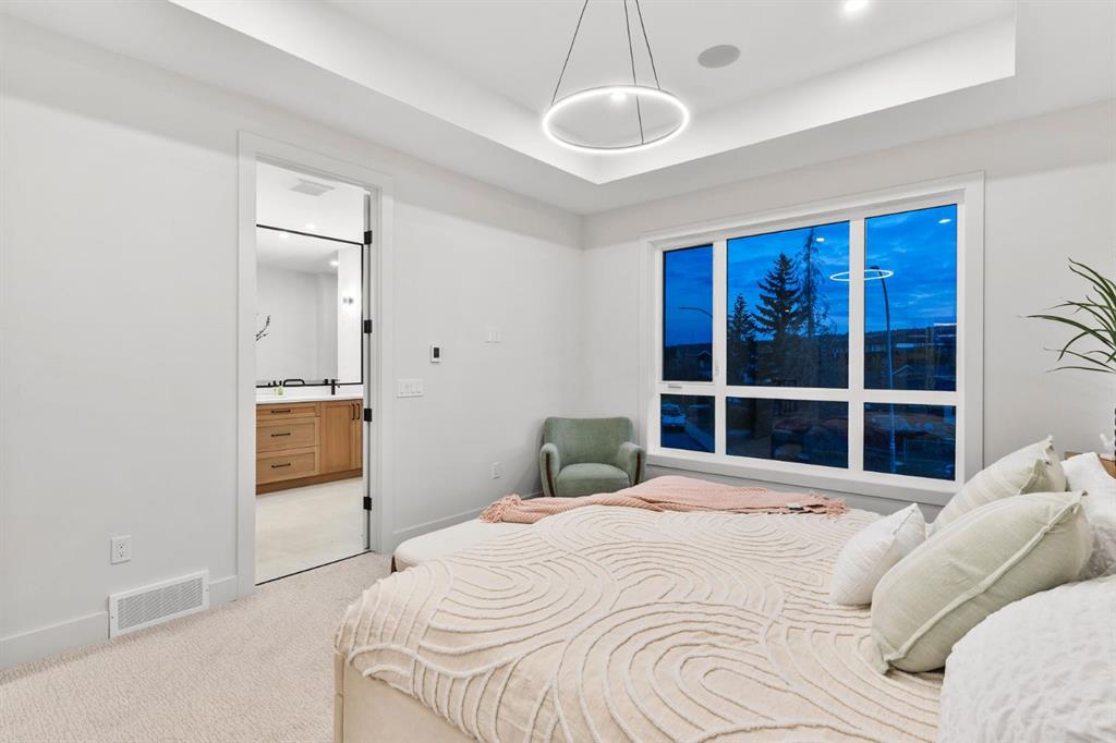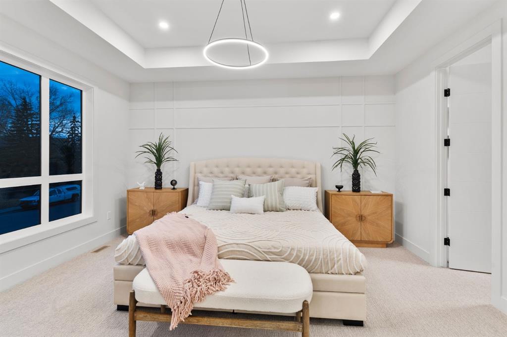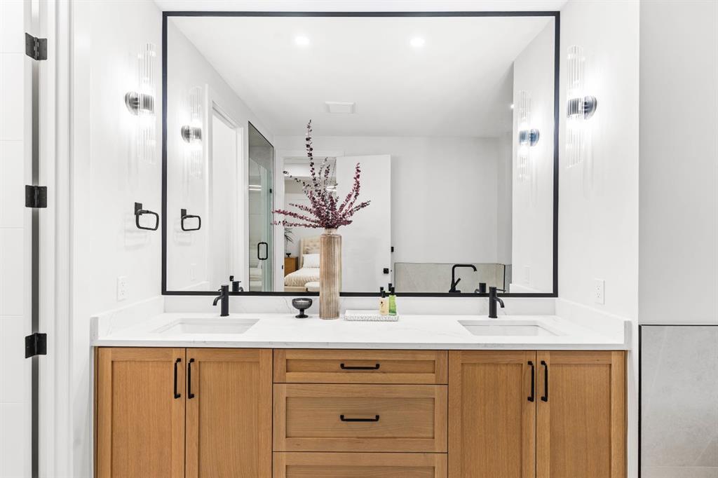 Experience refined living in this stunning custom-built home, where craftsmanship, comfort, and design come together seamlessly in the heart of Bowness. The entry opens to a bright, airy layout that flows naturally from a formal dining room accented with elegant custom wainscoting into a beautifully appointed kitchen featuring white oak cabinetry, a large quartz island, and premium KitchenAid appliances. Thoughtfully designed for both family living and entertaining, the kitchen transitions into a warm, inviting living room centred around a sleek gas fireplace and framed by oversized windows that fill the space with natural light. A spacious mudroom with built-in storage leads you into a stunning powder room. The mudroom also provides direct access to the backyard, keeping the main floor practical and organized. Upstairs, the primary suite offers a calm retreat with high tray ceilings, a custom feature wall, a large window with south exposure, a large walk-in closet and a luxurious ensuite featuring a freestanding tub, glass shower, dual vanities, and in-floor heating. Two additional bedrooms, a full bath, a laundry room, and a cozy family area complete the upper level. The fully developed lower level features a legal suite with two bedrooms, a stylish kitchen, laundry, and a private entrance, perfect for extended family or rental income. Outside, a large, landscaped yard offers space to entertain, garden, or simply unwind, completing this exceptional home that balances timeless finishes with modern livability. Additional upgrades include rough-ins for A/C, interior and exterior speakers, and security cameras. Nestled in the heart of Bowness, this home offers an unmatched balance of nature and convenience. Just steps from Bowness Park, Bowmont Park, and the Bow River pathway system, you’re surrounded by some of Calgary’s best outdoor spaces while staying minutes from everyday amenities, shops, and cafés. Nearby schools include Bowness High and several elementary options within walking distance, with downtown and the University of Calgary both an easy 10–15 minute drive. Call today to book your private tour.