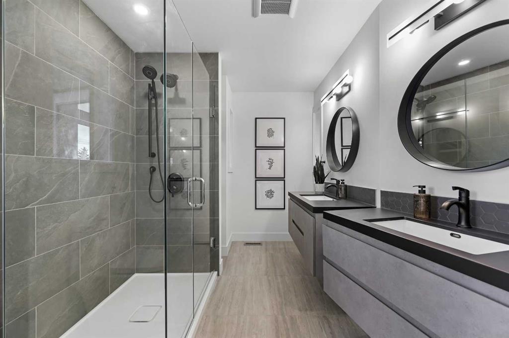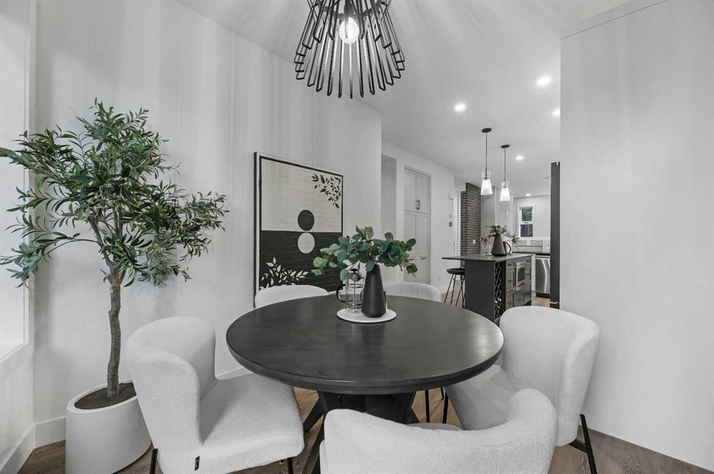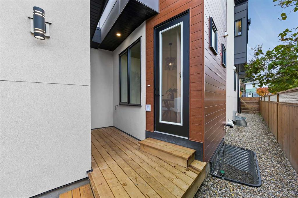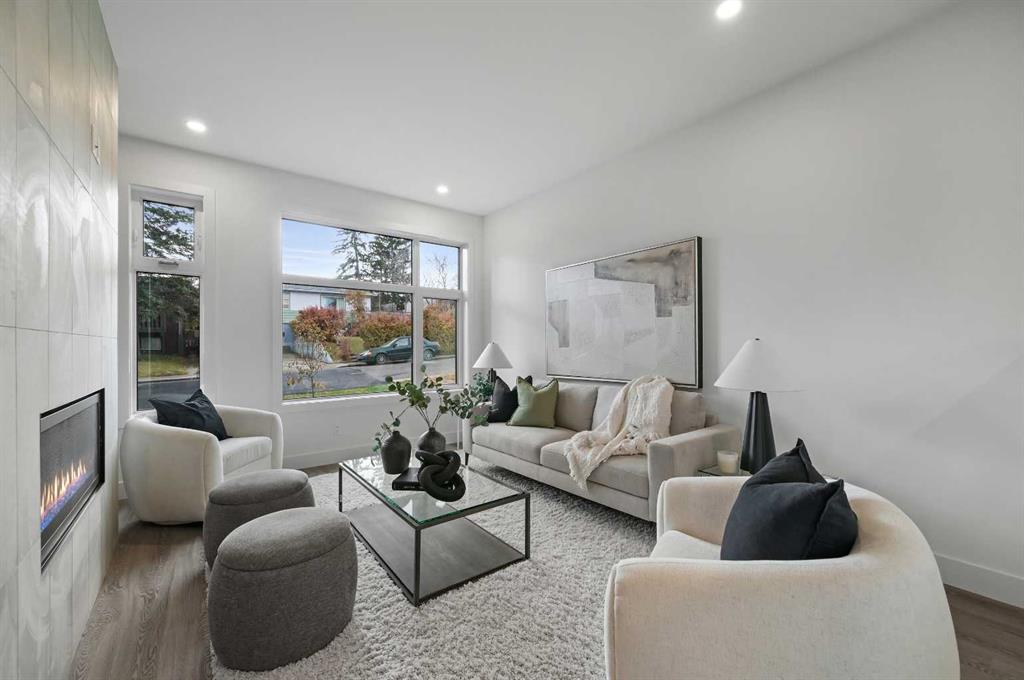 ** Brand new home with warranty ready for immediate possession ** Click on “Videos” for 3D tour ** Welcome to a very well built, contemporary 2 Storey infill, nestled on a whisper quiet street in a very desirable area of Bowness! Stunning features include: 2+1 bedrooms, 3.5 bathrooms, almost 2150 square feet of developed living space with excellent layout making the home feel larger, chef’s kitchen with stone counters & high end appliance package, 9 foot ceilings on main floor, upper office/loft area, cozy gas fireplace, amazing master retreat with towering 13 foot ceilings/4-piece “spa like” master bath/good sized private balcony, custom built-ins in EVERY closet & cupboard, solid core doors, roughed-in A/C, insulated/drywalled double ATTACHED garage, wet bar, upper laundry and much more! Location is amazing – super quiet street with front and rear street access (very rare), 1 block to the Bow River/Bow River Pathway System, only a 10 minute drive to downtown & easy access to all the great amenities in the area! This brand new masterpiece was completed August 2025, is ready for new owners AND comes with bumper to bumper warranty (1 year, 2 year, 5 year, 10 year). Even the landscaping is complete – sidewalks/rear deck/fences & gates – just move in and enjoy! Amazing quality – amazing location!