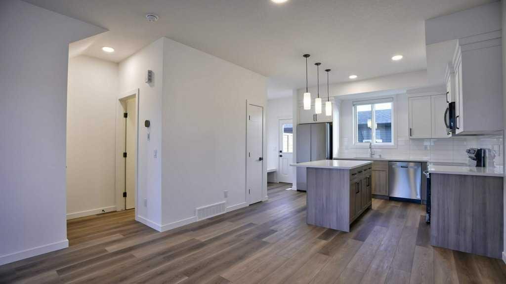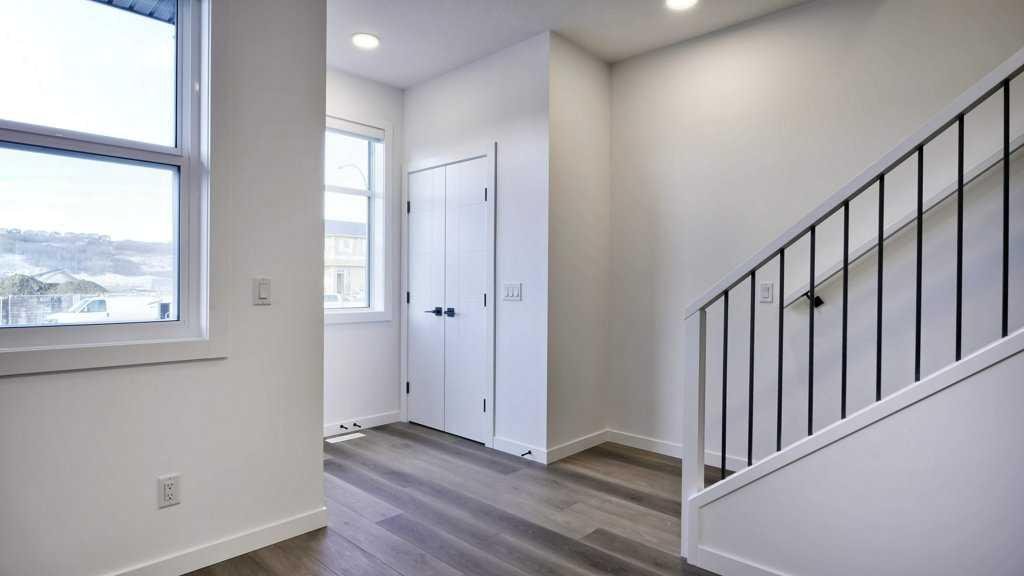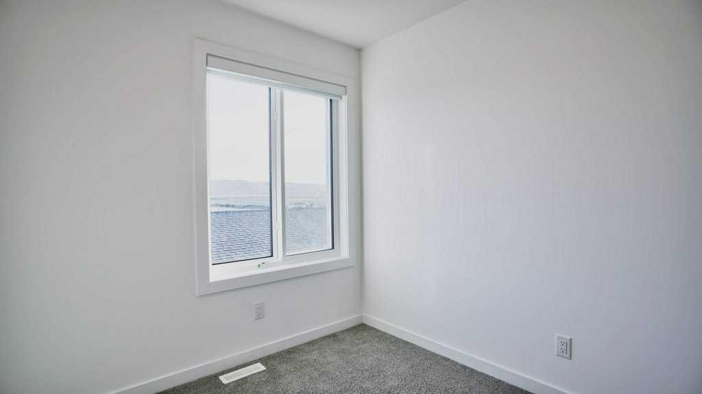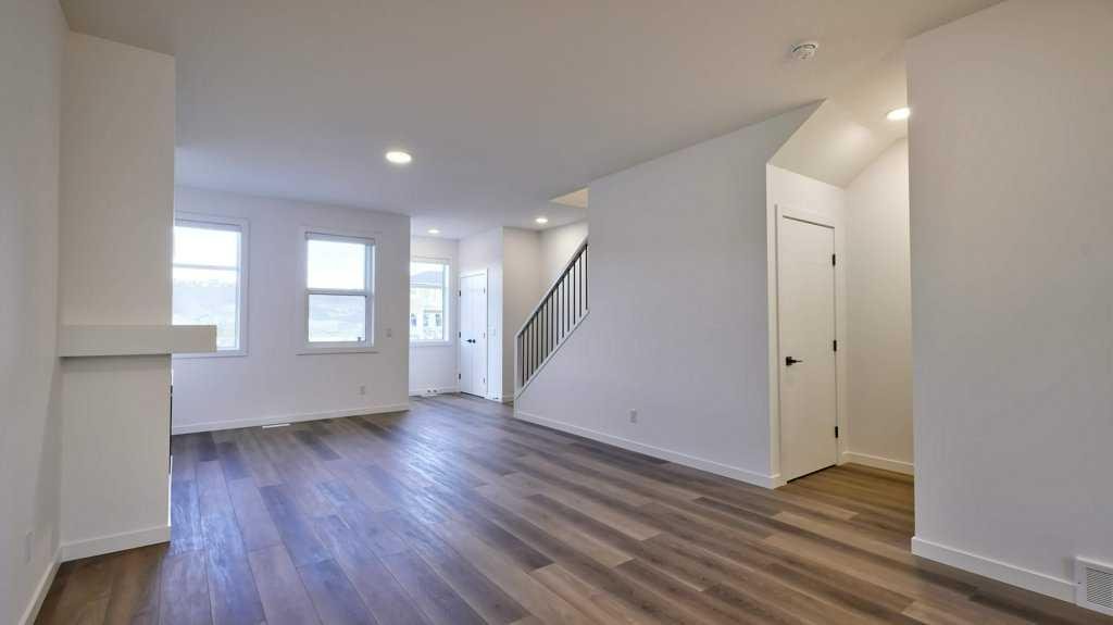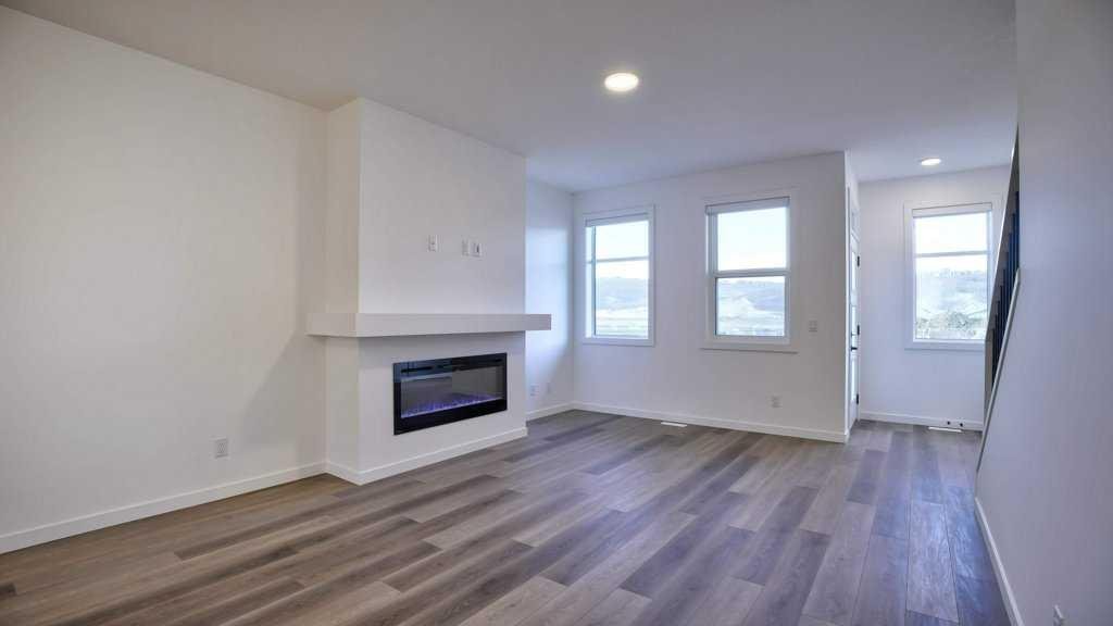 Welcome to WOLF WILLOW, where nature-focused living meets modern design in this brand new three bedroom townhome WITH NO CONDO FEES with anticipated completion in early 2026. Thoughtfully crafted with 9’ MAIN FLOOR CEILINGS, TRIPLE PANE WINDOWS, and an open-concept layout, this home blends comfort, efficiency, and style for everyday living. The great room provides a welcoming place to relax, anchored by an ELECTRIC FIREPLACE WITH MANTLE that brings warmth and definition to the space. A CENTRAL DINING ROOM sits between the living area and kitchen, creating a natural gathering point for meals, conversation, and everyday connection. The kitchen is designed for both function and flow, featuring SHAKER CABINET DOORS, SOFT CLOSE CABINETRY, POTS AND PANS DRAWERS, and STONE COUNTERTOPS that offer durability and a clean, modern finish. A spacious island provides additional prep space and casual seating, while triple pane windows introduce soft natural light across the main floor. Upstairs, the PRIMARY BEDROOM includes a WALK-IN CLOSET and an ENSUITE with DOUBLE SINKS and a TILED SHOWER for everyday comfort. Two additional bedrooms, a full bathroom, and an upper laundry area complete a well-planned layout suited to families, guests, or shared living. HRVs IN THE BATHROOMS support continual airflow and improved indoor comfort. Outdoor spaces are equally considered, with FRONT AND BACK LANDSCAPING completed by the builder and an 8′ x 11′ REAR DECK WITH ALUMINUM RAILING AND PRIVACY WALL providing a comfortable place for outdoor dining or relaxation. A REAR DETACHED DOUBLE GARAGE offers secure parking and storage throughout the year. Additional details include POPLAR RAILING WITH METAL SPINDLES ON THE MAIN FLOOR, CALIFORNIA KNOCKDOWN CEILINGS, WINDOW COVERINGS, and 9’ MAIN FLOOR CEILINGS that enhance openness and light. Set within walking distance of the BOW RIVER, community parks, playgrounds, and a network of scenic pathways, this brand new home offers a lifestyle connected to nature with the comfort of modern design and thoughtful upgrades throughout..