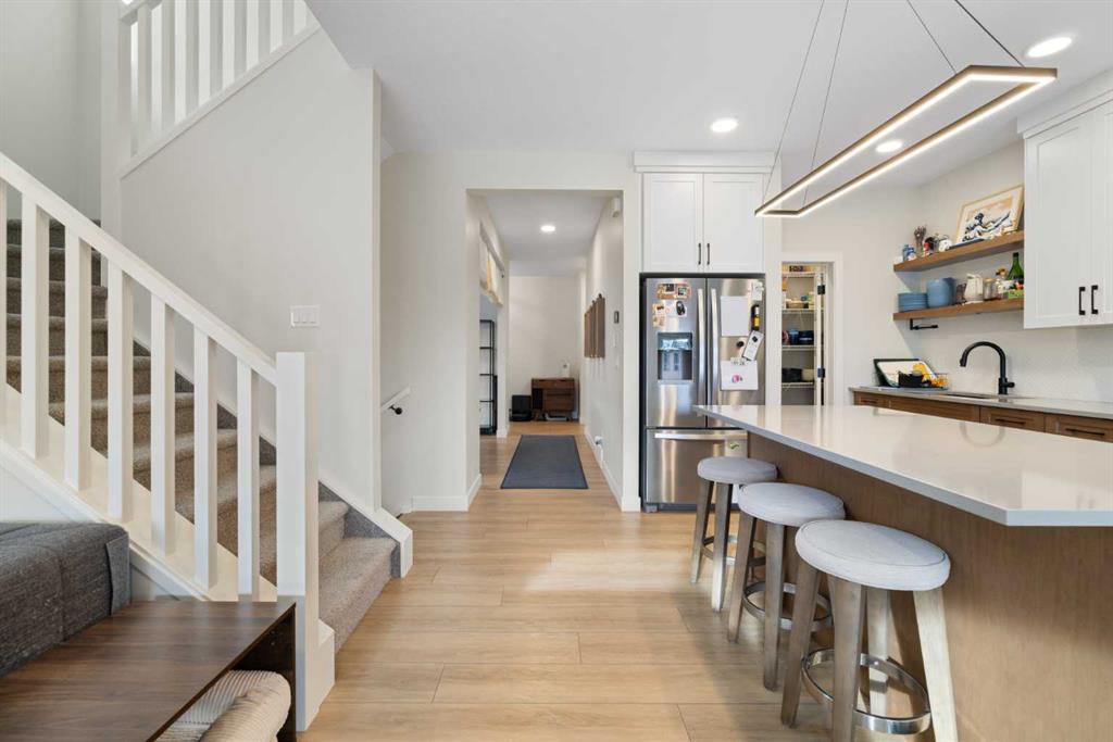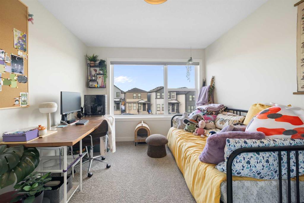 HIGHLIGHTS: 2024 Built, Fenced South-Facing Corner Lot, Unique Unobstructed Kitchen Island, Bright Living Space, Carpeted Bedrooms, Large Windows throughout the house, Finished Basement Stairwell, 5-Piece Primary Suite with Laundry Access, Double Attached Garage. WRITEUP: This 2024-built Cardel Home offers an exceptional opportunity to own a modern home on a premium, sun-drenched corner lot in the community of Silverado. Spanning 2,132 square feet of bright, open-concept living space. The interior is defined by massive southern-facing windows that invite natural light throughout the day. The gourmet kitchen is a focal point of the home, featuring an expansive, unobstructed island and a unique sink placement that balances aesthetics and functionality. Upstairs, the primary retreat features a five-piece spa ensuite and a clever walk-through closet that provides direct access to the second-floor laundry room. The home features a finished basement stairwell, making the main-floor living space more inviting, and leads down to a full, unfinished basement, providing a blank canvas for your future development and storage needs. Outside, the south-facing deck and fenced yard provide the perfect setting for outdoor living, all while being ideally located near the Somerset LRT, local amenities, and the extensive pathway systems that make Silverado a standout South Calgary destination.