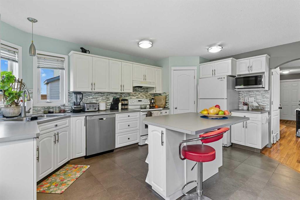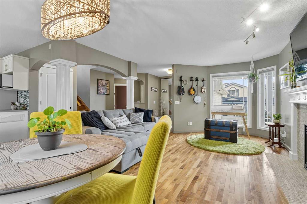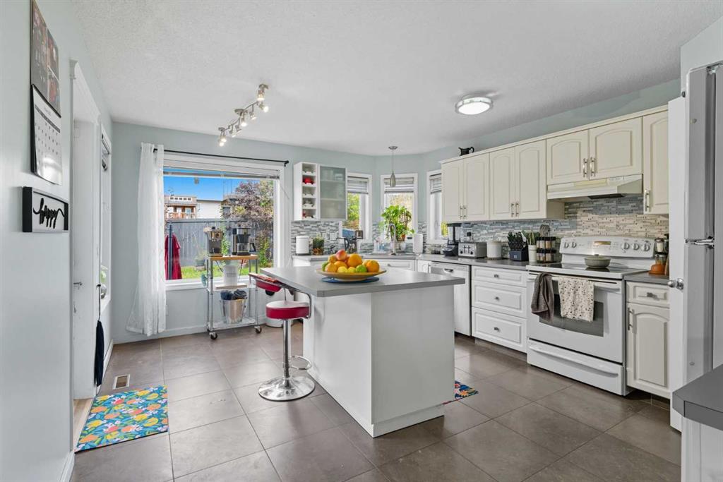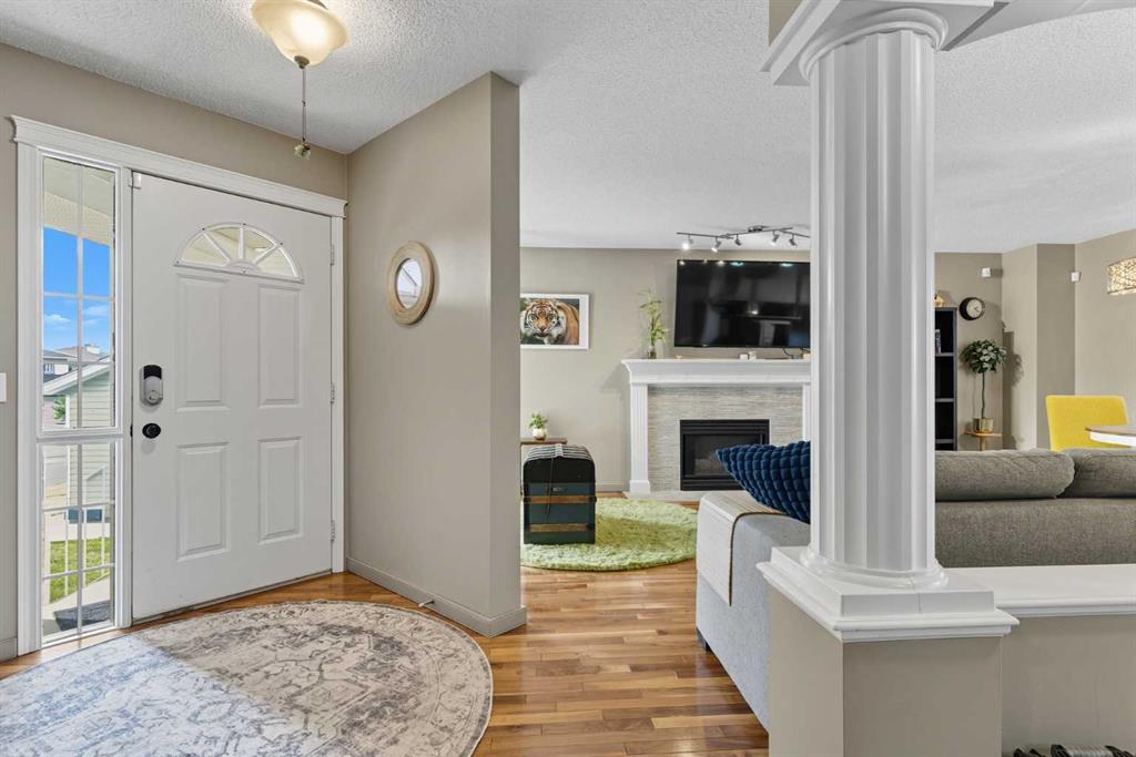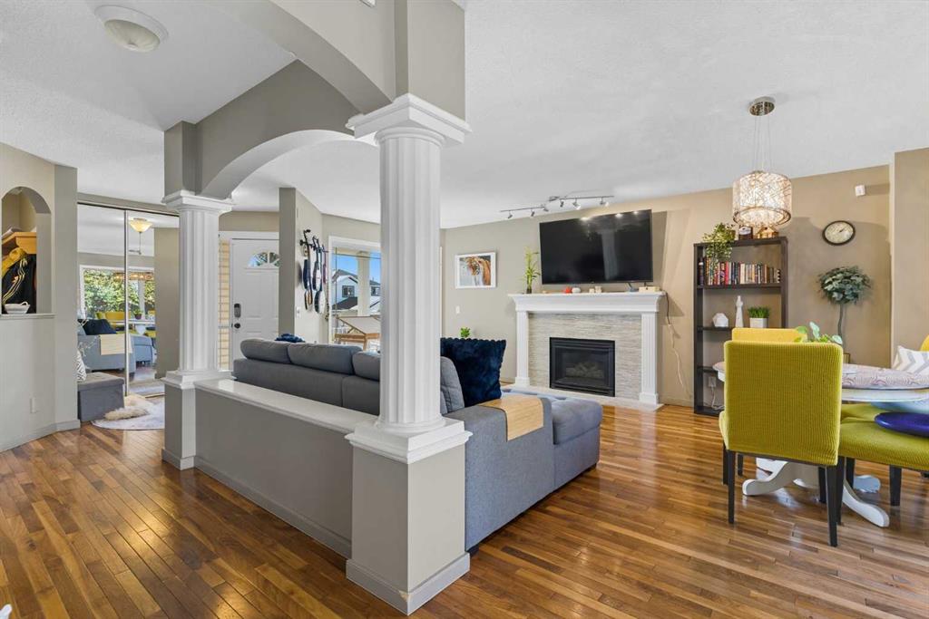 OPEN HOUSE SUNDAY NOVEMBER 2ND 3PM TO 5PM! This beautifully maintained home in the desirable community of Tuscany offers a bright and open main floor that seamlessly blends the living, dining, and kitchen areas into a covered outdoor pergola space, perfect for entertaining or everyday living. Rich hardwood floors flow through the main living areas and are complemented by high-end trim, crown moulding, and stately columns, while an elevated stone tile gas fireplace adds warmth and character. The elegant white kitchen features a built-in wine and coffee bar, breakfast bar, corner pantry, a full appliance package including a new dishwasher, and stunning tile finishes with mosaic backsplash and oversized modern floor tiles, all enhanced by large windows that flood the space with natural light. Upstairs, the spacious primary suite offers a huge walk-in closet and a sleek ensuite finished with dark tile, glass shower enclosure with a rainfall showerhead, double sinks, ample cabinetry, and a built-in medicine shelf. Two additional bedrooms are generously sized, making them ideal for children, guests, or home office setups. The main floor also includes convenient laundry with a new washer and dryer. The fully developed basement expands your living space with another full living room, bedroom, a full bathroom, and multiple storage areas. Outside, the backyard is a true highlight—featuring an expansive deck with a BBQ gas line, established flower beds, and a covered pergola perfectly suited for outdoor dining or creating your own private oasis. A double attached garage adds plenty of storage and parking. Located just a few steps away from Tuscarora Place playground, scenic walking trails, and a dog park, and with quick access to schools, shopping, and major commuter routes, this home offers the perfect blend of comfort, elegance, and convenience.