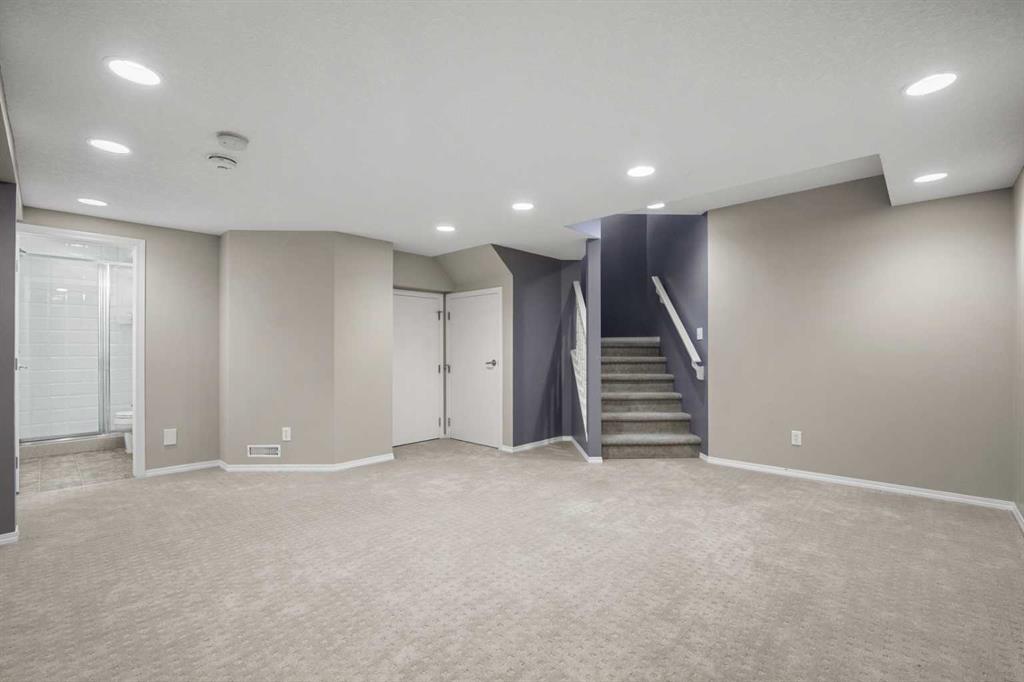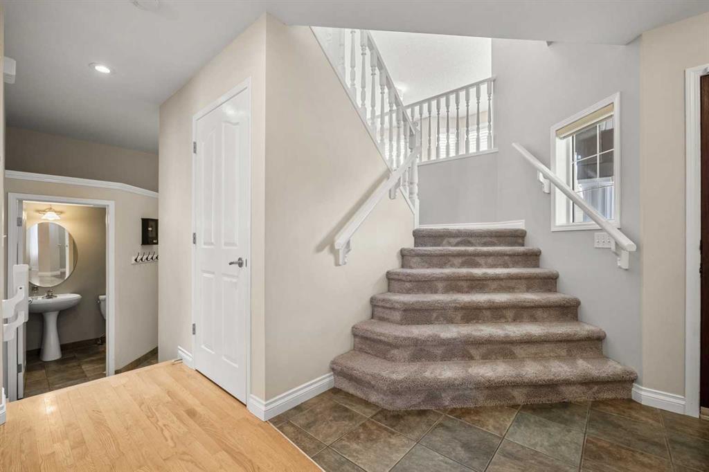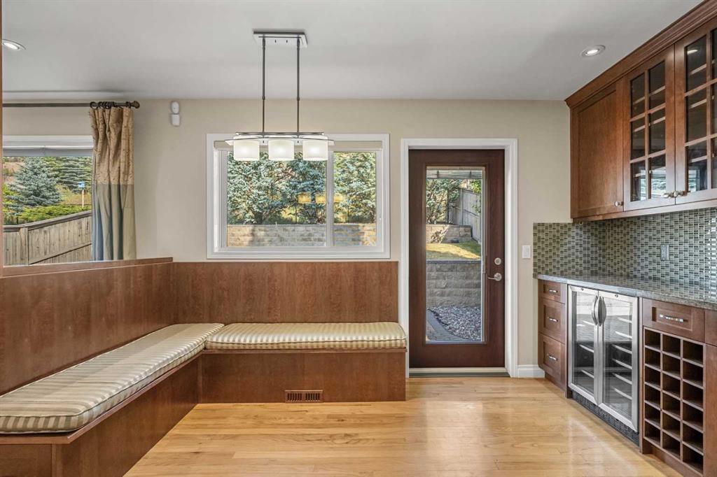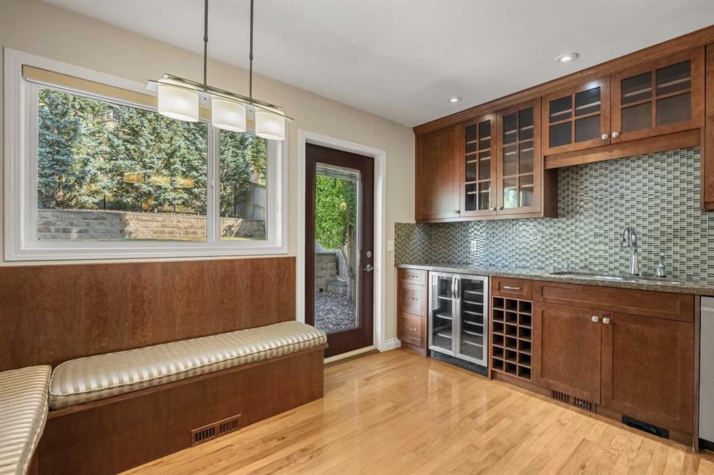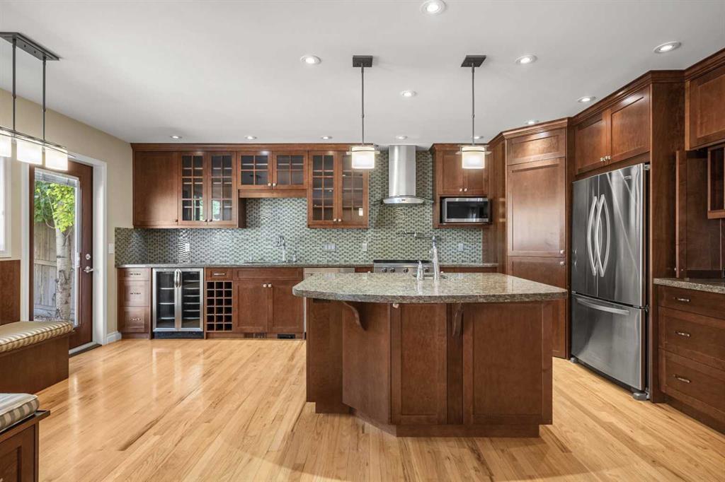 *** $30,000 PRICE IMPROVEMENT!!! *** Exuding timeless elegance and modern refinement, this meticulously renovated Jayman-built residence in the prestigious community of Springbank Hill offers over 2,600 sq.ft. of beautifully curated living space with 4 bedrooms and 3.5 baths. A custom front door opens to a welcoming tiled foyer, where hardwood floors set the tone for the home’s luxurious interiors. To one side, a formal dining room flows seamlessly into a spacious living area, anchored by a granite-surround gas fireplace with bespoke wood mantle. The showpiece of the main floor is the exquisitely updated chef’s kitchen, showcasing full-height custom cabinetry, a built-in wine fridge and rack, coffee bar, spice drawers, sheet pan storage, Delta touch faucet, electric range stove with pot filler, and a thoughtfully expanded corner pantry with maximized shelving. A large kitchen island with secondary vegetable sink provides additional storage and seating, while the built-in banquette (with pull out storage) breakfast nook adds charm and functionality. Tucked discreetly away is a built-in office space with folding doors, alongside hidden bins for compost, garbage, and recycling. From here, step outside to the professionally landscaped backyard featuring stonework, retaining walls, a gas line for BBQs, with direct access to a scenic walking path. A powder room, laundry room, and extra storage complete the main floor. Upstairs, a sun-drenched south-facing bonus room, with custom wooden shutters, offers the perfect retreat for family movie nights. Two secondary bedrooms with custom built-in closets and wooden shutters share a newly renovated bathroom with heated floors, expanded counter space, and abundant storage. The tranquil primary suite overlooks the manicured yard and boasts a walk-in California Closet, wooden shutters, and a spa-inspired ensuite with heated floors, an oversized glass shower, standalone tub, and custom vanity storage. The fully finished basement is brightened by expanded windows and features a spacious games area, a second family room with fireplace, a large guest bedroom with egress window, and a full bath. Even the under-stair storage is finished and lit, doubling as the perfect children’s hideaway or play space. Additional highlights include Hunter Douglas blinds, designer Hubbardton Forge lighting, built-in vacuum, Kinetico water softener, humidifier, and central A/C. Recent updates ensure peace of mind, including a newer hot water tank (2018), dishwasher (2021), washer/dryer (2019), and NO Poly-B plumbing. This is an exceptional opportunity to own a fully upgraded, move-in ready home in one of Calgary’s most coveted communities!