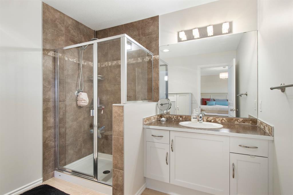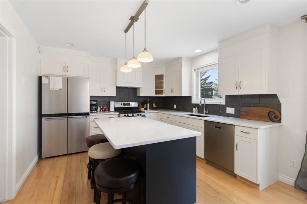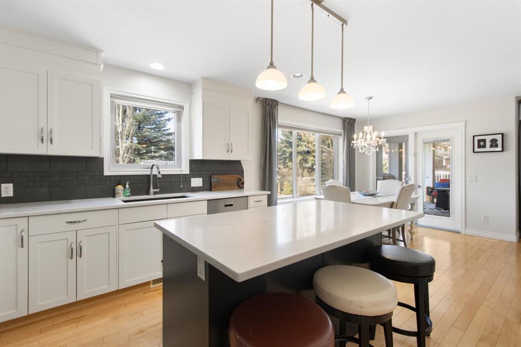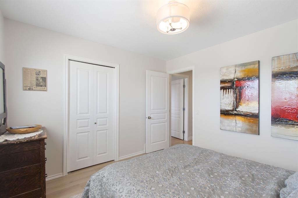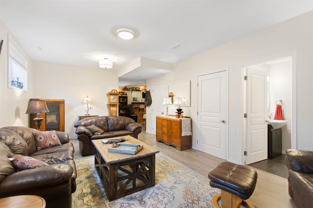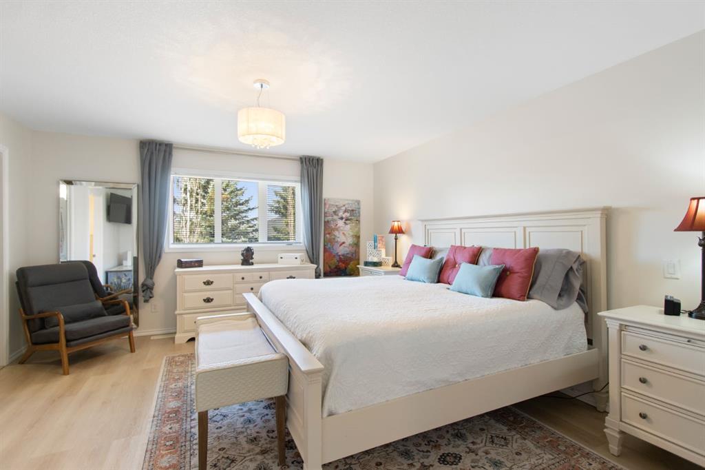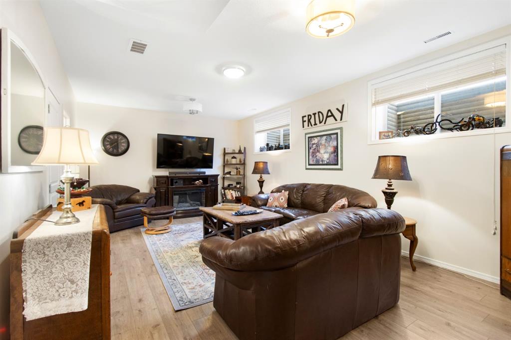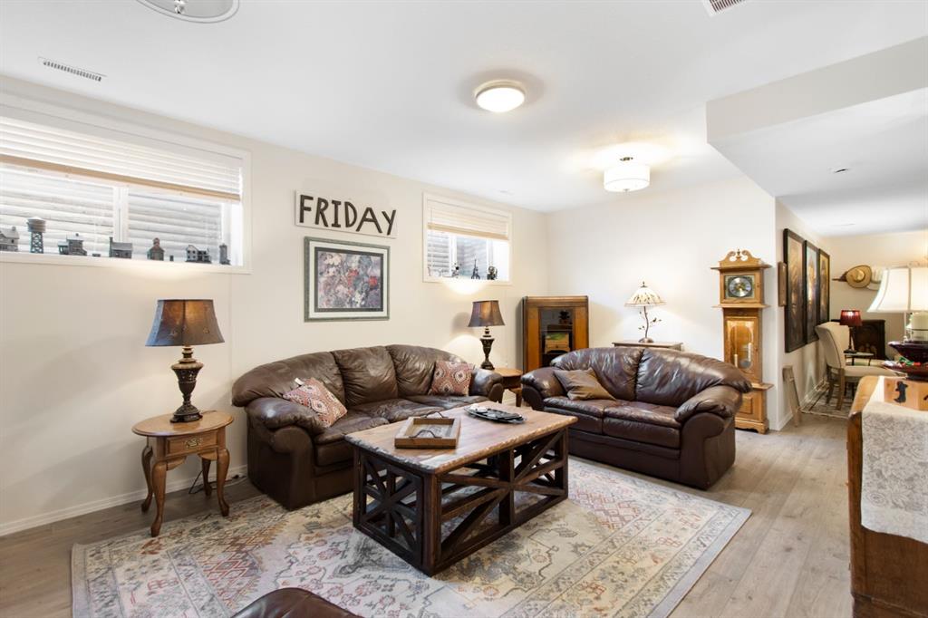 The upper level features a spacious primary suite with a large ensuite and walk-in closet, alongside two additional bedrooms, a full guest bathroom, and a versatile flex space. Downstairs, the finished basement boasts high ceilings and a premium entertaining area complete with a bar to host guests!. Meticulously maintained, the property includes recent upgrades such as fresh paint, newer flooring, a newer high-efficiency furnace, AC, heater in the garage, and a BBQ gas line. As a bonus, the oversized garage (22`6″ x 23`1”) comes with a side mount garage door opener for extra overhead clearance. Perfectly situated, this home is just a short walk from the golf course, grocery stores, and local amenities.