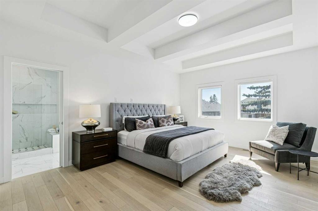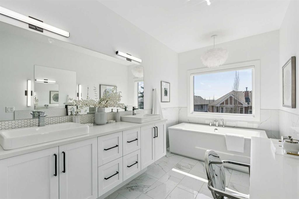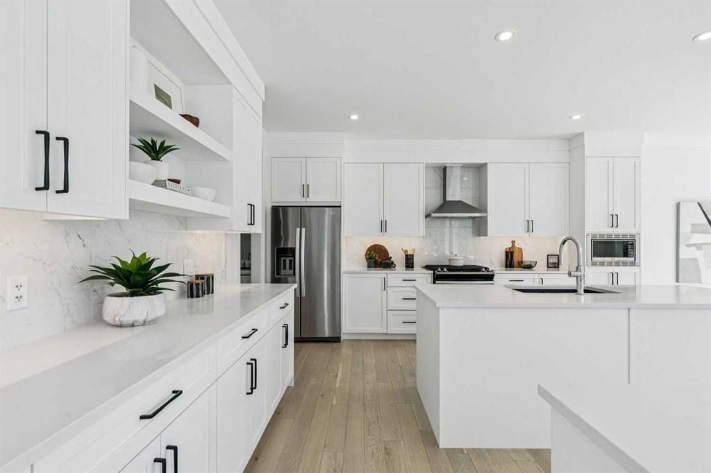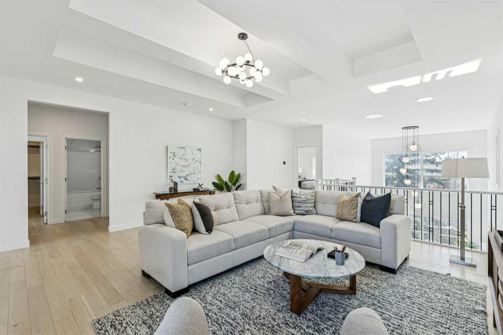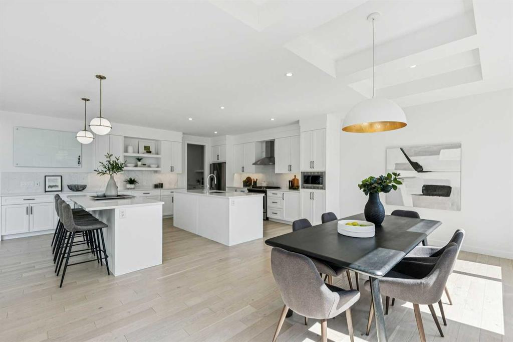 A RARE FIND! Why build new when you can save the GST & a year of construction? This beautifully maintained & thoughtfully upgraded family home, built by Truman Homes, sits on a premium south facing mature lot in the heart of the highly sought-after West District. The Pulsar II offers 3,240 sq. ft. above grade & a total of 4,380 sq. ft. of developed living space, including the fully finished walk-out lower level. Designed with an open concept layout, featuring soaring two storey vaulted tray ceilings, 8’ custom doors & 9’ ceilings on every level. A dramatic wall of windows across the back of the home, combined with the sunny south exposure, fills the main floor with natural light throughout the day. The elegant great room showcases a gas fireplace with marble tile surround, while the adjoining chef’s kitchen is truly exceptional. Highlights include oversized double islands, 4 stool breakfast bar, extensive double height cabinetry, abundant soft close pull-out drawers, premium quartz countertops & upgraded stainless steel appliances, including a 5-burner gas range. A fully equipped walk-through butler’s pantry provides additional storage for food & small appliances. The expansive 20’ x 10’ dining area is ideal for entertaining & family gatherings, with sliding doors leading to an oversized deck overlooking the fully landscaped yard & custom children’s play area. A main floor office with French glass doors & private two-piece bath completes this level. Upstairs, you’ll find a central bonus room, two spacious secondary bedrooms – each with its own walk in closets & ensuite bathrooms, & a luxurious primary suite retreat. The primary bedroom features dual walk-in closets & spa-inspired five-piece ensuite with marble flooring & wall accents, freestanding soaker tub, raised dual vanities & an enclosed 5’ shower. The professionally finished walk-out lower level, completed by the builder, offers approximately 1,150 sq. ft. of additional living space with a separate entrance. It includes a large recreation area, 4th bedroom, 4-piece bathroom, a 2nd full laundry & ample storage. Large windows provide plenty of natural light & direct access to the patio. A wonderful space for teenagers, extended family or visitors. Over $190,000 in upgrades enhance the home, including separate heating zones for each level, 2 high-efficiency furnaces, central air conditioning, premium hardwood flooring, flat ceilings & custom California Closets. The triple garage features high ceilings, offering the potential for a car lift. Located in one of Calgary’s premier master-planned communities, this home offers exceptional walkability—just steps to shops, restaurants, schools, parks & pathways. Enjoy a short commute to downtown & nearby hospitals, with easy access to Stoney Trail & just 45 minutes to Kananaskis. Lovingly built & meticulously maintained, this home presents a rare opportunity to own a nearly new custom estate property in West Calgary.