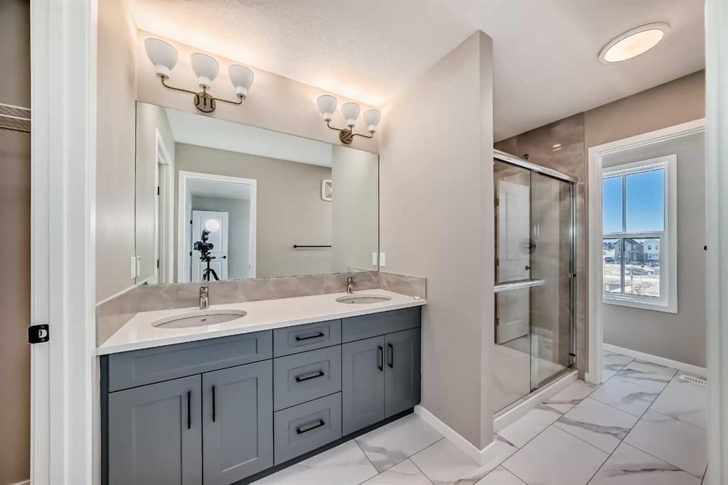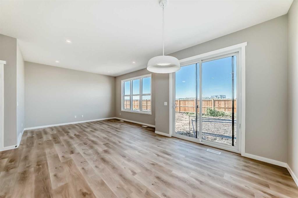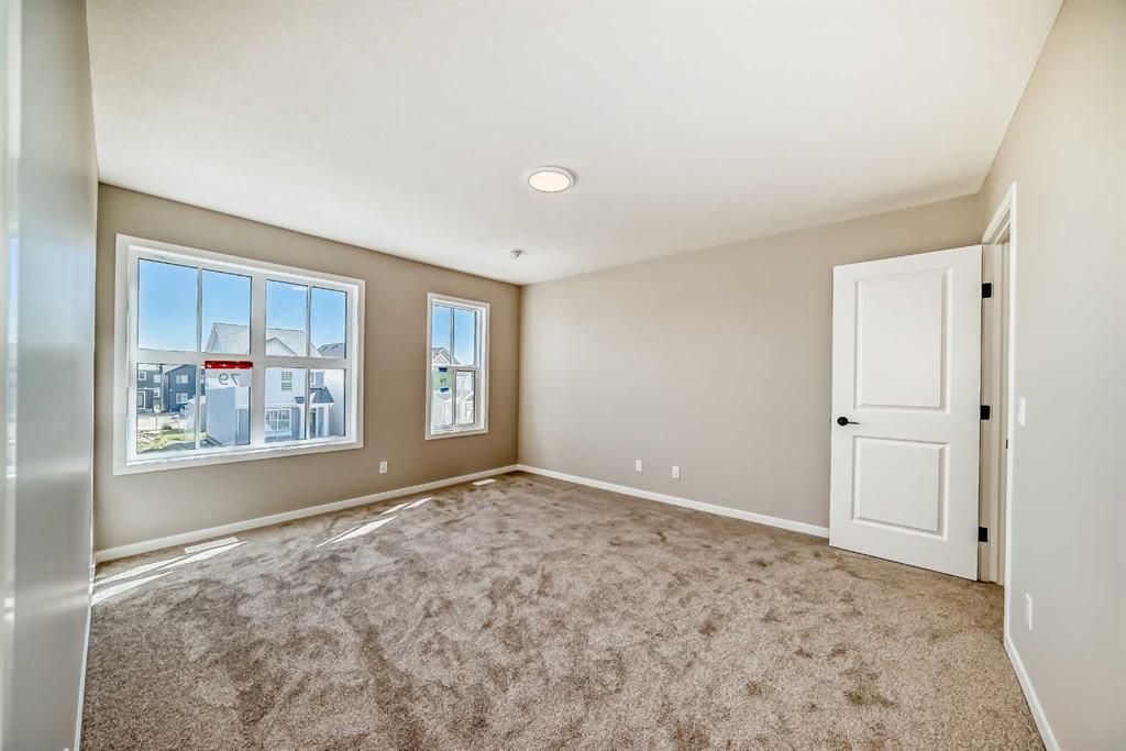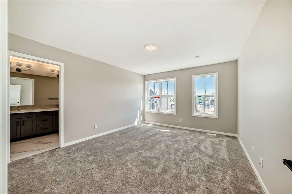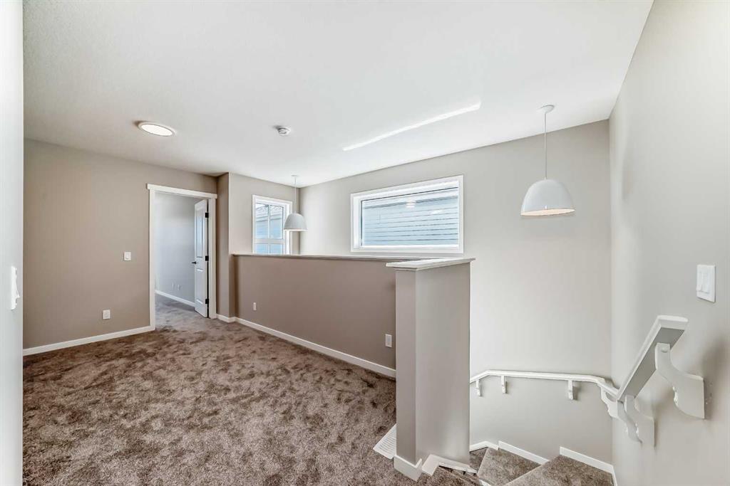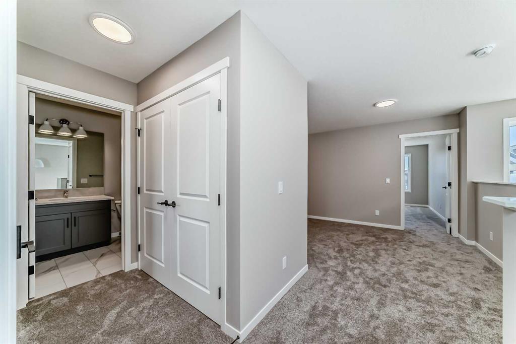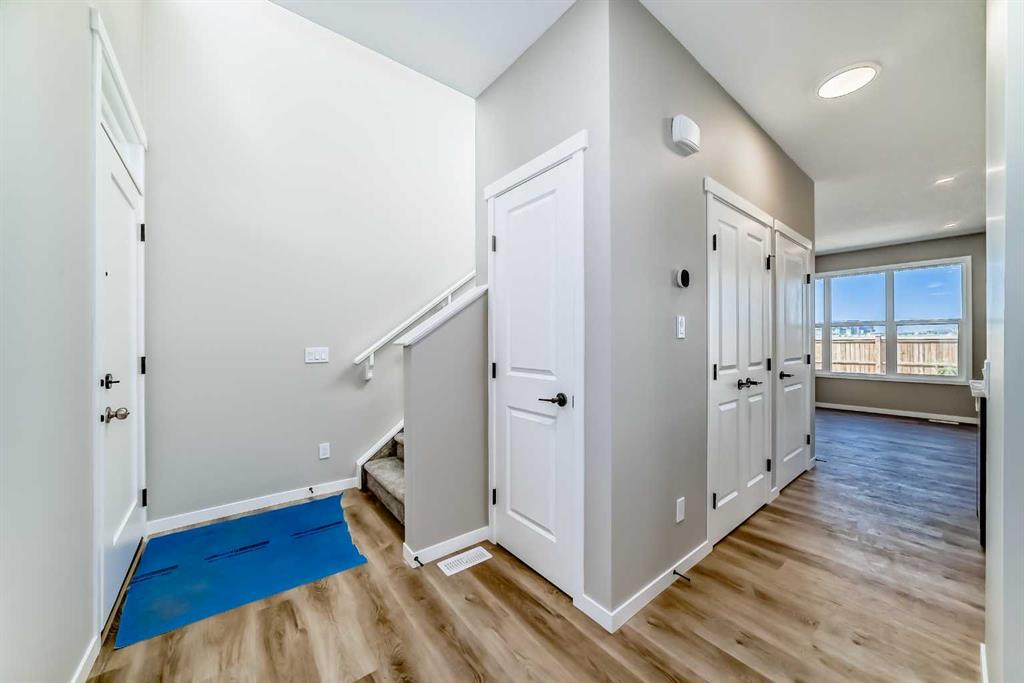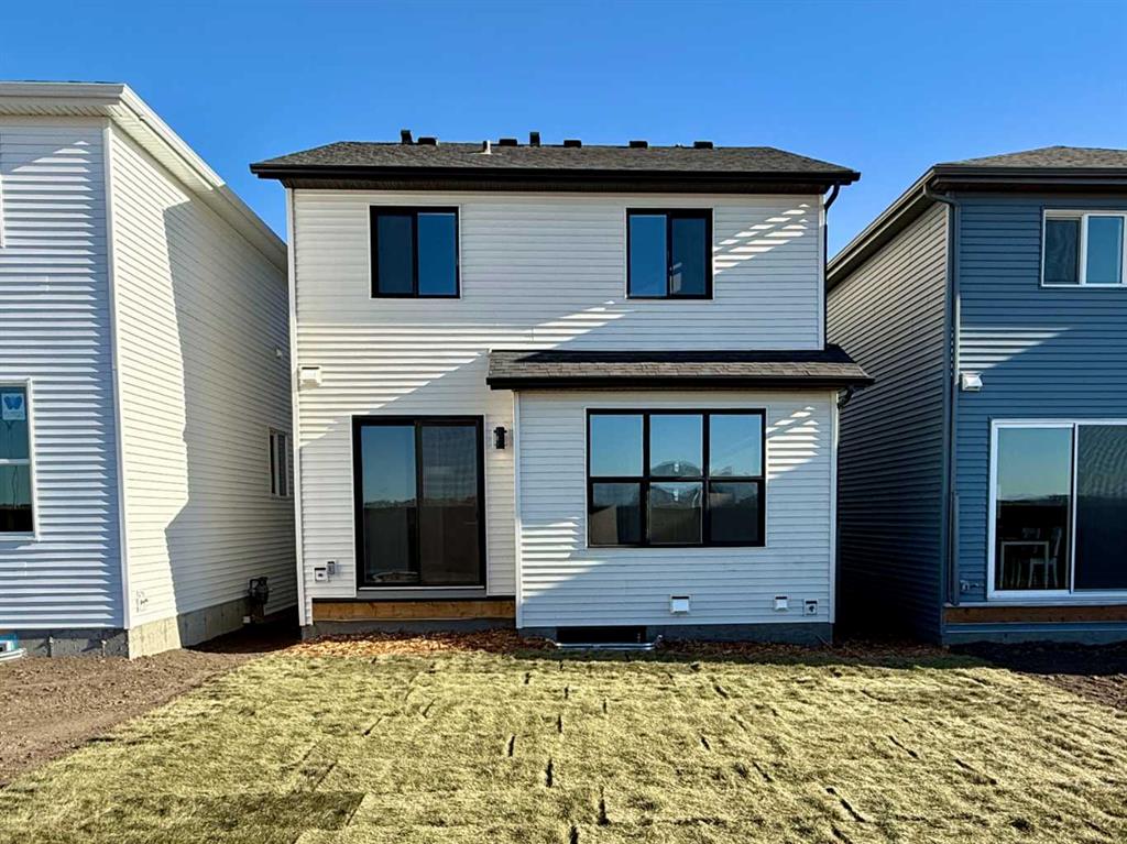 Introducing the “Carisa” by Hopewell Residential—an exceptionally designed home where smart upgrades, modern finishes, and functional living spaces come together beautifully. Located on a quiet street in the growing southeast community of Rangeview, this home sits on an oversized lot with a west-facing backyard that’s perfect for soaking in afternoon sun, relaxing evenings, or entertaining outdoors. An exterior gas line makes it ready for your future BBQ setup. Inside, the main floor greets you with a spacious and light-filled layout, featuring luxury vinyl plank flooring and knockdown ceilings that carry a clean, stylish look throughout. The open-concept design connects the upgraded kitchen, large Lifestyle/Dining Room, and cozy living area seamlessly—ideal for everyday life and hosting. The kitchen is a showstopper with quartz countertops, upgraded cabinetry including an added bank of drawers, a chimney hood fan, built-in microwave, pot lighting, and stainless steel appliances. A smartly positioned pocket office near the front entrance offers a quiet, tucked-away space perfect for remote work or homework. Upstairs, a versatile entertainment room is enhanced by an added stairwell window, bringing in even more natural light. The centrally located laundry room adds everyday convenience. The spacious primary suite features a large walk-in closet and a 4-piece ensuite with fully tiled shower walls. Two additional bedrooms round out the upper level, offering great flexibility for families or guests. This home also includes a 9-foot foundation and a separate side entrance—opening the door to future development or potential suite possibilities (A secondary suite would be subject to approval and permitting by the city/municipality). EV charger and solar panel rough-ins are also included, adding future-ready value. **This home also comes complete with full front and backyard landscaping, including sod and mulch on the side yards. If you’re looking for a home that balances thoughtful design, upgraded features, and long-term versatility—this one checks every box. Located in Calgary’s desirable southeast, Rangeview is more than just a neighbourhood—it’s a community built around connection, sustainability, and a shared love of food and nature. Inspired by Alberta’s rich agricultural heritage, Rangeview is Calgary’s first garden-to-table community. Residents are encouraged to engage in food growing and sharing through community gardens, orchards, and future culinary events. The community is designed with people in mind: walkable streets, regional pathways, green spaces, and a central gathering area called Market Square, anchored by Harvest Hall—a future hub for farmers’ markets, local food festivals, and community programs. You’re also close to Seton and Mahogany amenities, including the world’s largest YMCA, South Health Campus hospital, top-rated schools, and a wide range of shops and restaurants—offering all the urban conveniences within minutes of your doorstep.