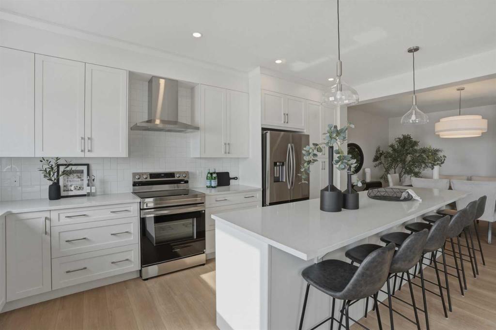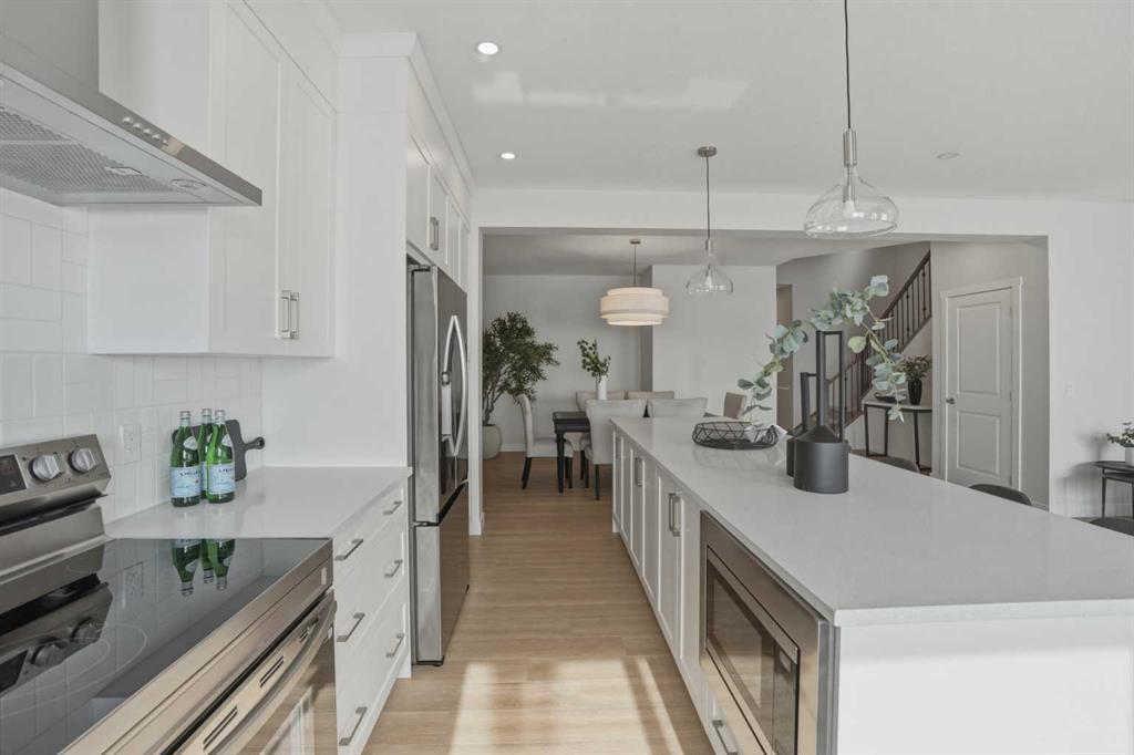 Welcome to the Ezra model by Genesis Builders Group, a move-in ready masterpiece offering 2,533 sq ft of sophisticated living in the vibrant Heartwood community. Designed with architectural intention and upscale finishes throughout, this residence seamlessly blends modern elegance with everyday comfort. The sun-filled main level is framed by expansive windows that bathe the home in natural light, enhancing the airy open-concept layout. At the heart of the home, a chef-inspired kitchen makes a striking statement with quartz countertops, full-height cabinetry, designer pendant and recessed lighting, and an impressive statement island that offers generous seating — perfect for elevated entertaining and effortless daily living. The great room is anchored by a sleek fireplace, creating a warm yet refined focal point. A stylish 2-piece powder room and versatile main-floor flex space complete this thoughtfully curated level. Upstairs, tray ceilings add architectural character to the spacious bonus room, creating an inviting retreat for relaxing evenings. Four well-appointed bedrooms, two elegant full bathrooms, and a conveniently located upper-level laundry room provide exceptional functionality. The primary suite serves as a private sanctuary, featuring a spa-inspired ensuite and walk-in closet designed for both comfort and indulgence. This home is equally impressive in its future potential, offering a separate side entry and basement suite rough-ins (subject to approvals), providing flexibility for multi-generational living or investment opportunities. A BBQ gas line enhances outdoor entertaining, while the double attached garage completes the home’s elevated appeal. Refined, functional, and beautifully finished, this Ezra model delivers luxury living with enduring value — ready to welcome you home. Genesis Builders Group follows the First-Time Home Buyer GST/HST Rebate to eliminate the 5% GST on qualifying new homes (up to $1 million) for qualifying first time home buyers. Hurry and book a showing at this gorgeous brand new Genesis home today!
