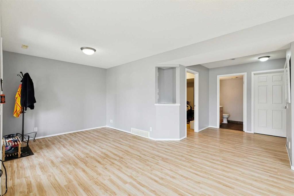 OPEN HOUSE April 18 from 1 – 3 pm. This well-located home backs onto a playground and greenspace with walking paths that connect to the river valley. You can get right downtown on the pathway system without ever crossing a major road. The southeast-facing backyard enjoys great natural light and features a large deck overlooking the green space. Inside the home has been lovingly updated with refinished hardwood floors, painted cabinets, newer stainless appliances, and new quartz counters. The comfortable main floor layout features an open concept living, dining and, kitchen space with tons of windows. The living room is centered around a gas fireplace, while the nook is surrounded by windows. There is a flex space at the front of the home that’s currently used as a formal dining area, and the laundry room is also on this level. Upstairs offers new vinyl plank floors, three bedrooms, plus a spacious bonus room with high ceilings. The finished walkout basement has a 4th bedroom and another full bathroom. The house also has A/C, a water softener, and a water filtration system. The fully fenced yard, nearby Sheep River pathway system, and convenient access to schools and shopping make this a solid choice in a family-friendly setting.