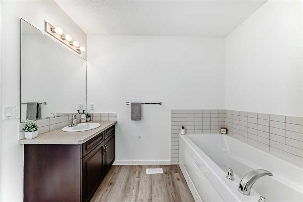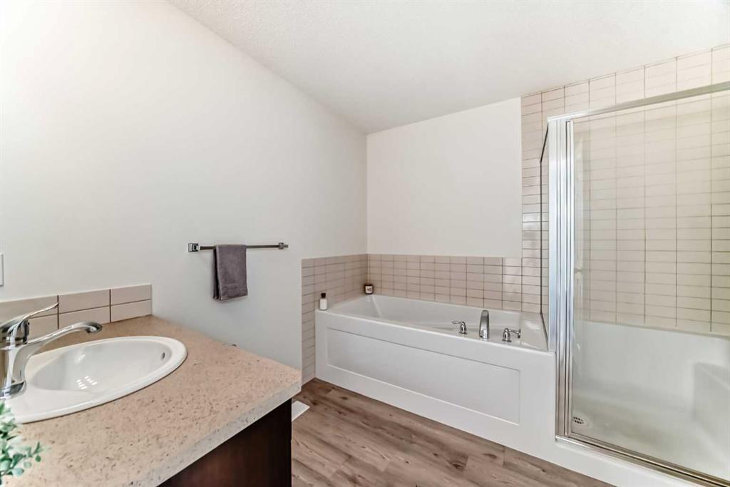 Click brochure link for more details** WELL-ESTABLISHED RIVERSONG COMMUNITY I SPACIOUS SEMI-DETACHED I NICE LOT I NO CONDO FEES I Welcome to this 2-storey home in the family friendly community of Riversong, offering over 1,557 sqft above grade! Step inside and experience the open-concept layout that combines comfort and style. The living room, dining area, and modern kitchen are ideal for everyday living and entertaining guests. The kitchen includes stainless steel appliances, a large island, and a Convenient and Spacious Walk-In Pantry. The fully fenced, spacious backyard, is an ideal space for fun-filled BBQs, and where kids and pets can play freely. Enjoy long-lasting, newer luxury vinyl plank flooring and carpet upstairs. The primary bedroom, with a Spacious Walk-In Closet, provides you space for rest. The private 4-Piece ensuite bathroom boasts a large soaking tub and a separate shower, for relaxation. Two additional bedrooms and a full bath provide you the space to include a workspace, kids bedrooms or a guestroom. The undeveloped basement provides the opportunity to customize and design your entire living space. You’ll love the convenience and extra space of your Single Attached Garage, all year round. This home offers tremendous access to a host of features including stunning views of the Bow River, Mountain Views, Schools, Playgrounds, SLS recreation centre, Co-op Food and more. This move-in-ready home offers the right value and easy access to everything the town has to offer!