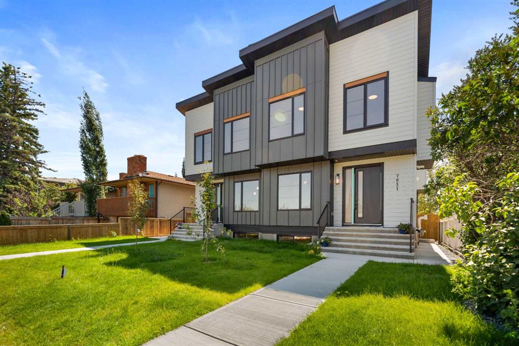 !!!Welcome to 7929 47 Avenue NW, Calgary—a beautifully crafted 2-storey infill in a vibrant community of BOWNESS. You will find premium finishes throughout the home which are tastefully selected from wide plank flooring, lighting, tiles and ceiling designs. Step inside, you are greeted by bright and open-concept main floor with large windows, and modern elegance. Wide LVP flooring flows throughout the spacious living and dining areas adds warmth and charm. The chef-inspired gourmet kitchen features high-end appliances, custom soft-close cabinetry, and tile backsplash. A premium stainless steel appliance package includes a gas cooktop, built-in wall oven and microwave, refrigerator, dishwasher. The spacious living room features built-in bookshelves with a TV niche and a gas fireplace. There is a 2-piece powder room and a mudroom with bench and closet. Upstairs you are greeted by a bonus/family room. The primary bedroom is stylishly designed with attached walk-in closet with custom millwork. The 5 pc ensuite offers a glass-enclosed shower , a soaker tub, and dual vanities. Two additional spacious bedrooms with custom closets, a full 4-piece bathroom, and a large laundry room with a sink complete the upper level. The fully finished basement with seperate entrance has 2 bedrooms. The L- SHAPE kitchen and an adjacent living room makes it ideal for renters. There is also a 4 pc bathroom and dedicated laundry for convenience. Outside, the private, zero- maintenance and fully landscaped south-facing backyard is centered around a stunning concrete patio for your quality family times. All of this in a fantastic location close to Bowness Park and the Bow River Pathways, with shopping, parks, schools, transit, and more nearby. Don’t miss on this beautiful home. Call today to book a private showing.