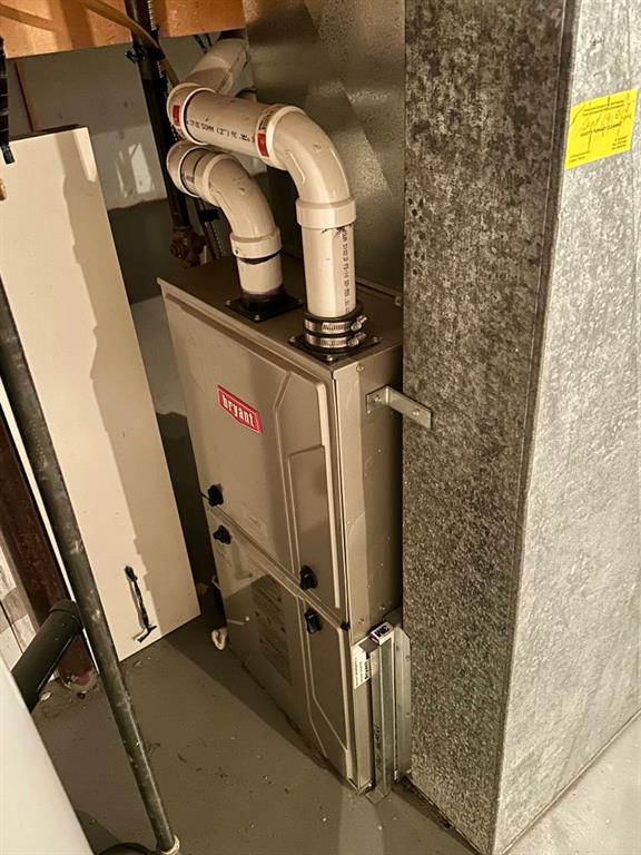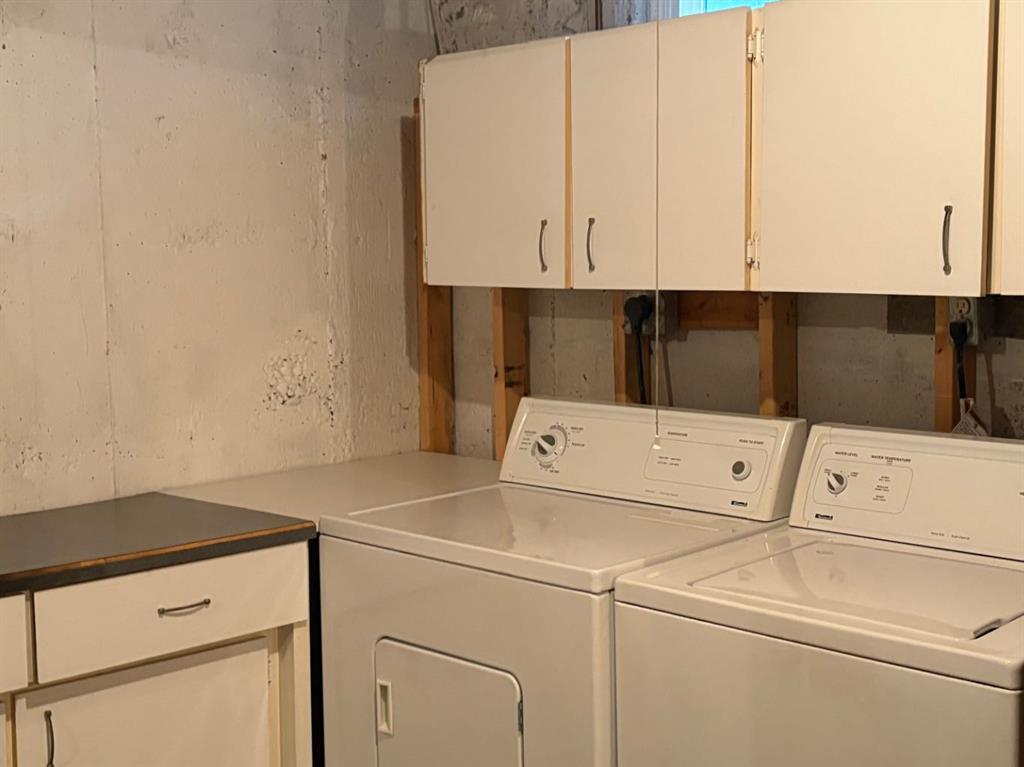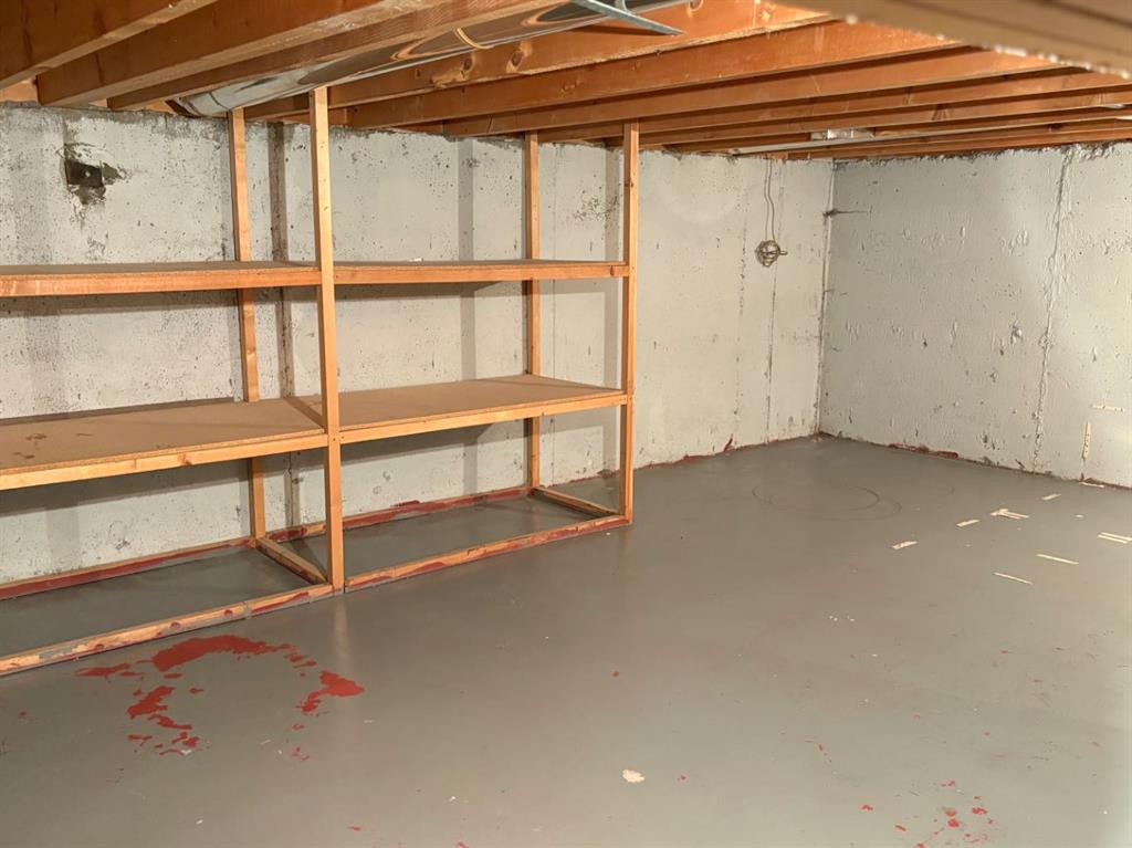 The primary bedroom provides a peaceful retreat with views of the lush surroundings through its large window. Additional features include a full basement equipped with a high-efficiency furnace, offering versatile space for storage or potential customization.