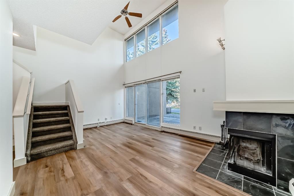 The main floor showcases end-to-end gorgeous luxury vinyl plank flooring, beautifully textured, exceptionally durable, and effortless to maintain. It sets the tone for an open-concept layout with soaring 18-ft ceilings and abundant natural light streaming through two levels of windows. Enjoy a cozy wood-burning fireplace, a private main-floor patio, and an enclosed rooftop balcony with stunning Calgary skyline views, providing a perfect extension of your living space for year-round enjoyment.