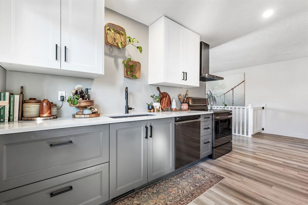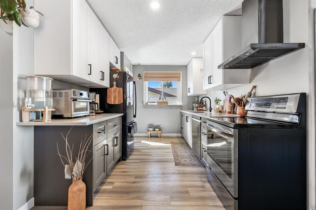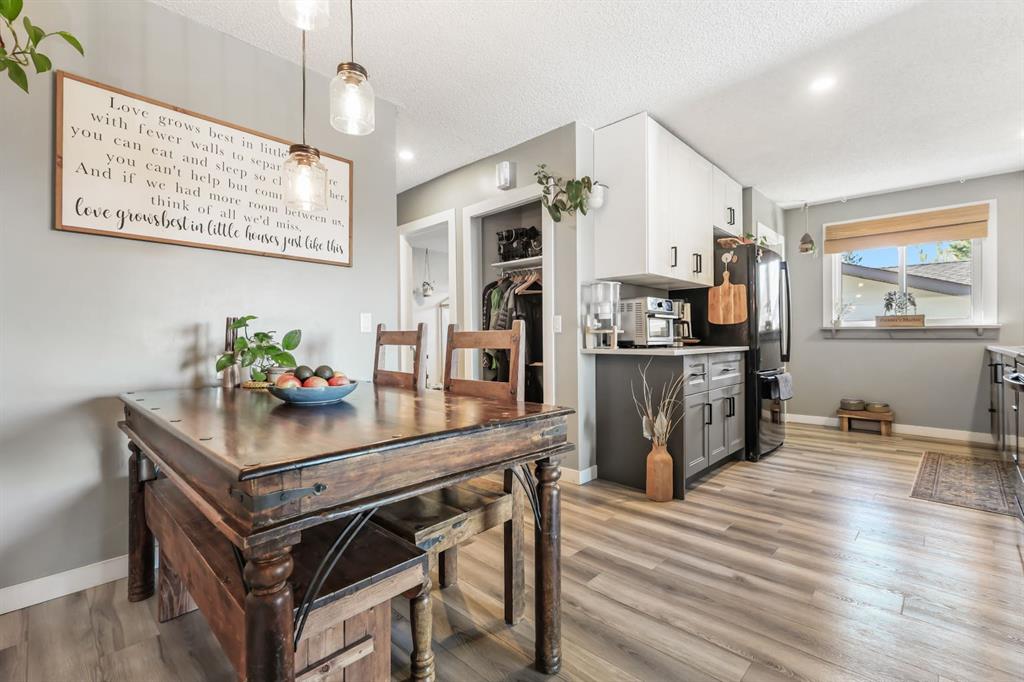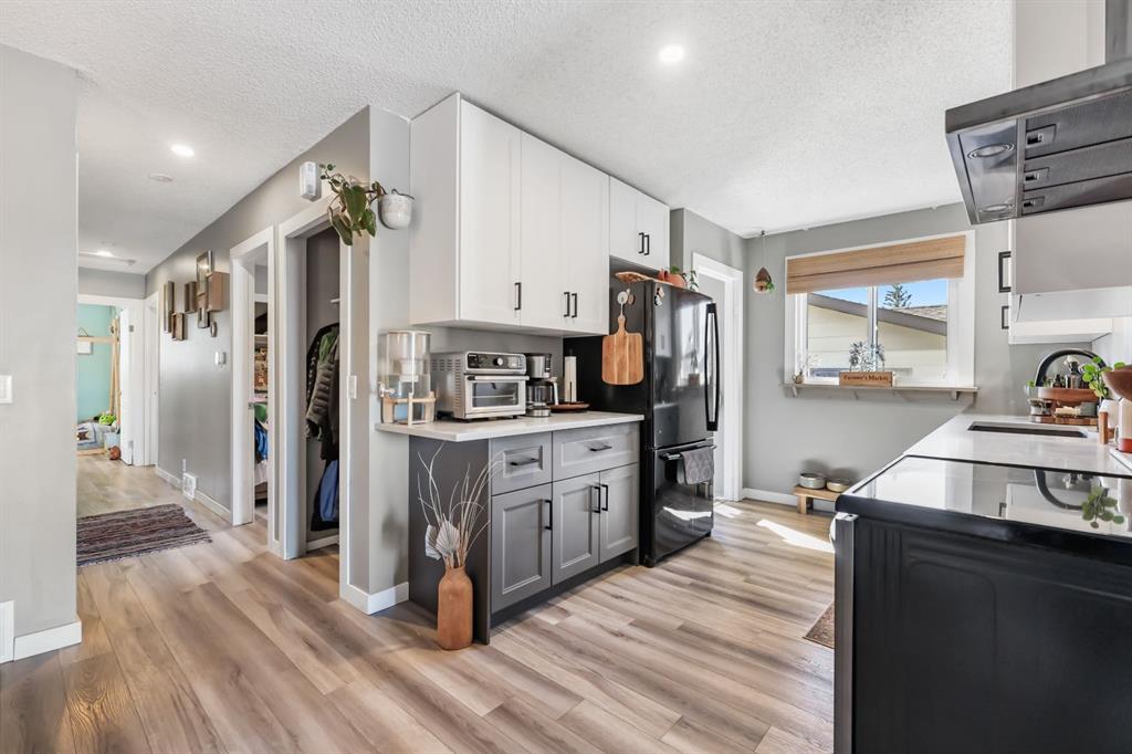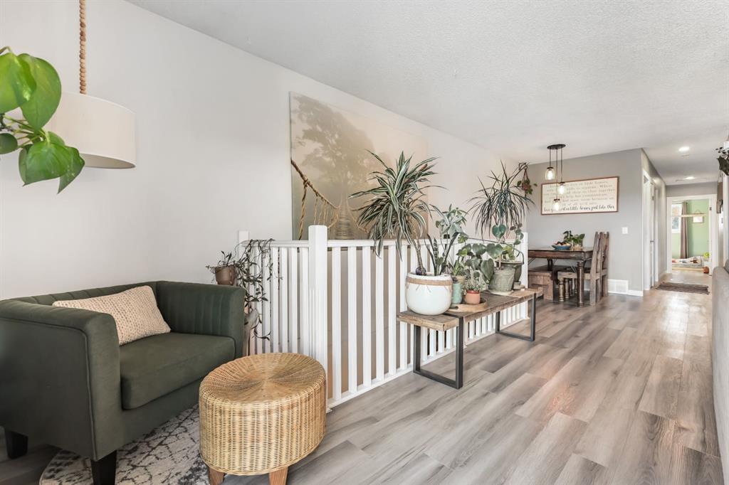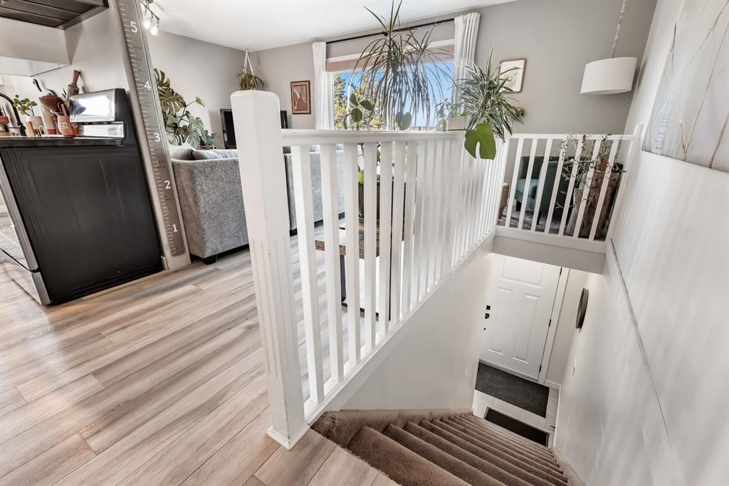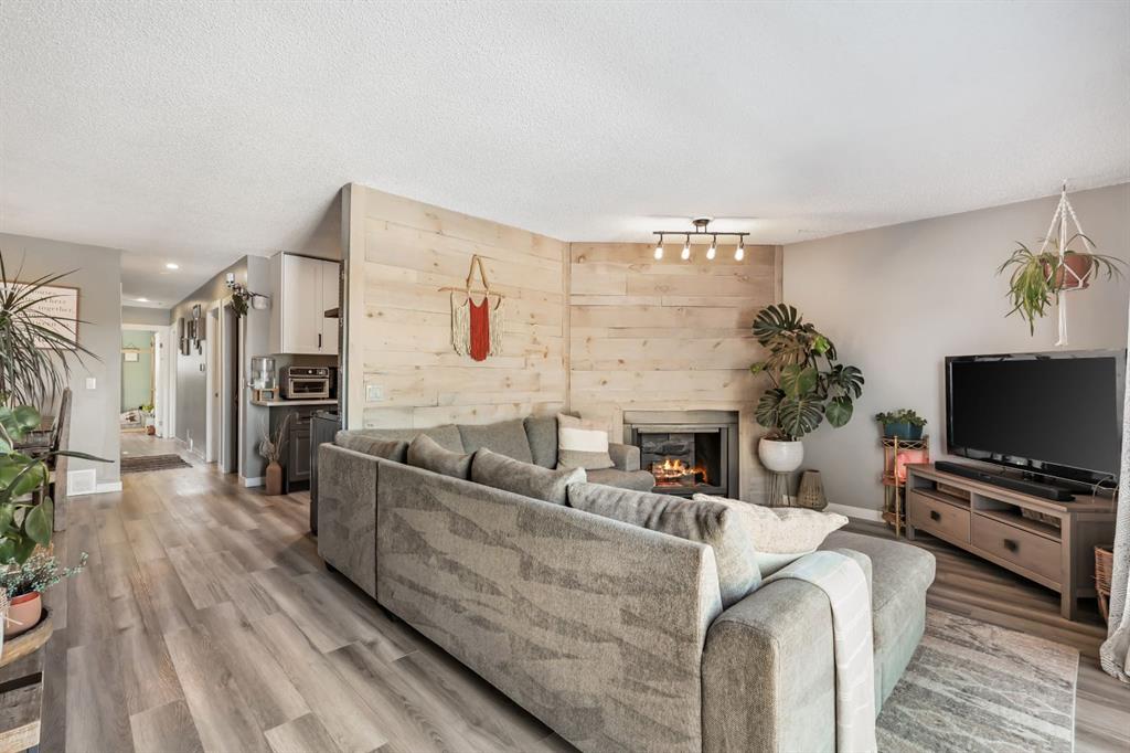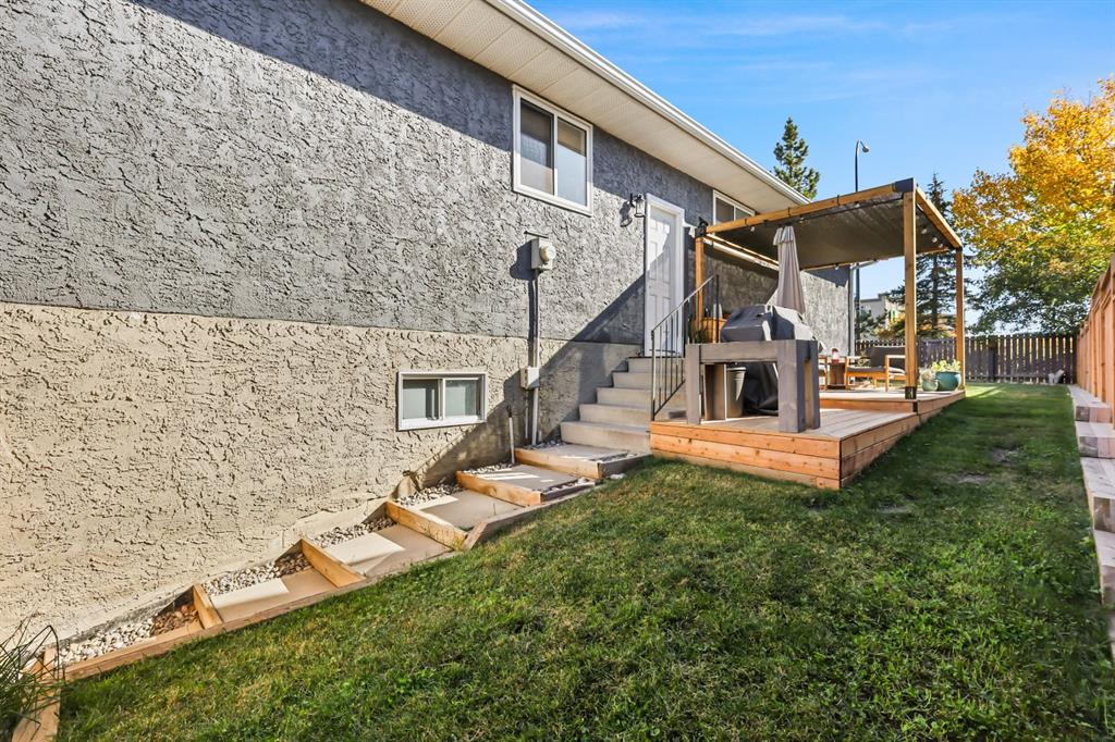 Welcome home to a cheerful 3-bed, 2-bath raised bungalow offering 1,771+ sq.ft. of developed space and a wonderful Glenbow address. Thoughtfully updated and move-in ready, this home blends comfort with everyday practicality. The main floor welcomes you with a bright front living room—rustic wood feature wall, cozy fireplace, and sliding glass doors that frame those Rocky Mountain views. The renovated kitchen serves as the heart of the home with generous prep space, great storage, and an oversized pantry. Down the hall: a roomy primary bedroom, two additional bedrooms, and an updated 4-pc bath. A handy side door leads to the new side deck—perfect for morning coffee or easy BBQ nights. Downstairs, the spacious family/flex area sets up beautifully for movie nights, a play zone, home gym, or office. You’ll also find a 3-pc bath, laundry, and interior access to the oversized single underdrive garage. Outside, the fully fenced backyard offers plenty of room for kids, pets, and weekend lounging, plus extra parking on the driveway. Recent improvements: renovated kitchen; newer flooring & paint; new roof & windows; refreshed upper bath; exterior paint & front siding; new front door, new side fence, and new side deck. Warm, inviting, and in a walkable location—great value in Glenbow. Come see the possibilities!