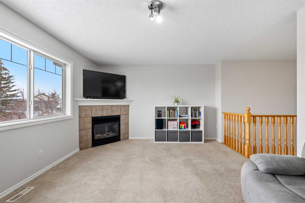 The home offers a comfortable and functional layout with 4 bedrooms (3-up, 1-down) and 3 full bathrooms, including a 4-pc ensuite in the primary bedroom, and a convenient 2-piece bathroom on the main floor. The upper-level family room with a cozy fireplace provides a great secondary living space and could be ideal for relaxing evenings, a kid’s play area, or even a home office setup.