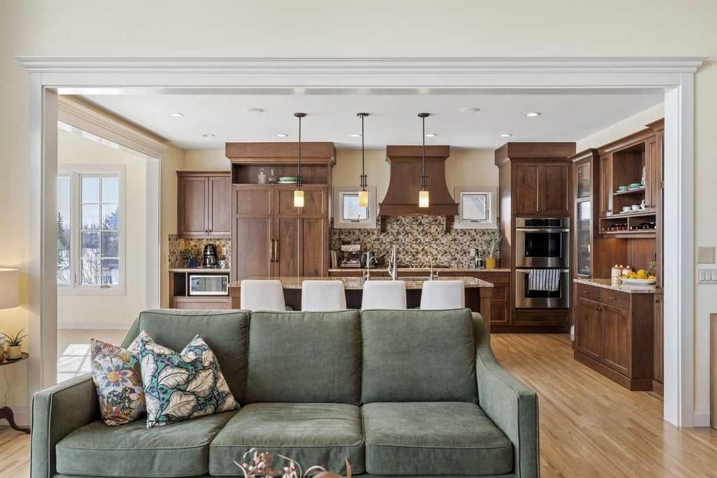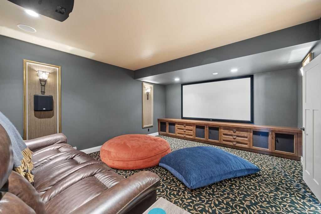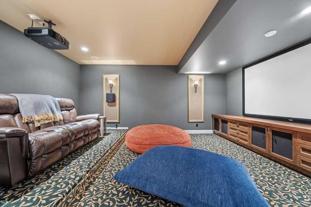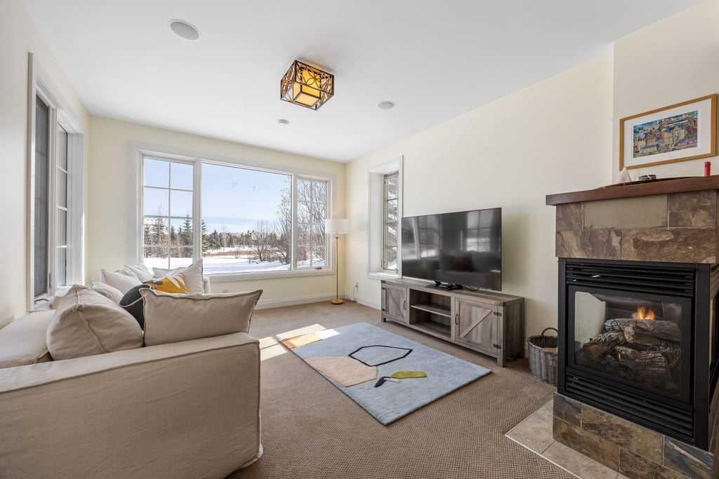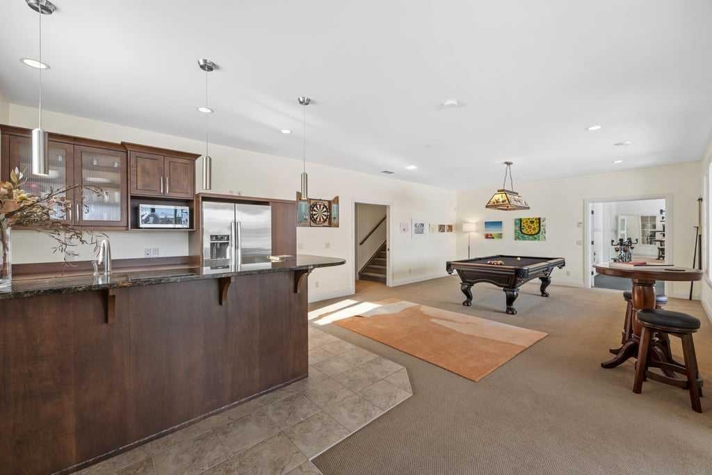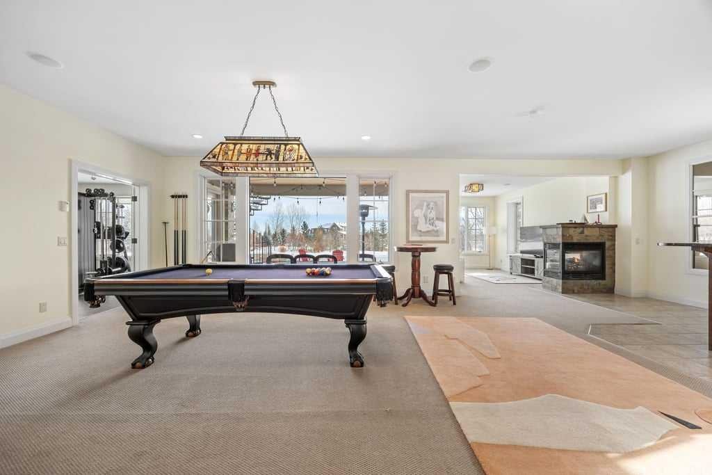 The walkout lower level is bright and expansive, designed for both relaxation and entertainment. Heated floors run throughout, with spaces that include a wet bar, wine cellar, theatre area, gym, and multiple recreation areas, along with two additional bedrooms and a full bathroom for guests.