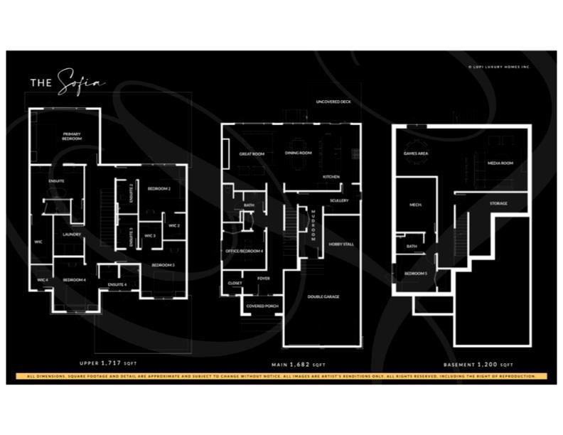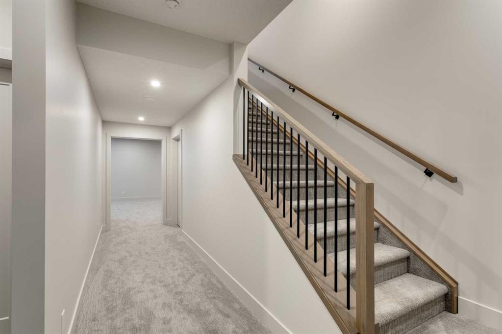 Welcome Home to Lupi Luxury Homes 8 Rockcliff Hill NW, this distinguished residence epitomizes the pinnacle of luxurious living. 4 oversized bedrooms each with their own ensuites and walk-in closets. This lovely home seamlessly integrates with its surroundings through a thoughtfully designed layout, boasting 6 bedrooms and 6 bathrooms. A standout feature is the 3-car garage with ceiling heights to accommodate a car lift. As you step inside, a wealth of high-end amenities unfolds, illuminated by natural light streaming through triple-pane Loe2 windows. The gourmet kitchen, with rich white cabinetry to the 10’ ceiling and darker oversized island, showcases a built-in stainless steel, double fridge / freezer and upgraded gas range, dishwasher, microwave, hood fan, bar fridge, creating a culinary haven for residents and guests. Elevating the living experience, the residence boasts large deck off the professionally landscaped oversized back yard. A captivating stone fireplace becomes a central focus, infusing the space with warmth and inviting ambiance. The master ensuite is a true retreat, featuring a curb less walk in shower, soaker tub and his and hers vanity sinks and a large walk-in closet. Technological sophistication with a security system includes, and various powered window coverings. The home is adorned with exposed aggregate concrete, a high-end double furnace system with two air conditioning units included, ensures year-round comfort. Elegance permeates every corner, from an exquisite