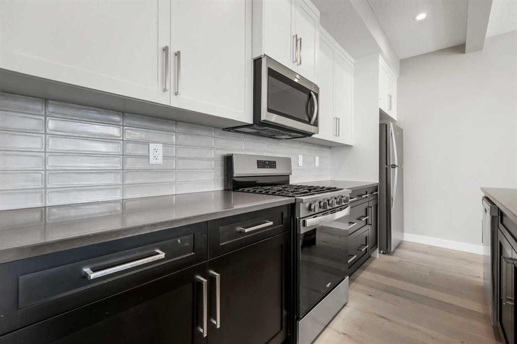 The open-concept main floor welcomes you with elegant engineered hardwood flooring and a seamless flow into a spacious kitchen, complete with a large island—perfect for both entertaining and daily living. The kitchen is well-appointed with a gas stove, refrigerator, and over-the-range microwave, while a BBQ gas line to the main floor deck makes outdoor grilling effortless.