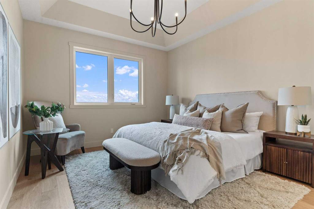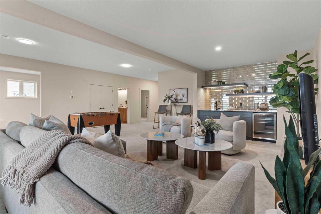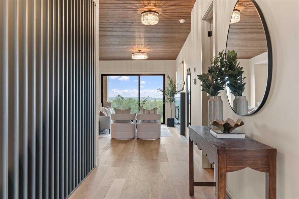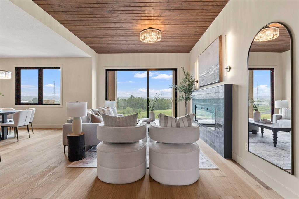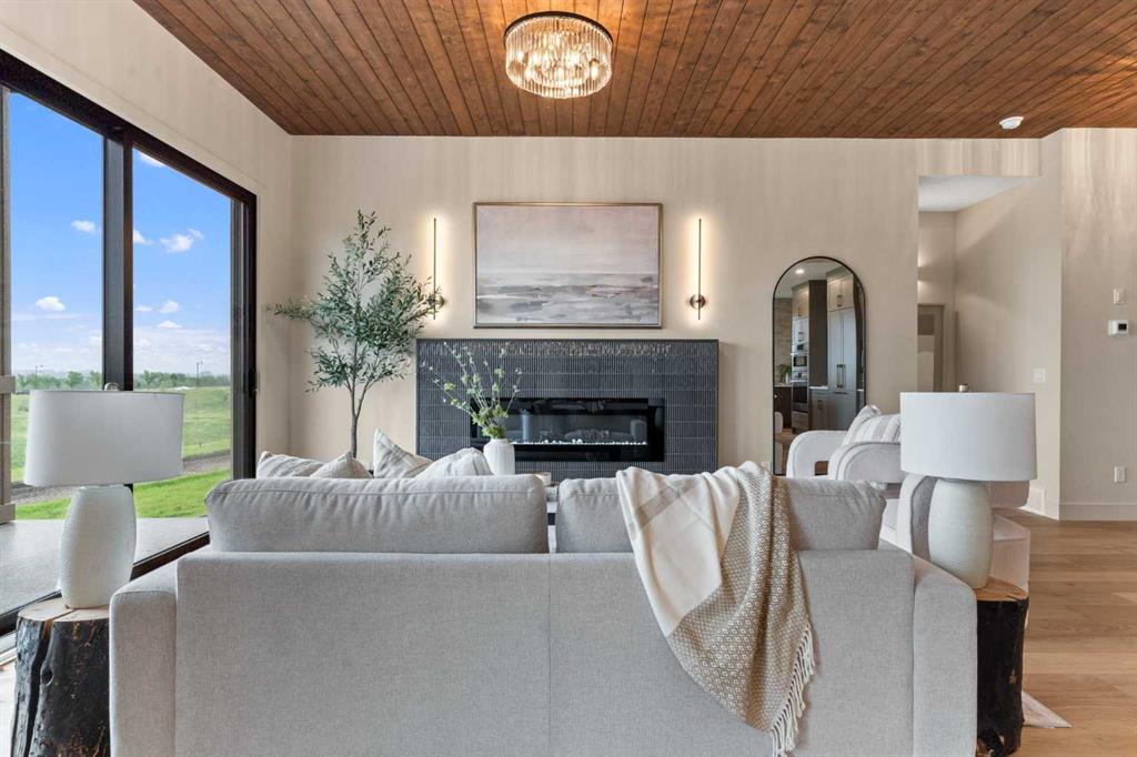 Situated on an exclusive estate cul-de-sac at the highest elevation in Okotoks, this home captures sweeping views of the Sheep River Valley, town, and Rocky Mountains. Black farmhouse windows flood the interior with natural light, while the oversized pie-shaped lot offers rare flexibility, potentially allowing room for a detached shop, pool, or sport court—true acreage-style living within town limits.