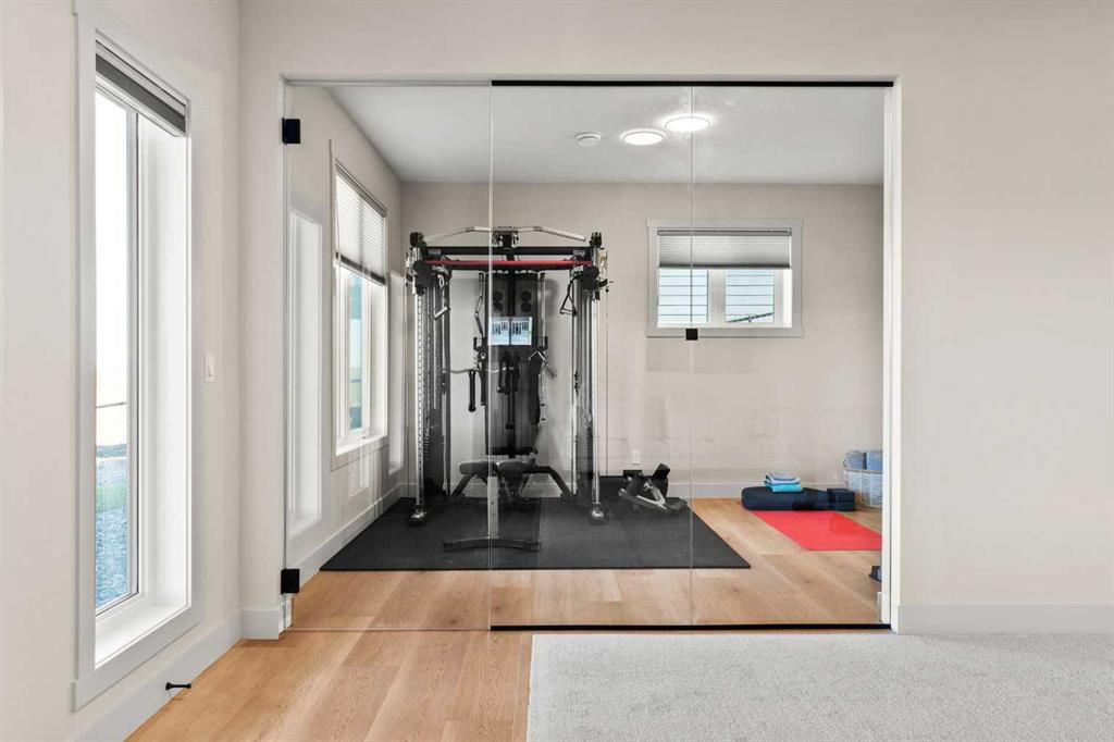 Upstairs offers two spacious bedrooms, a bonus room, and a beautifully finished bathroom with Heated tile floors and dual vanity. The walkout basement expands the living space with an additional large bedroom, full bathroom, expansive recreation area, and a dedicated wellness zone with sauna and gym, plus direct outdoor access.