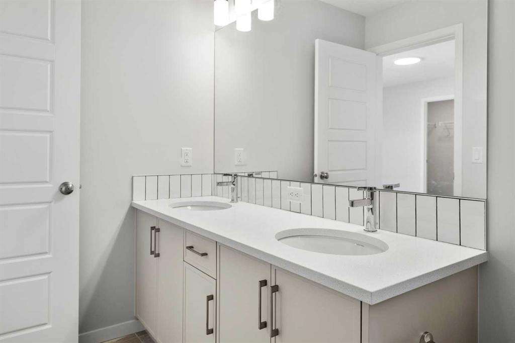 Upstairs, you’ll find a central bonus room that serves as a versatile space – think of it as a media area, craft room, or secondary lounge area. The upper floor also houses the primary bedroom, which includes dual vanities in the ensuite, providing ample room to prepare for your day.