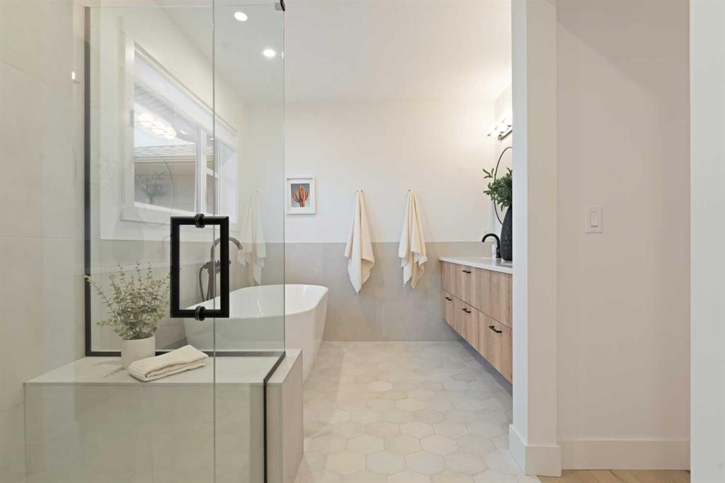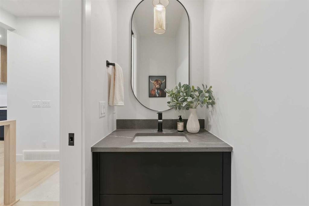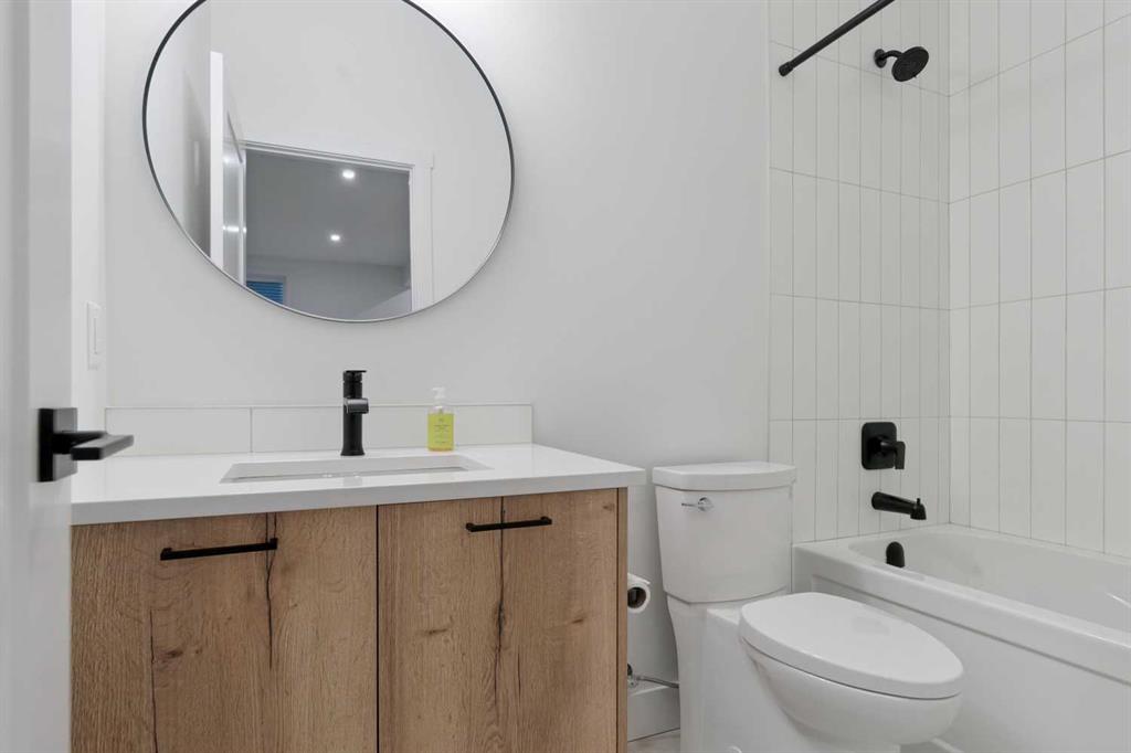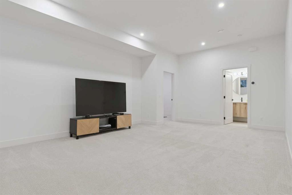 The fully finished basement features impressive 10-foot ceilings, plush carpet, an additional bedroom, and a four-piece bathroom, creating the perfect extension of living space.