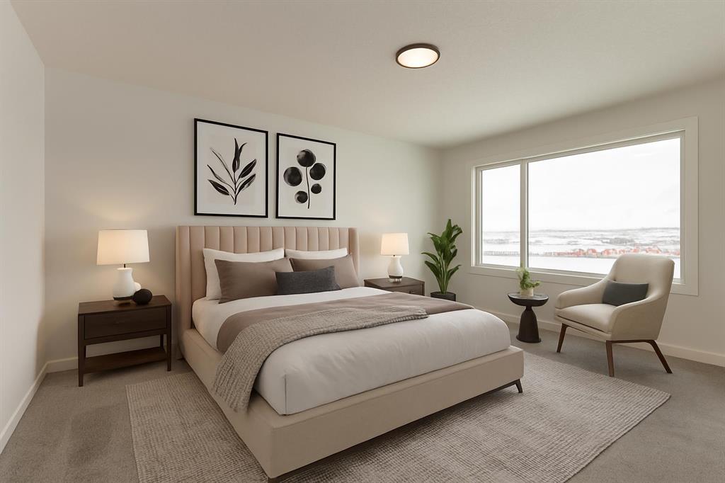 Upstairs, three bedrooms — each with a walk-in closet — branch off a BONUS ROOM BUILT FOR MOVIE NIGHTS and slow Sundays. The adjacent LOFT SPACE keeps the rest of the floor in check: a spot for older kids, crafts, or toys that deserve their own zip code. The master ensuite mixes calm and common sense with a DUAL-SINK VANITY, DEEP SOAKER TUB, and a TILE-AND-GLASS SHOWER that still feels like a treat on a Tuesday. Upstairs laundry with a FOLDING COUNTER and LINEN SHELVING keeps chores civilized instead of scattered.