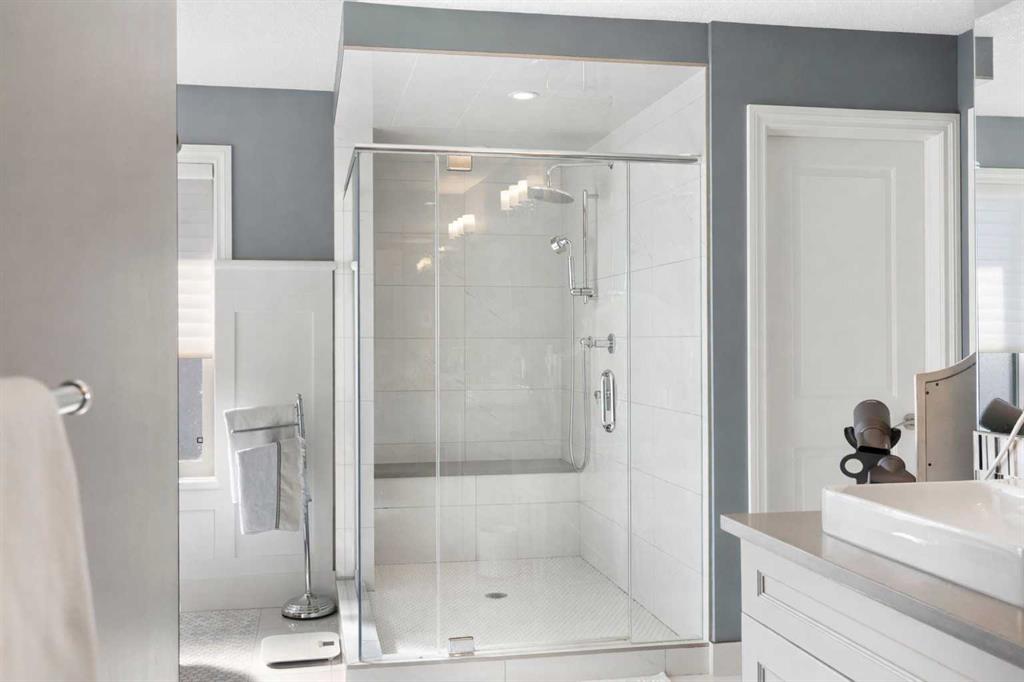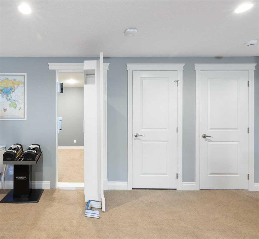 Welcome to this exceptional custom-built residence where timeless architecture, elevated craftsmanship, and advanced technology come together to create a truly remarkable home. Offering 4,343 sq ft of developed living space, this property delivers an outstanding blend of luxury, comfort, and thoughtful design. From the moment you arrive, the striking curb appeal sets the tone with rich timber accents and elegant stone detailing. Inside, soaring 10-foot ceilings, expansive windows, and rich hardwood flooring create a bright, open atmosphere filled with natural light. The heart of the home is the stunning chef-inspired kitchen, designed for both entertaining and everyday living. Anchored by an oversized quartz island, this impressive space features extended pantry storage, custom cabinetry, and high-end appliances. The kitchen flows effortlessly into the dining nook and living room, where a gas fireplace creates a warm focal point. Step outside to one of two decks and enjoy seamless indoor-outdoor living. The formal dining room showcases custom coffered ceilings and direct access to the second deck, offering a refined setting for hosting family and guests. A private home office and a stylish powder room featuring a heated bidet complete the main level. Upstairs, 9-foot ceilings and a thoughtfully designed layout provide both comfort and privacy. A spacious bonus room offers the perfect space for relaxing or movie nights. The luxurious primary suite is a true retreat, featuring large windows, a generous walk-in closet, and a spa-inspired ensuite complete with a freestanding soaker tub, dual sinks, oversized walk-in shower, and heated bidet toilet. Two additional bedrooms, a beautifully finished full bathroom with dual sinks and separate shower and toilet space, along with convenient upper-level laundry, complete this floor. The fully developed basement expands the home’s entertaining potential with a large recreation room featuring a second gas fireplace and a custom bar highlighted by a striking stone wine feature wall—perfect for displaying your collection. This level also includes an additional bedroom, a full bathroom, and a hidden secure safe room. Modern comfort is seamlessly integrated throughout with Control4 smart home automation, built-in speakers throughout, fully automated window coverings, and Nest thermostats, allowing effortless control of lighting, sound, climate, security and privacy. The oversized 2.5-car garage features three garage doors (two front and one side) and includes a workshop area, ideal for hobbies or additional storage. Also, set up for two charging stations. Outside, the beautifully landscaped and fully fenced yard offers the perfect balance of relaxation and entertaining. The fence was custom -built with stone corner pillars to match the house. Also complete with underground sprinklers, a custom-built shed, two decks, and a pergola. Upgrades include two furnaces, tankless hot water, and a water softener all 4 years old.
