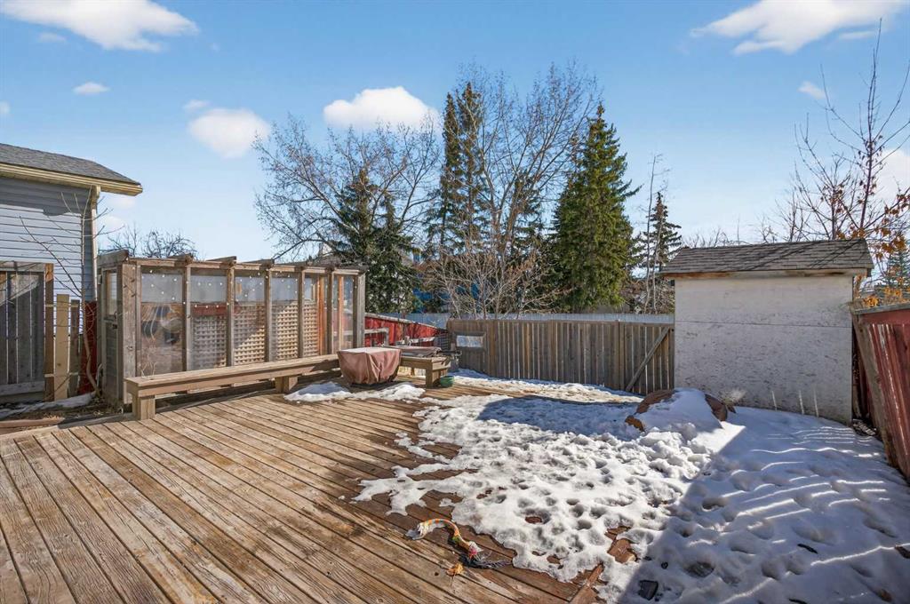 Step outside and enjoy everything Calgary summers are known for. The backyard features a garden, storage shed, and a deck with built-in seating, an ideal space for relaxing or entertaining.