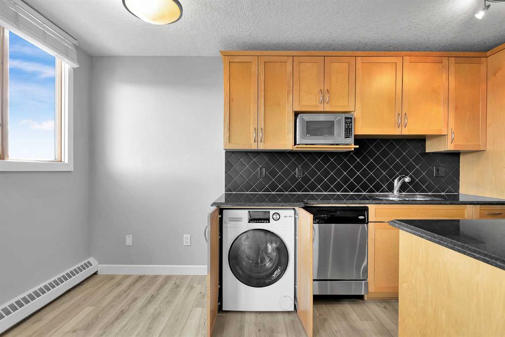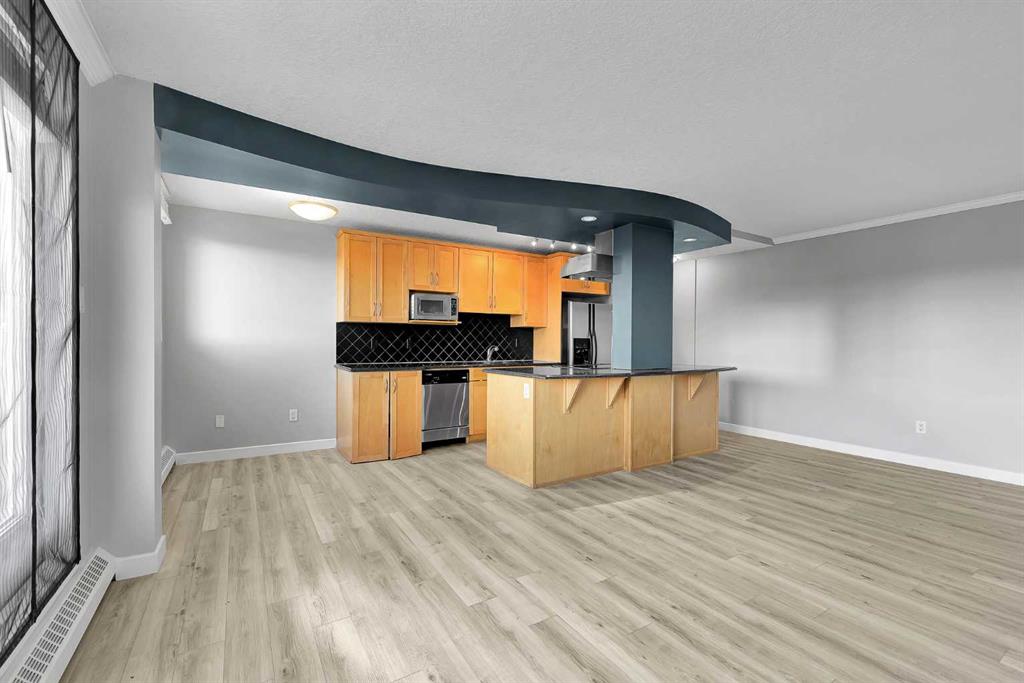 Welcome to this TOP-FLOOR, move-in ready 2-bedroom condo offering exceptional value in the heart of Calgary’s vibrant Beltline. Enjoy fantastic views overlooking Thomson Family Park—a beautifully redeveloped inner-city green space with walking paths, open lawn areas, a playground, and seasonal skating—right outside your door. For buyers looking to secure a well-located inner-city home with strong livability and long-term potential, this is a standout opportunity. This updated, south-facing END unit features a bright and functional 2-bedroom, 1-bath layout with new luxury vinyl plank flooring throughout, creating a clean, modern feel the moment you walk in. The top-floor location offers added privacy and quiet—no neighbours above—making it an ideal choice for professionals, first-time buyers, or investors. Enjoy the convenience of in-suite all-in-one laundry and a layout designed for comfort, with well-defined living and dining spaces that feel both practical and inviting. Located in the Biltmore, this is a solid, well-established concrete building with a track record of long-term ownership. Just steps from 17th Avenue SW, you’re immersed in one of Calgary’s most dynamic and walkable neighbourhoods, with restaurants, cafés, everyday amenities, transit, and the downtown core all within easy reach. Condo fees include heat, water, and electricity—offering simplified monthly budgeting and greater financial predictability. Call to book your private viewing today!