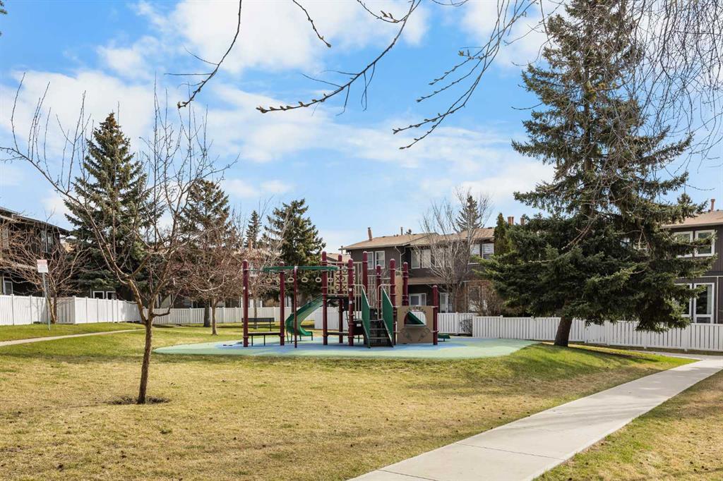 Step outside to your fully fenced East-facing backyard with an expansive deck perfect for outdoor dining and relaxation. Two growing cherry trees and a medium-sized evergreen bring seasonal colour, texture, and life to the backyard, making it a serene and inviting outdoor retreat. Convenient gate provides access to the complex courtyard with walking paths and playground—creating a wonderful community atmosphere for families. Visitor parking is conveniently located nearby for guests.