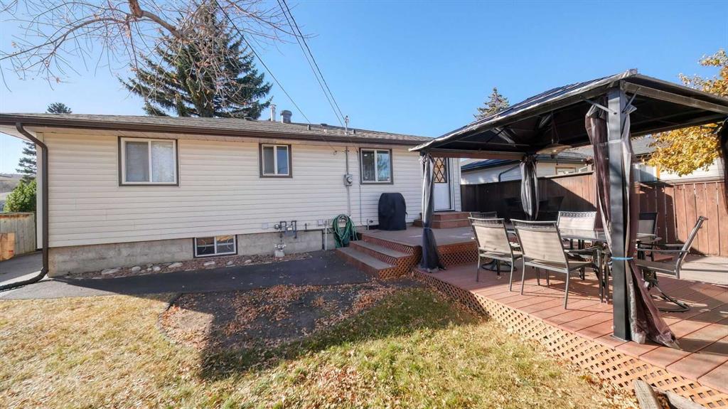 55 Ft Wide By 110 Ft Long – 562 Square Meter Lot with M-C1 Zoning! On-top of the lot sits a charming 3 bedroom bungalow with 2 bedrooms up, a 4-piece bathroom, open concept living, kitchen, and dining, along with a gas fireplace. Below is a family room, a bedroom, den and half bathroom, and laundry. Outside features a spectacular yard with mature trees, a massive double tiered deck, and an oversized heated double garage along with a parking pad. Move in and enjoy Bowness, or select from many different construction options available. Close to the farmers market, the Trans-Canada highway, schools, biking paths, and more!