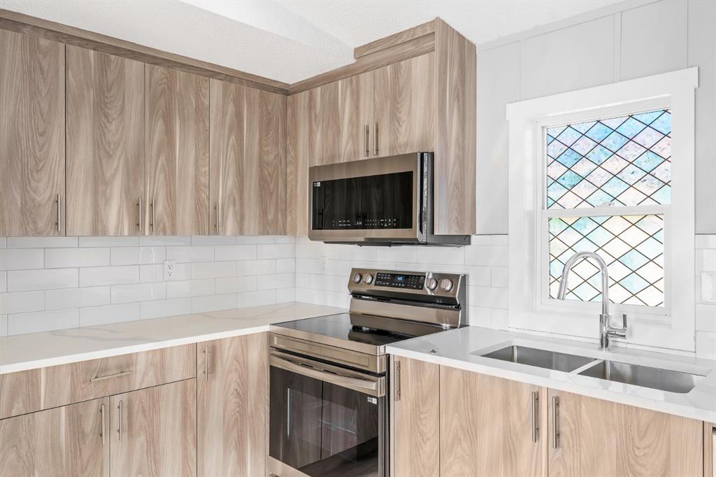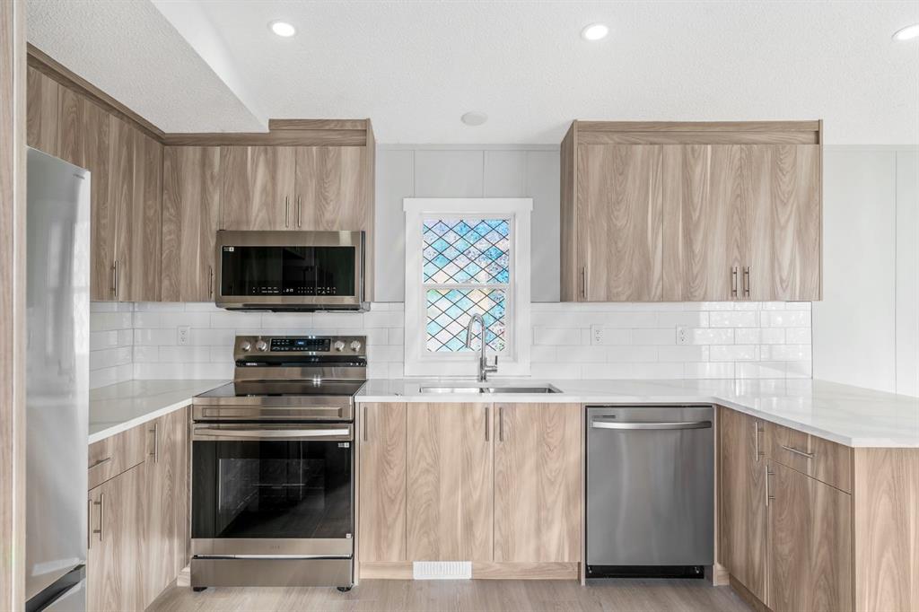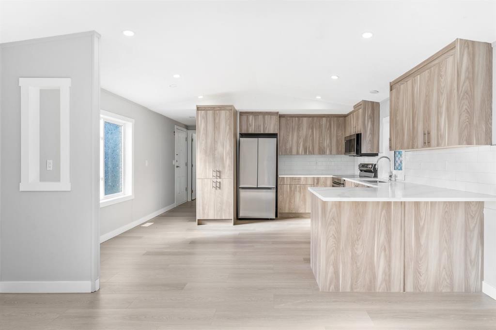 BEAUTIFULLY RENOVATED: 3 bedroom and 2 bathroom home – nearly 1200 sq.ft located in the sought after park of Chateau Estates. This includes BRAND NEW KITCHEN with gorgeous custom cupboards, QUARTZ countertops, beautiful backsplash and BRAND NEW STAINLESS STEEL APPLIANCES! *** Brand new Luxury Vinyl Flooring throughout the whole home***New lighting throughout*** Bathrooms have been update with new toiles and vanities. The whole home has just been professionally painted. Brand new interior doors and baseboards everywhere! This spacious home is perfect for a family or someone that is looking to downsize and simplify life. The property comes with two decks, a patio and a large SHED! Extremely low pad fees ($630/month)! You have go to come here to view this NOW! Won’t last long!