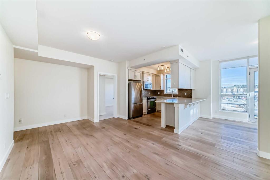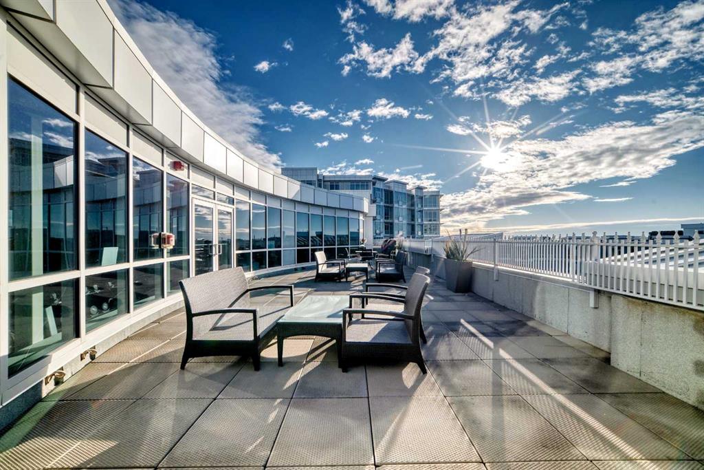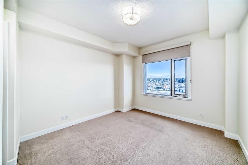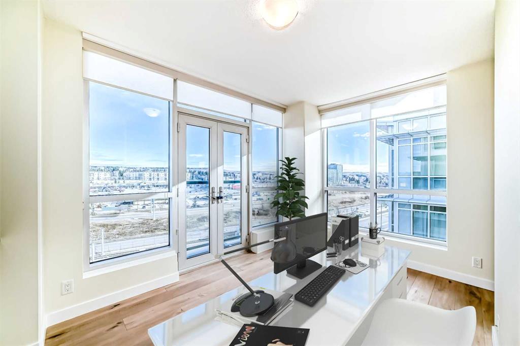 Experience elevated urban living in this gorgeous, light-filled corner residence. Located on the 8th floor of the prestigious Monterey One Tower, this 1,286 sq. ft. concrete-and-steel sanctuary offers a sophisticated blend of space and style. Upon entry, the well-appointed building lobby sets an upscale tone. Inside the suite, high ceilings and large windows bathe the open-concept layout in natural light. The versatile floor plan features a spacious living and dining area, complemented by a semi-enclosed, sunlit office/flex space – perfect for the remote professional. Bedrooms on either side of the suite ensure maximum privacy. The primary bedroom serves as a retreat, featuring a walkthrough closet leading to a 5-piece ensuite with quartz double vanities. Finished with engineered hardwood, light-toned paint, PLUS central air conditioning, every inch of this unit feels fresh and modern. The Groves was designed for a wellness-focused lifestyle, with a comprehensive fitness centre, steam rooms, a professional meeting room, and a wrap-around rooftop patio with panoramic views of the city skyline and the Rockies. Extra storage can be found in a separate assigned storage locker in the secure parkade. Love your Varsity lifestyle — just steps from the Dalhousie LRT and Dalhousie Station shopping, professional medical services, a pharmacy, and a delightful local coffee shop, plus convenient access to Market Mall, the U of C, and the Foothills Hospital. Make this special unit your new home in one of Calgary’s greenest communities.