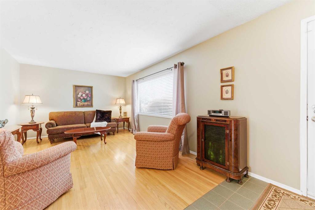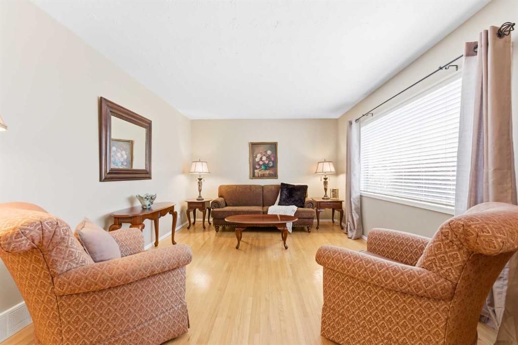 Step inside to a bright, open main floor featuring original hardwood flooring and a functional layout designed for both everyday living and entertaining. The kitchen offers timeless appeal with custom solid wood cabinetry—expertly crafted by a skilled woodworker—alongside white appliances, tile flooring, and a large window above the sink that fills the space with natural light. A versatile main floor bedroom or office and a full 4-piece bathroom complete this level.