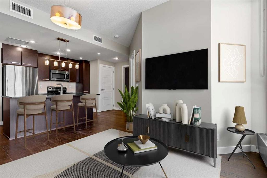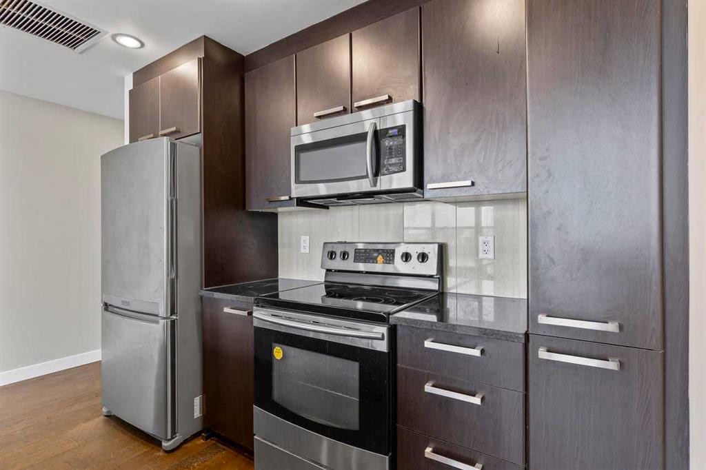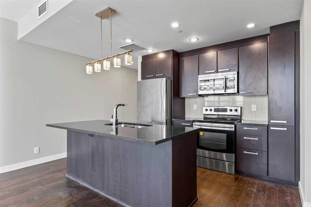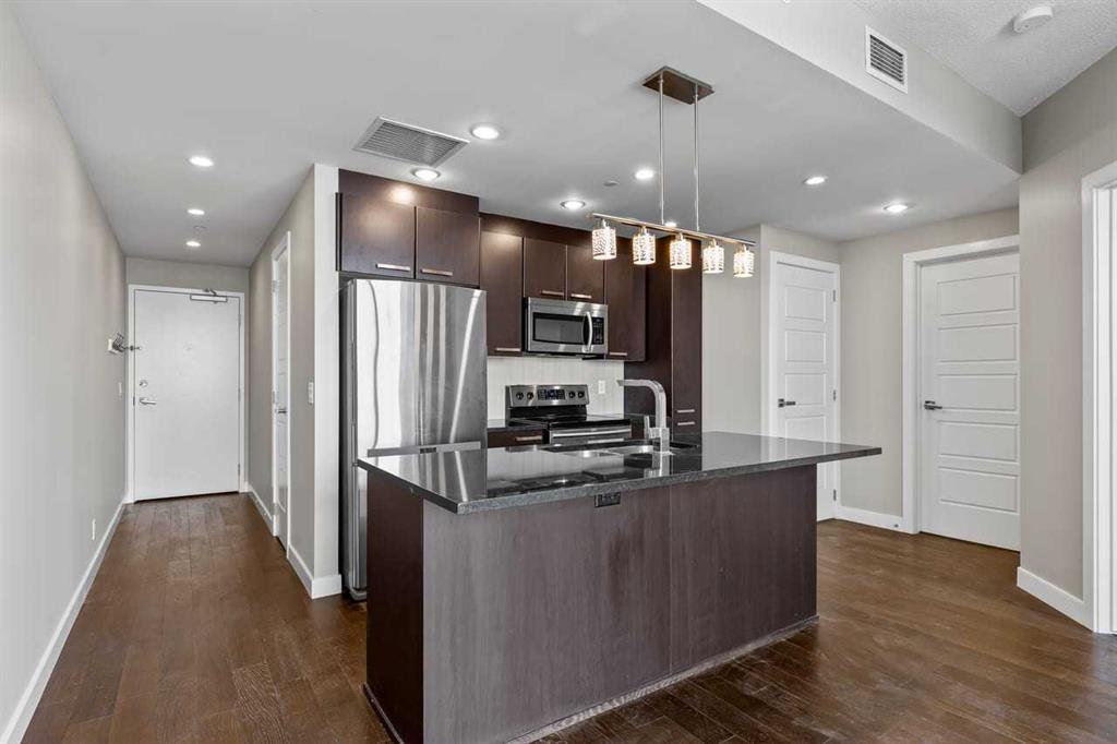 INVESTOR ALERT!!!! Great location, steps away from Stampede LRT, 17 Ave, Saddledome, Sunterra, Downtown and more. This is a low-maintenance unit, and it’s been rented from day 1. Modern style open concept with large windows. Cozy unit with engineered hardwood floors, granite countertops and stainless steel appliances. Private access to Sunterra Market, great amenities with complete and high-end exercise machines and weights, hot tub, party room and guest suite. Underground parking and roof patio. Book your private showing.