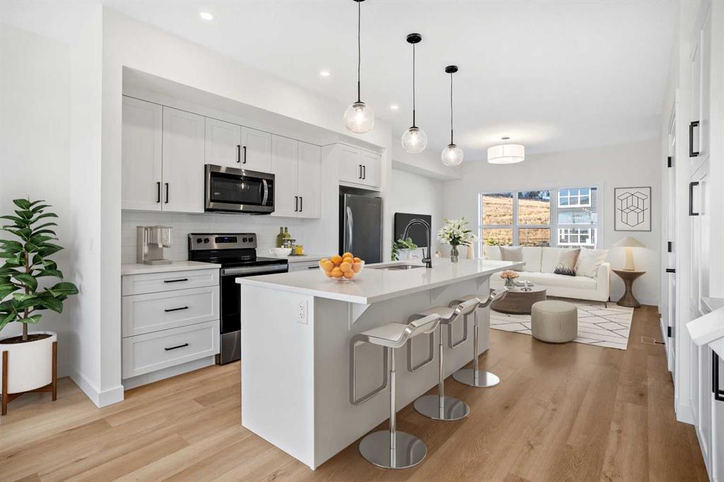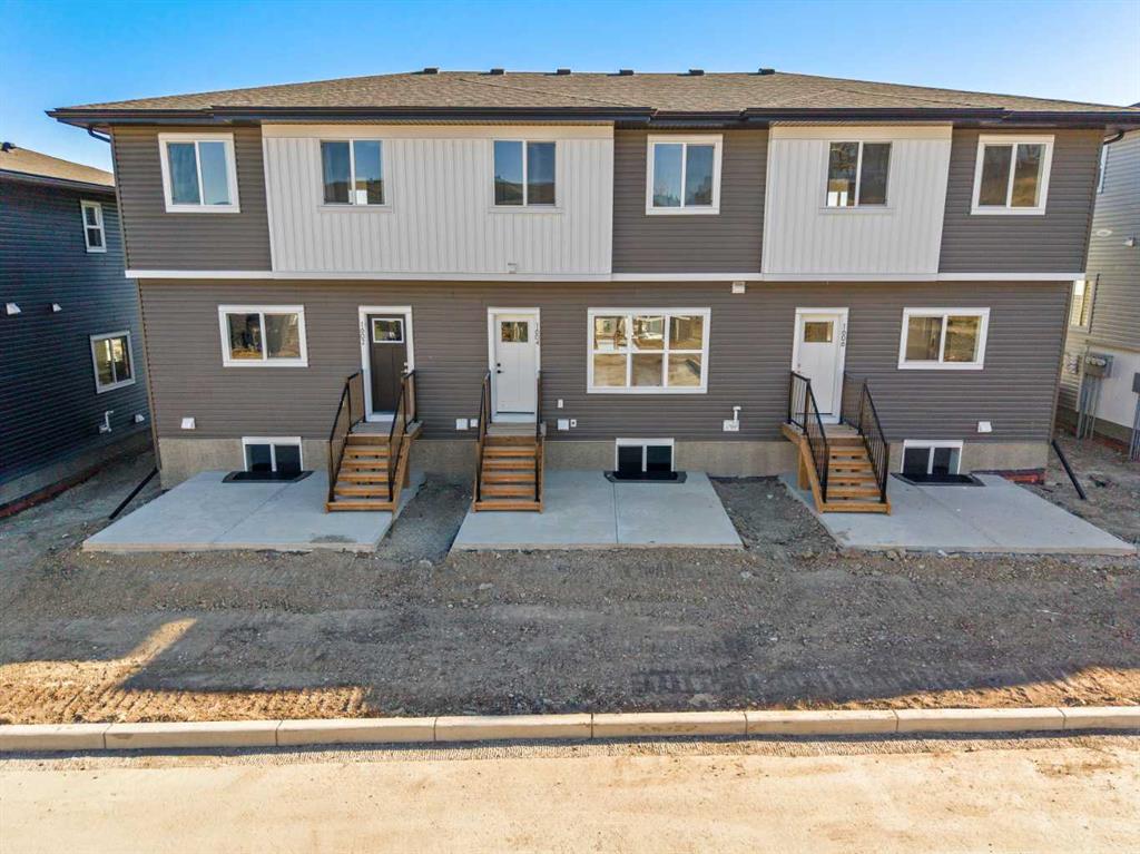 *MOVE IN READY FOR DECEMBER 2025!* Welcome to the newly built #804, 525 River Heights Drive. This townhome features a HUGE SOUTH-FACING FENCED BACKYARD that offers the feel of a single-family yard. Inside, the main floor is bright and open, with a modern layout designed for both style and function. This unit backs onto a WALKING PATH AND GREENSPACE! At the heart of the home is a SLEEK CONTEMPORARY KITCHEN with QUARTZ COUNTERTOPS, MATTE BLACK HARDWARE, WHIRLPOOL STAINLESS STEEL APPLIANCES, SOFT-CLOSE CABINETRY, and a CENTRAL ISLAND WITH SEATING, ideal for casual dining or entertaining. The kitchen flows seamlessly into the dining and living areas, where LARGE WINDOWS and LUXURY FLOORING create a welcoming atmosphere. A powder room and a DEDICATED MUDROOM off the back entrance add practicality to everyday living. Upstairs, the primary bedroom includes a WALK-IN CLOSET and a PRIVATE THREE-PIECE ENSUITE. Two additional bedrooms provide versatile space for children, guests, or a home office. A four-piece bathroom and a CENTRUALLY LOCATED LAUNDRY area complete the upper floor with added convenience. The unfinished basement offers potential for future development, extra storage, or a layout tailored to your needs. Energy-efficient features such as DUAL-PANE windows, a HIGH-EFFECIENCY HVAC system, and an HRV unit support year-round comfort. Outdoors, you can relax in your FULLY FENCED BACKYARD with a REAR PATIO or enjoy a quiet morning on the COVERED FRONT PORCH. Two parking stalls are INCLUDED, and with LANCSDCAPING and SNOW REMOVAL taken care of, this property is truly low maintenance. Situated in the well-established community of RIVERSONG, you are close to schools, parks, walking paths, CO-OP and the Spray Lake Sawmills Family Sports Centre. Quick access to Highway 1 and 22 makes both Calgary and the mountains easy to reach. With quality finishes, a thoughtful design, and a vibrant neighborhood, this home offers comfort and convenience in equal measure. Please note that photos are taken from the showhome and may not reflect this property, as it is still under construction. CONTACT TO VIEW THE FREESTONE SHOWHOME at 525 RIVER HEIGHTS DRIVE – OPEN WEEKENDS 12 – 5pm!
