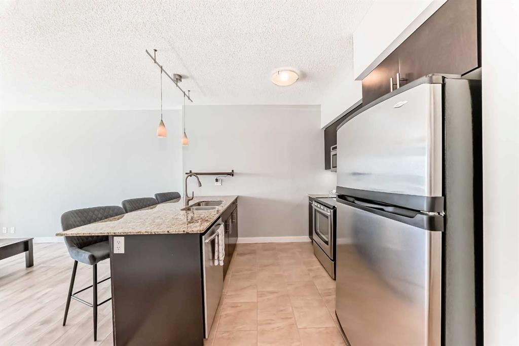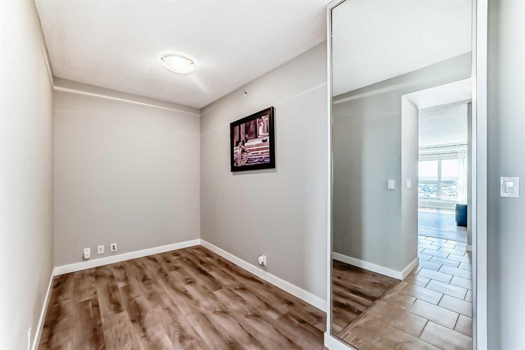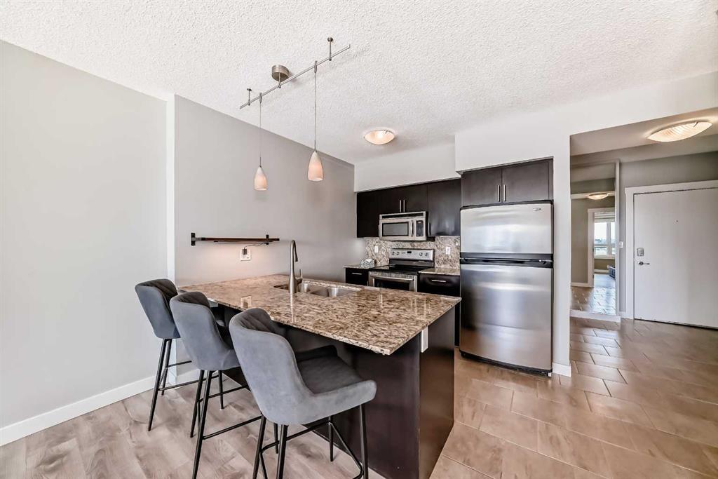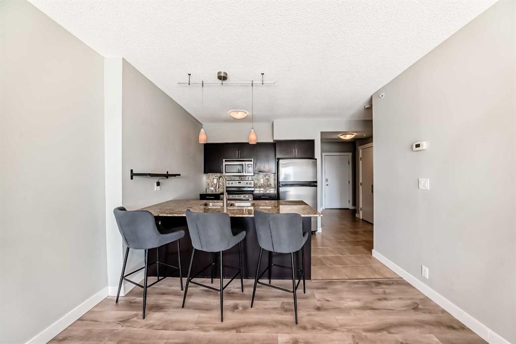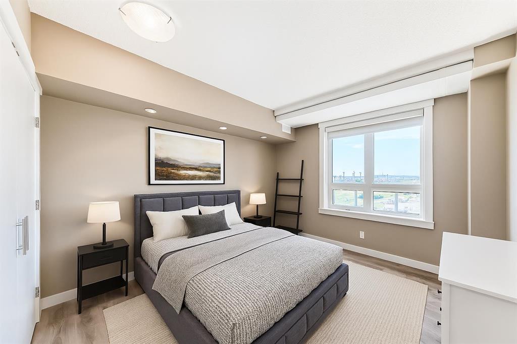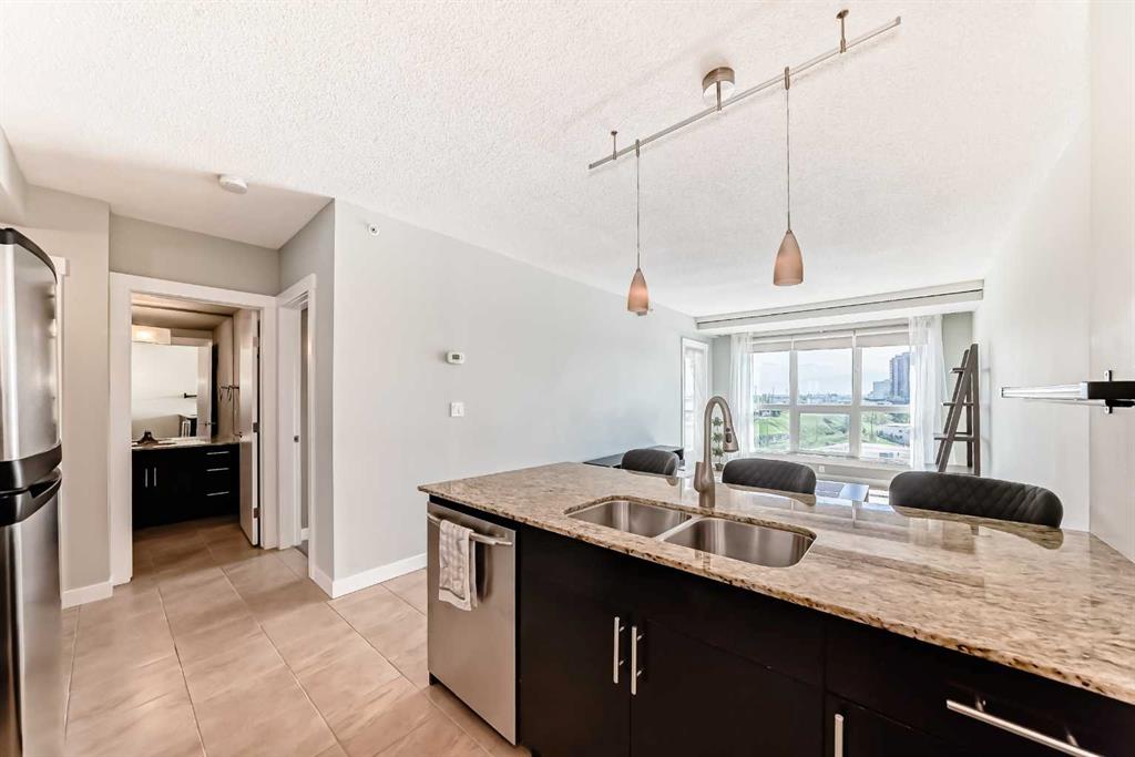 Welcome to this MOVE IN READY, exceptionally spacious, sun-filled 1 BEDROOM + DEN condo in the heart of Haysboro. This condo features high quality Rivera laminate flooring with premium underlay, a beautifully maintained kitchen with stainless steel appliances, GRANITE countertops and a generous island – perfect for entertaining! Enjoy the convenience of IN-SUITE LAUNDRY, ON DEMAND HOT WATER, and an unassigned heating underground parking stall with bike storage. The oversized bedroom features a generously sized closet. The well-appointed 4-piece bathroom features an extended vanity, granite counters, and a tub/shower combo. The generous DEN SPACE is a true bonus—ideal for a home office, guest room, second living area, or even a formal dining space. BUILDING AMENITIES include weekday concierge service, 24-hour security, three high-speed elevators, and a 17th-floor SUNROOM TERRACE with panoramic views. Enjoy unmatched convenience with DIRECT PARKADE ACCESS to Save-On-Foods, Tim Hortons, and the “Shops at Heritage,” plus the Heritage LRT Station just across the street. Surrounded by bike paths, Glenmore Reservoir, Fish Creek Park, major shopping centers like Chinook Centre, and South Centre, and countless dining options, this is the ultimate blend of comfort, style, and location!
