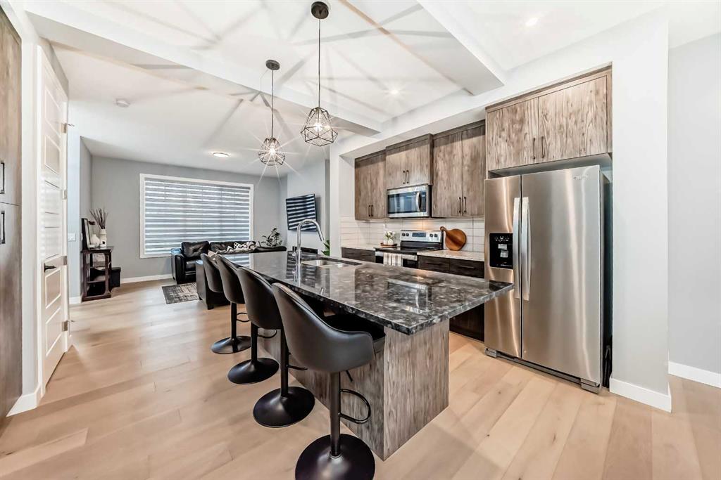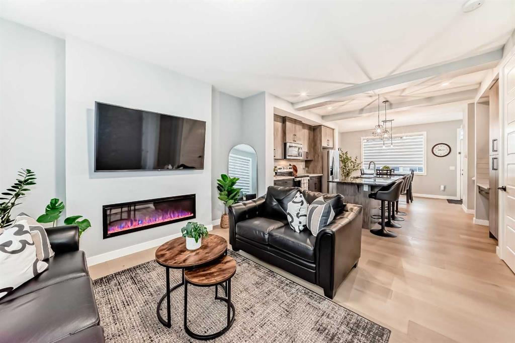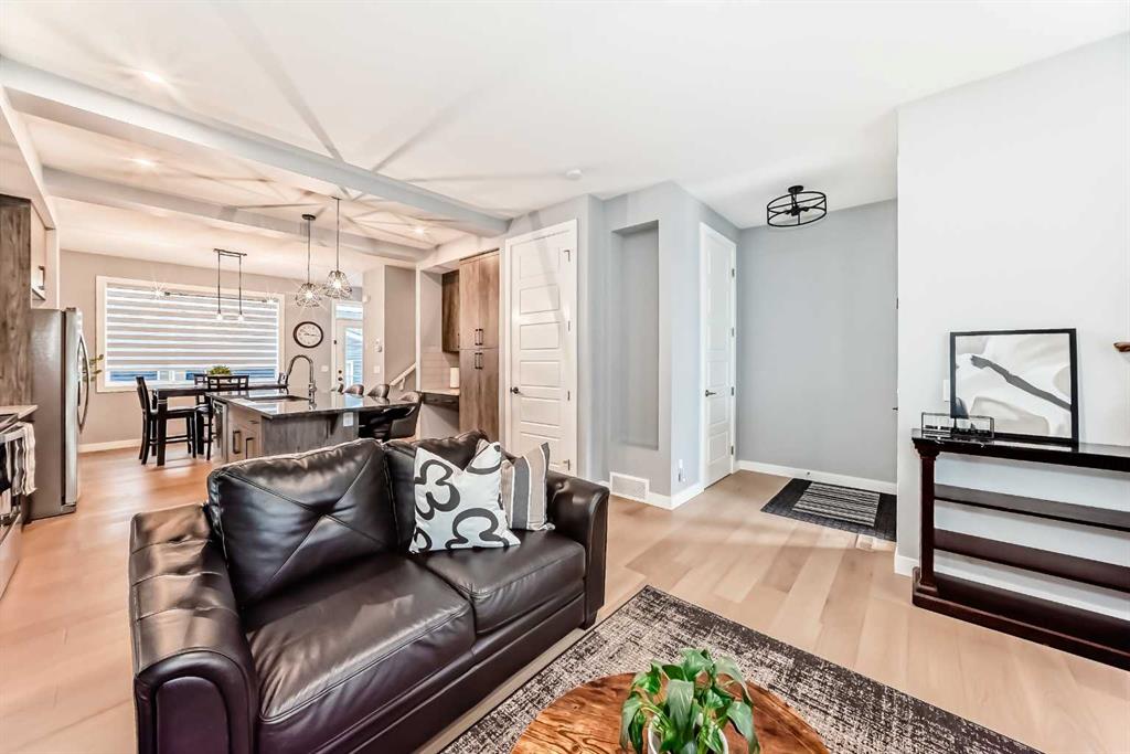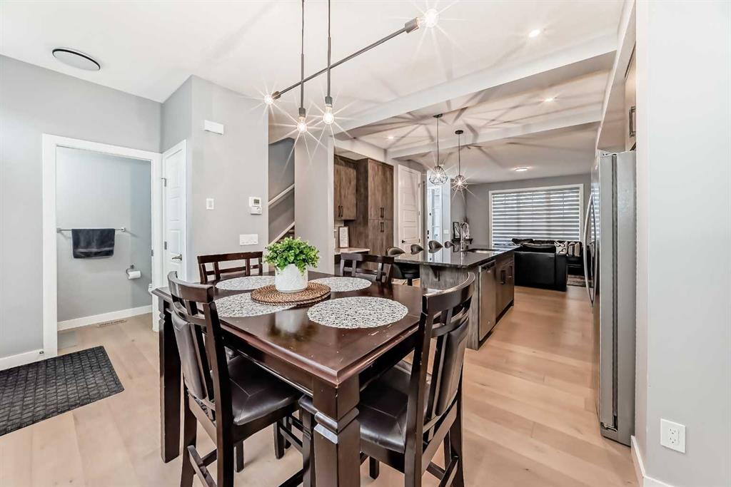 Sunlight pours through big windows from the moment the day begins, lighting up the vinyl flooring that flows effortlessly through the entire main level. The open concept main floor feels so spacious yet cozy, perfect for morning coffee with the sun streaming in and family dinners that spill from kitchen to living room that will surely be enjoyable. The kitchen really shines with sleek quartz counters tops, a thoughtful layout, plenty of storage, beautiful cabinetry and a design that makes cooking or just hanging out at the island so wonderful. Tucked just off the main floor is a convenient powder room, and upstairs you’ll discover three generous bedrooms, two full bathrooms, and a laundry area. No more lugging baskets up and down the stairs. The primary bedroom is bright and spacious with 3 piece-ensuite and walk-in closet. At the back, there’s an oversized double-car garage where you can park big SUVs. This property is located just off 40 Avenue with fast access to Highway 2, so you get the peace and the community-feel of Lanark with an easy commute into Calgary and Cross Iron Mills whenever you need it. This isn’t just a house, it’s the home you’ve been waiting for, bright, modern, practical, and ready for your life and cherished memories!