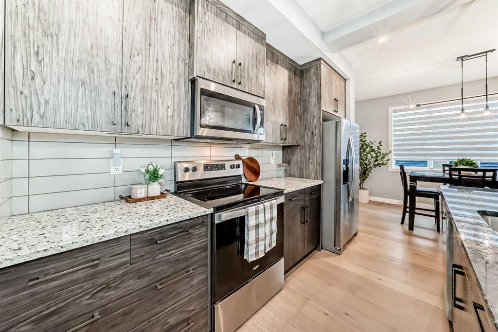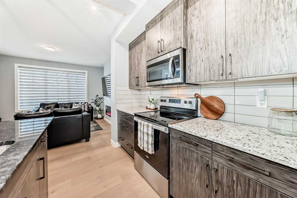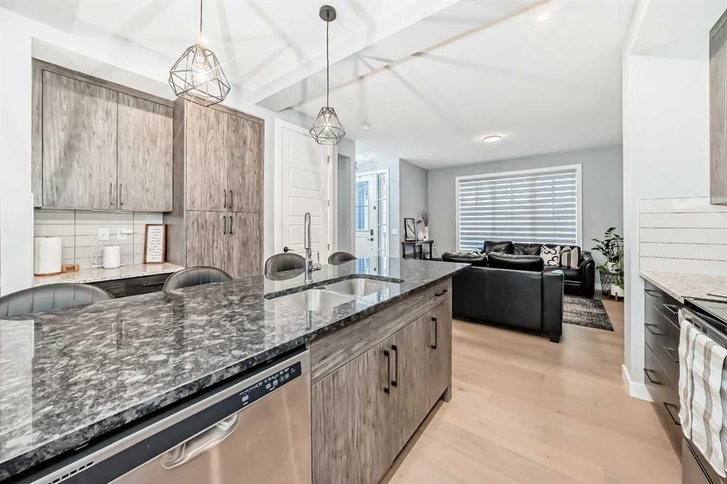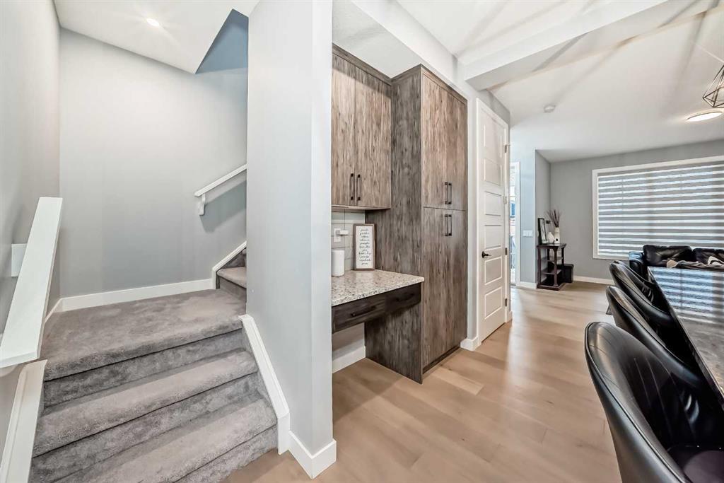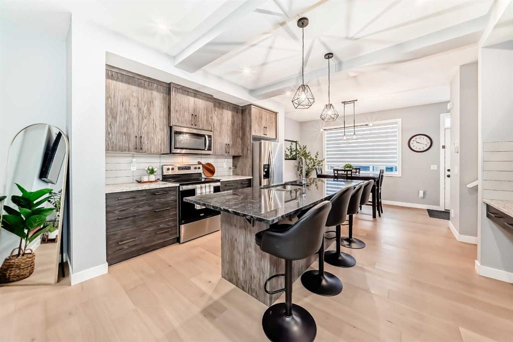Sunlight pours through big windows from the moment the day begins, lighting up the vinyl flooring that flows effortlessly through the entire main level. The open concept main floor feels so spacious yet cozy, perfect for morning coffee with the sun streaming in and family dinners that spill from kitchen to living room that will surely be enjoyable. The kitchen really shines with sleek quartz counters tops, a thoughtful layout, plenty of storage, beautiful cabinetry and a design that makes cooking or just hanging out at the island so wonderful. Tucked just off the main floor is a convenient powder room, and upstairs you’ll discover three generous bedrooms, two full bathrooms, and a laundry area. No more lugging baskets up and down the stairs. The primary bedroom is bright and spacious with 3 piece-ensuite and walk-in closet. At the back, there’s an oversized double-car garage where you can park big SUVs. This property is located just off 40 Avenue with fast access to Highway 2, so you get the peace and the community-feel of Lanark with an easy commute into Calgary and Cross Iron Mills whenever you need it. This isn’t just a house, it’s the home you’ve been waiting for, bright, modern, practical, and ready for your life and cherished memories!