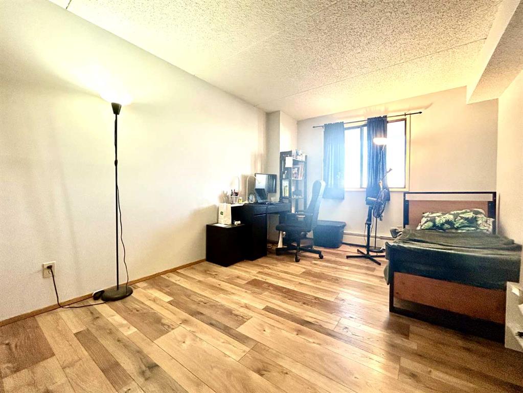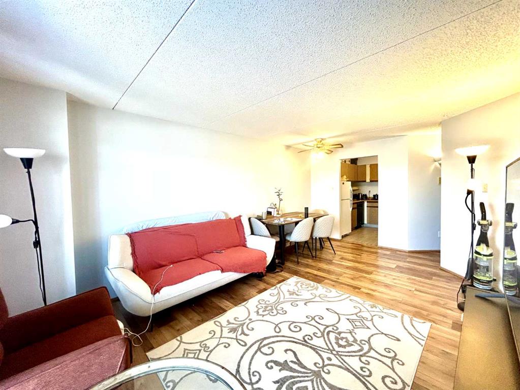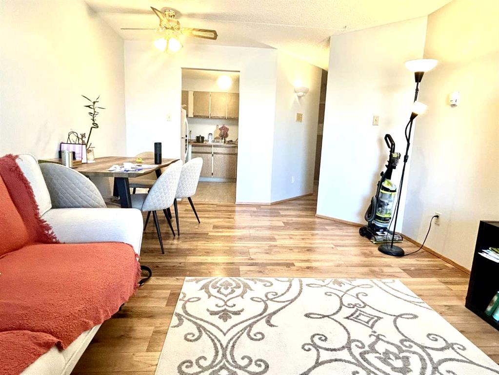 This attractive one-bedroom, one-bathroom condominium in Dalhousie features a well-designed layout, including a private storage room. The functional kitchen offers ample counter and cabinet space, along with a full appliance package. A separate dining area overlooks the bright living room, which opens onto a covered deck with views of Nose Hill Park. The generously sized primary bedroom adds to the comfort of the unit. Residents also enjoy access to a range of amenities, including heated underground parking, a common laundry room, sauna, fitness area, games room, party room, tennis court, and ample visitor parking. Recent upgrades include fresh paint, a new toilet, and new flooring in the bedroom, kitchen, and bathroom. Ideally located within walking distance to public transit, parks, and shopping, and close to universities and hospitals, this property is perfect for first-time buyers, young professionals, or investors.