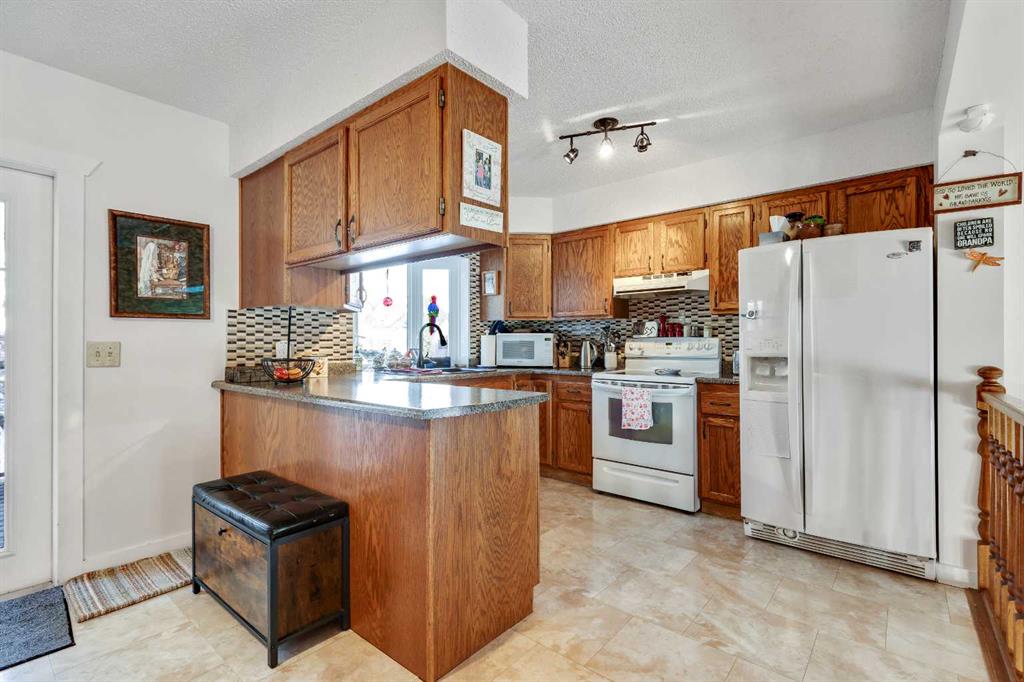 LOCATION, LOCATION, LOCATION! Situated on one of the most sought-after streets in the SW, this beautifully maintained 4-bedroom family home offers the perfect blend of comfort, charm, and convenience. Enjoy sunny mornings on the south-facing front patio, an ideal spot to relax with coffee or chat with neighbors. Inside, the main level welcomes you with a warm family room featuring vaulted ceilings and a cozy gas fireplace—a perfect place to showcase your holiday dĂ©cor. Upstairs, the bright dining room flows seamlessly into the kitchen, making family meals and entertaining a breeze. Step right out onto the spacious rear deck, offering ample room for outdoor seating and BBQs (there is a gas line) with a 2-tiered deck. The primary bedroom features two large closets and a beautifully updated ensuite with a full tile walk-in shower and custom cabinetry by Wegener Homes. Two additional bedrooms and a full bathroom complete this level. The lower level is filled with natural light thanks to full-size windows. An oversized family room provides a comfortable space for movie nights or game time. This level also includes a fourth bedroom, full bathroom, private laundry room, mechanical room and access to a partial basement—perfect for seasonal storage. Outside, you’ll appreciate the extended driveway leading to a heated oversized single (20’x20′) detached garage. Additional storage is abundant with a shed and under-deck space. The maintenance-free fence on the west side, installed by Wegener Homes (2023), adds both privacy and polish. Other updates include: Metal roof (2013), Windows (2013), Interior doors (2013), Hot Water Tank (2013), Furnace (2013), Vacuflo with kitchen toe-kick & 2 hoses (2013), Gutter guards, Exterior professionally re-stained (2022) , New Ensuite toilet (2025). Just one block away, access the Happy Trails pathway system, which leads you to the Highwood River, forested paths, George Lane Park, and onward to downtown. With year-round community events—including the Hot Air Balloon Festival, our Christmas & Little Britches parades, Car Shows, and weekly farmers’ markets in the summer —plus a nearby Elementary school and the High River Hospital, this location offers an unbeatable blend of convenience and small-town charm. This is your chance to own a home in one of High River’s most desirable neighborhoods!
