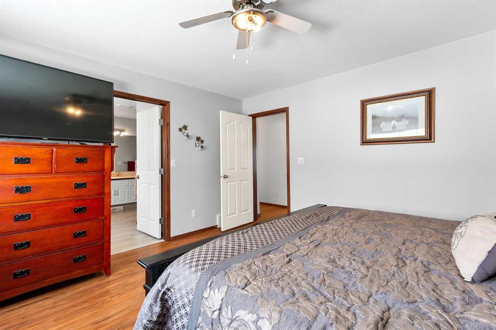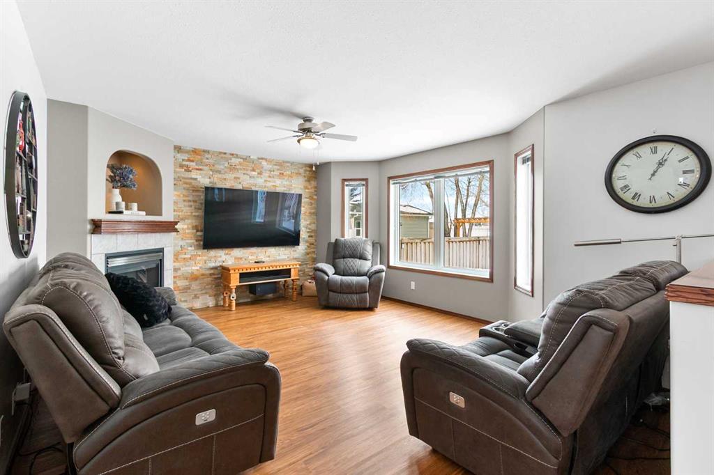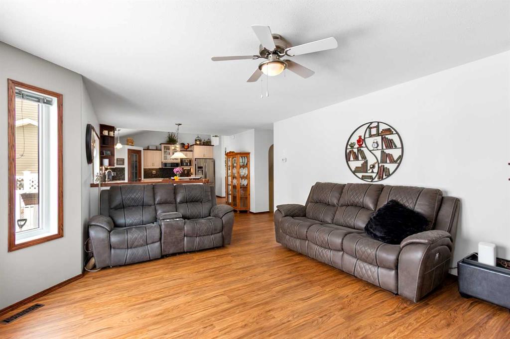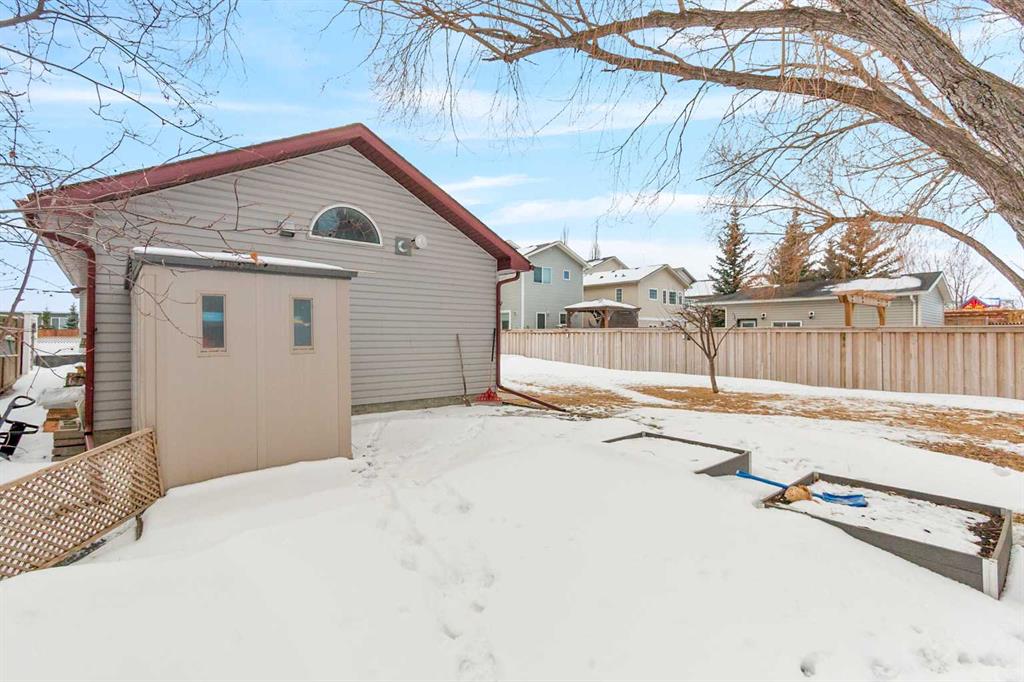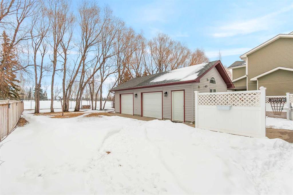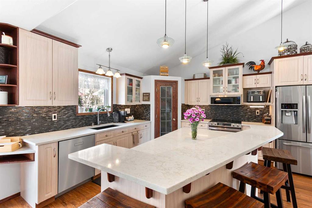 Wonderful family home on a spacious 53 x 150 ft. lot backing directly onto the CARSTAIRS GOLF COURSE. This immaculately maintained 2-owner BUNGALOW/ SPLIT HOME offers exceptional living space with a formal living and dining room, a bright great room, and a stunning COUNTRY KITCHEN featuring vaulted ceilings, a massive ISLAND quartz countertops, corner PANTRY, and a generous dining nook. The inviting family room showcases a striking feature wall & a GAS FIREPLACE, while MAIN FLOOR LAUNDRY adds convenience. A beautiful curved staircase leads to the upper level where you’ll find a large primary retreat with a 5-piece ENSUITE + WALK IN CLOSET, plus two additional spacious bedrooms and a 4-piece bathroom. The massive undeveloped basement provides endless potential for future development. As an added bonus, the property includes a separate heated 20 x 32 ft. DETACHED WORKSHOP/GARAGE + DOUBLE ATTACHED GARAGE with 8 ft. side access from the street, along with RV parking. The fully fenced yard features mature LANDSCAPING, fruit trees, garden boxes, a patio, and backs onto peaceful golf course views. Ideally located just 20 minutes to Airdrie and 30 minutes to CrossIron Mills, this property offers small-town charm with convenient access to major amenities — a wonderful place to call home.