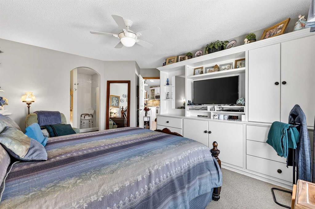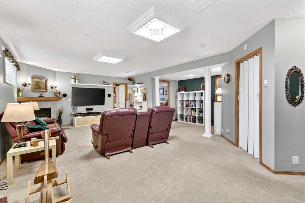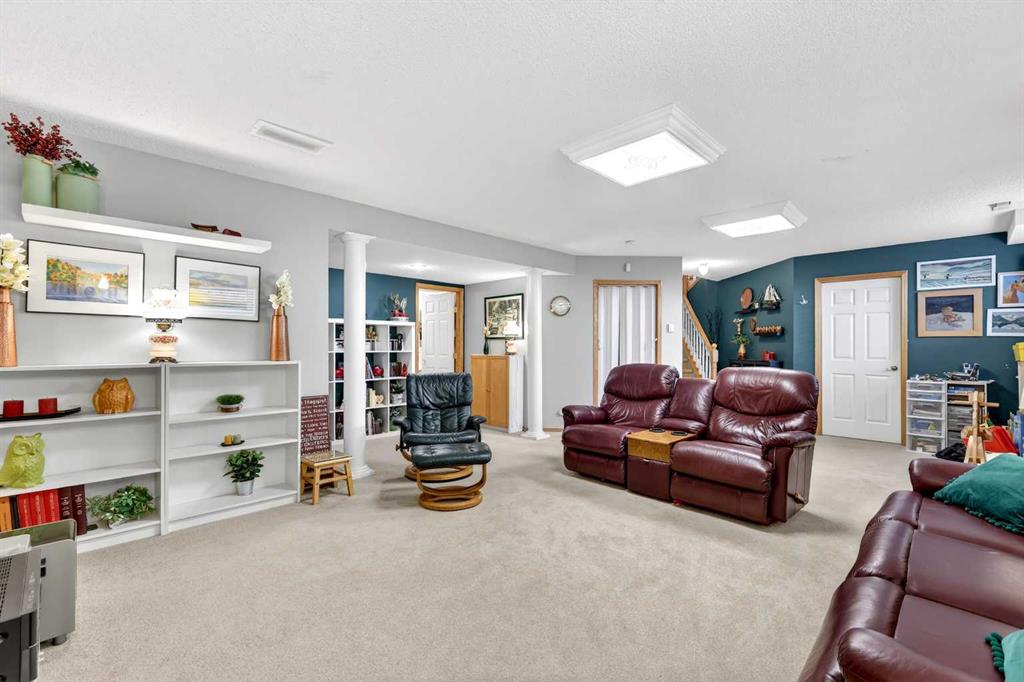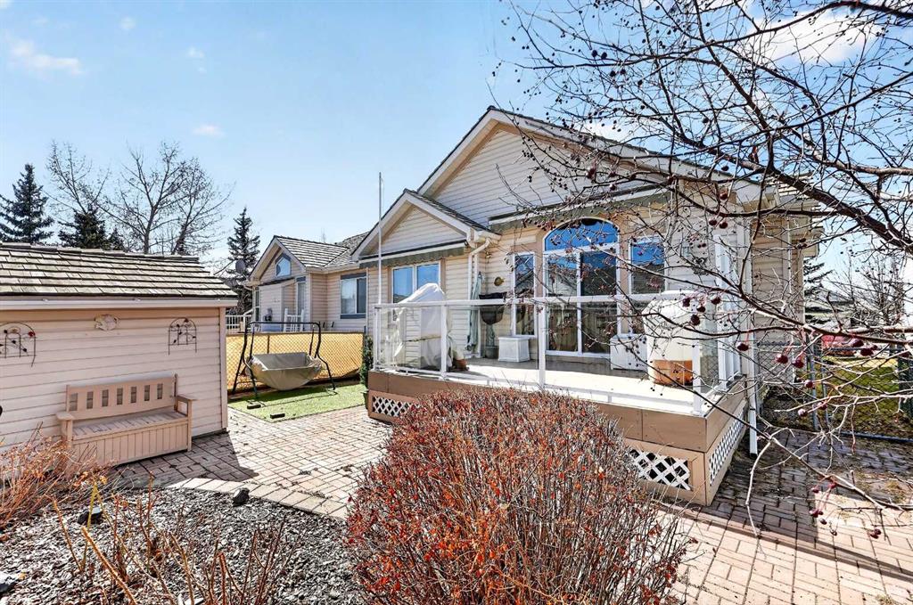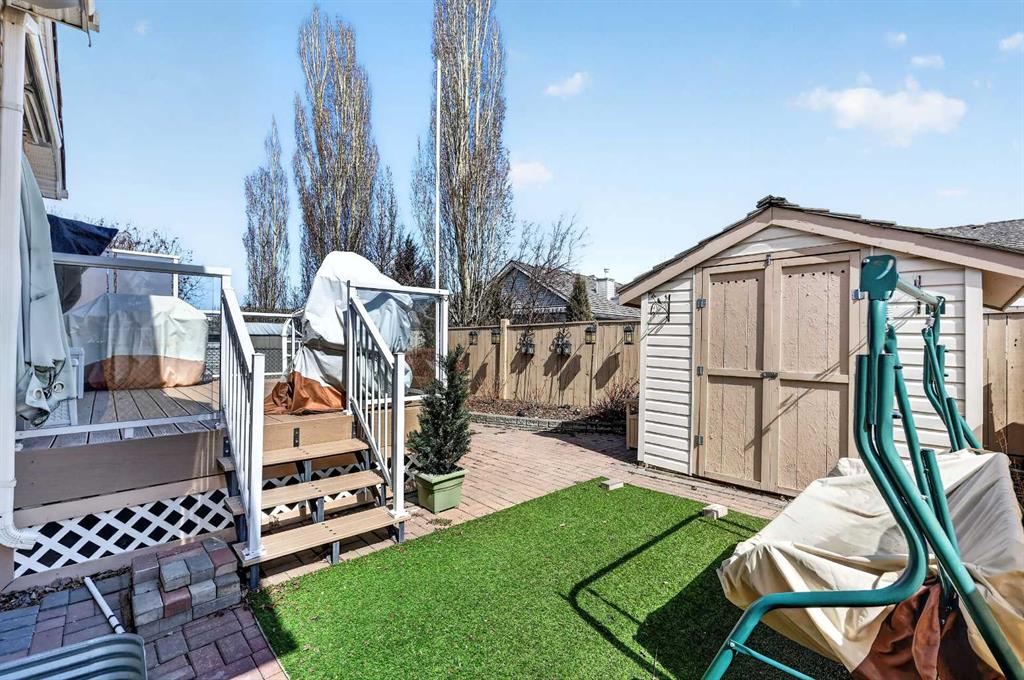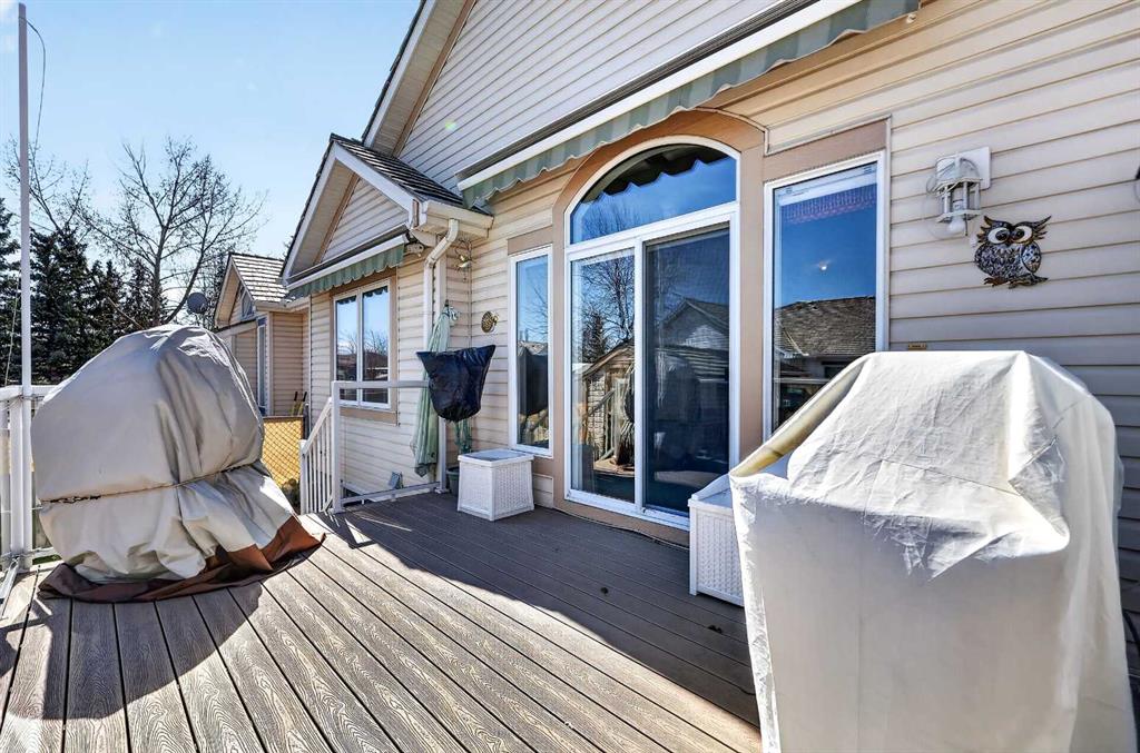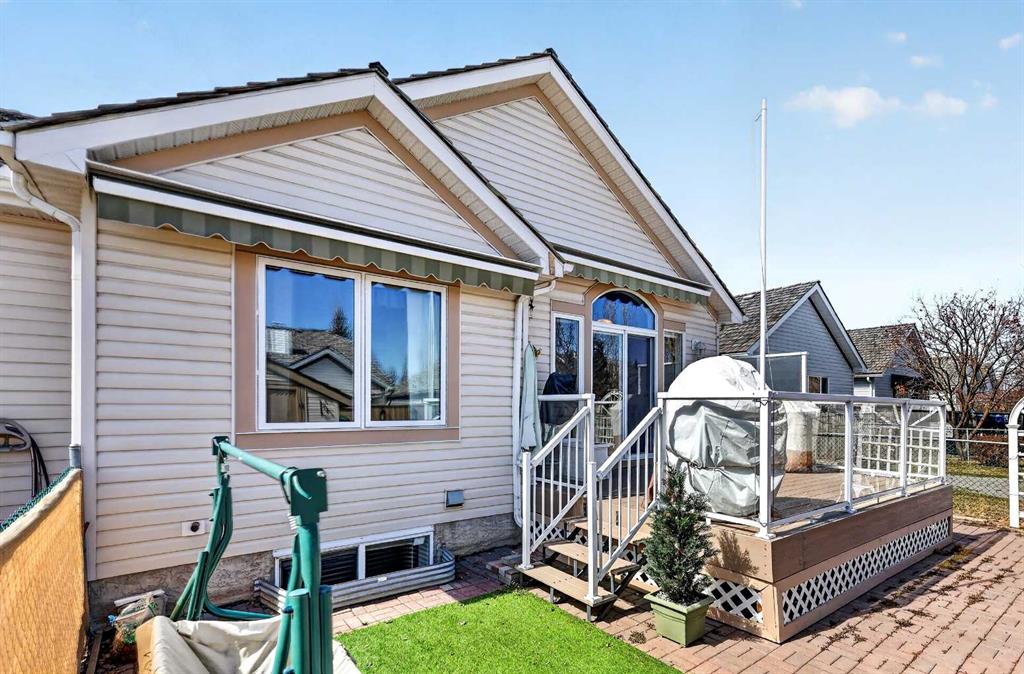 Welcome to 81 Chaparral Villas—where effortless living meets timeless comfort in one of Calgary’s most cherished lake communities. Tucked within the highly sought-after enclave of Chaparral Villas, this beautifully maintained and thoughtfully updated semi-detached bungalow offers over 2,300 sq ft of developed living space—perfectly tailored for those seeking a refined, low-maintenance lifestyle without compromise. From the moment you step inside, you’re welcomed by an airy, light-filled main floor spanning over 1,300 sq ft. A spacious den just off the foyer, framed by oversized windows, creates the ideal setting for a home office, reading retreat, or creative space. As you move into the heart of the home, soaring nearly 13-foot vaulted ceilings elevate the living experience, while expansive windows invite in an abundance of natural light. The fully updated kitchen is both stylish and functional, anchored by a generous flush centre island with stunning quartz countertops featuring crescent edges. Crisp white cabinetry, a modern backsplash, floating shelves, and newer white appliances create a bright and inviting space, complemented by an undermount sink and updated fixtures. The designated dining area, finished in warm hardwood, flows seamlessly into the cozy living room, where a central gas fireplace sets the tone for relaxed evenings. Step outside through the newer patio doors and discover your private outdoor retreat—featuring a composite deck with dual awnings, a stone patio, and beautifully curated low-maintenance landscaping with a charming garden area. This is a space designed for quiet mornings, warm summer afternoons, and easy entertaining. The spacious primary suite offers comfort and tranquility, complete with a newer window, custom built-ins, a walk-in closet, and a well-appointed 4-piece ensuite with a deep soaker tub and separate shower. Main floor laundry with added storage enhances everyday convenience, allowing for true single-level living. The fully finished basement extends your living space with a large family room centered around a second gas fireplace, an expansive bedroom for guests, a full bathroom, a dedicated wood workshop for the hobbyist, and an additional flex area to suit your lifestyle needs. Located in the vibrant lake community of Chaparral, residents enjoy year-round access to pathways, parks, shopping, and a wealth of amenities. Within this quiet villa enclave, pride of ownership shines—neighbours greet one another, daily walks are part of the rhythm, and a true sense of community is felt. This is more than a home—it’s a lifestyle of ease, connection, and comfort.