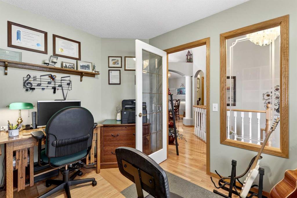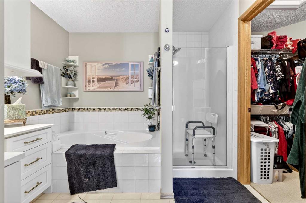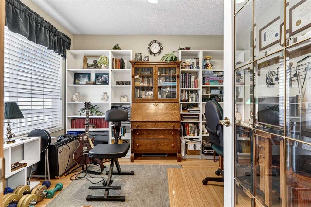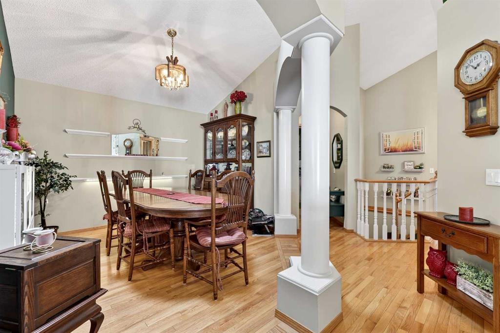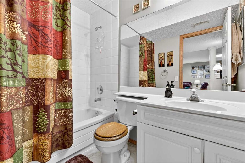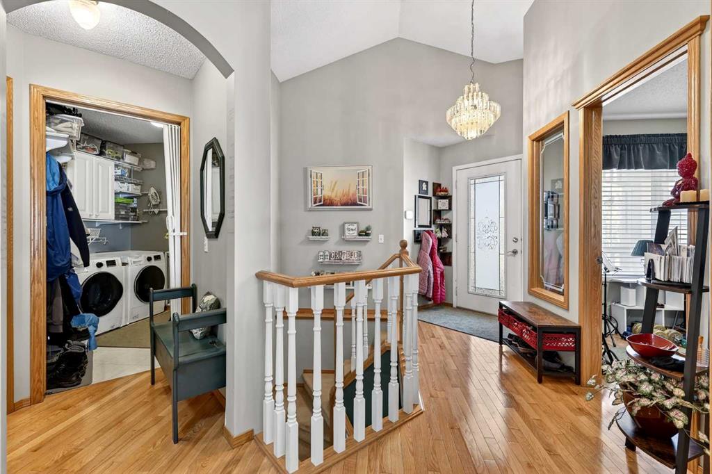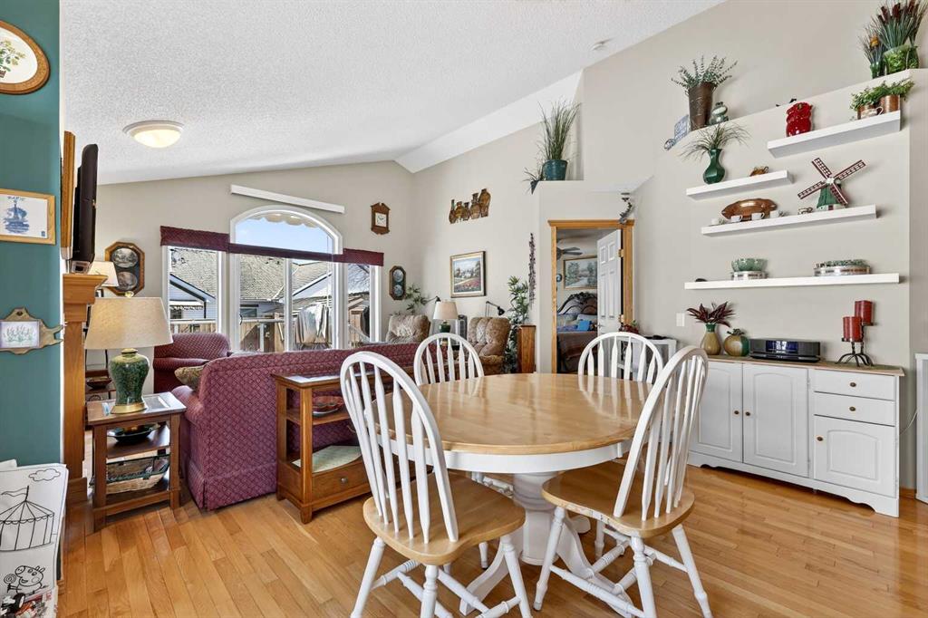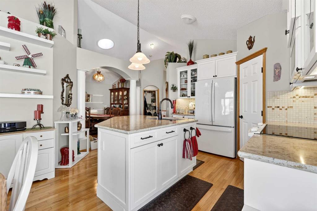 Welcome to 81 Chaparral Villas—where effortless living meets timeless comfort in one of Calgary’s most cherished lake communities. Tucked within the highly sought-after enclave of Chaparral Villas, this beautifully maintained and thoughtfully updated semi-detached bungalow offers over 2,300 sq ft of developed living space—perfectly tailored for those seeking a refined, low-maintenance lifestyle without compromise. From the moment you step inside, you’re welcomed by an airy, light-filled main floor spanning over 1,300 sq ft. A spacious den just off the foyer, framed by oversized windows, creates the ideal setting for a home office, reading retreat, or creative space. As you move into the heart of the home, soaring nearly 13-foot vaulted ceilings elevate the living experience, while expansive windows invite in an abundance of natural light. The fully updated kitchen is both stylish and functional, anchored by a generous flush centre island with stunning quartz countertops featuring crescent edges. Crisp white cabinetry, a modern backsplash, floating shelves, and newer white appliances create a bright and inviting space, complemented by an undermount sink and updated fixtures. The designated dining area, finished in warm hardwood, flows seamlessly into the cozy living room, where a central gas fireplace sets the tone for relaxed evenings. Step outside through the newer patio doors and discover your private outdoor retreat—featuring a composite deck with dual awnings, a stone patio, and beautifully curated low-maintenance landscaping with a charming garden area. This is a space designed for quiet mornings, warm summer afternoons, and easy entertaining. The spacious primary suite offers comfort and tranquility, complete with a newer window, custom built-ins, a walk-in closet, and a well-appointed 4-piece ensuite with a deep soaker tub and separate shower. Main floor laundry with added storage enhances everyday convenience, allowing for true single-level living. The fully finished basement extends your living space with a large family room centered around a second gas fireplace, an expansive bedroom for guests, a full bathroom, a dedicated wood workshop for the hobbyist, and an additional flex area to suit your lifestyle needs. Located in the vibrant lake community of Chaparral, residents enjoy year-round access to pathways, parks, shopping, and a wealth of amenities. Within this quiet villa enclave, pride of ownership shines—neighbours greet one another, daily walks are part of the rhythm, and a true sense of community is felt. This is more than a home—it’s a lifestyle of ease, connection, and comfort.