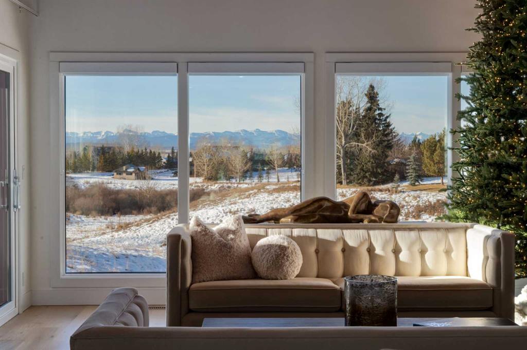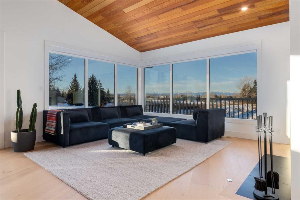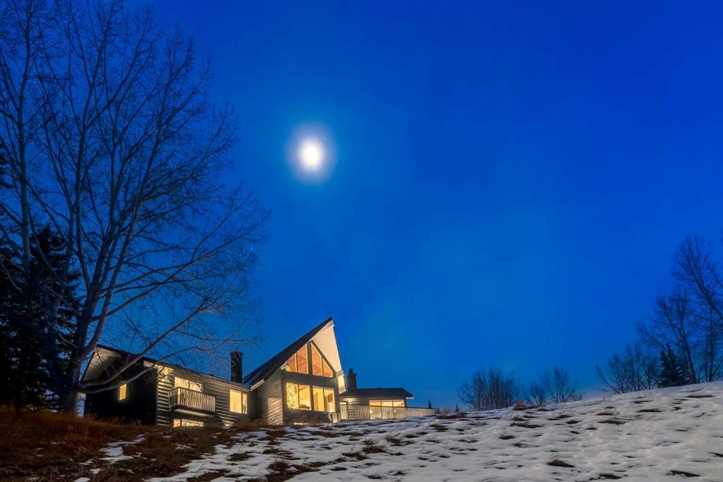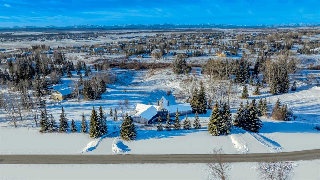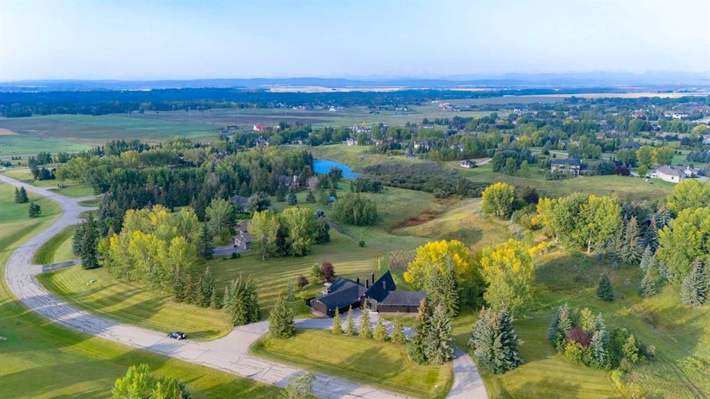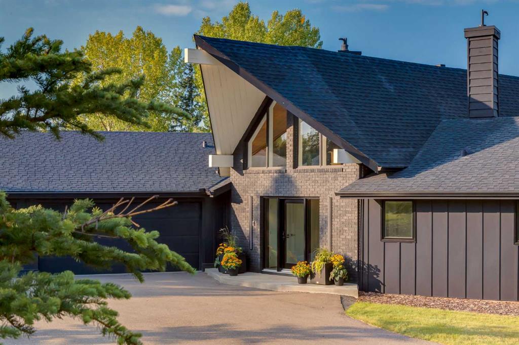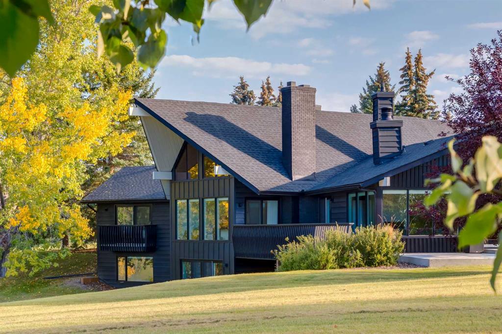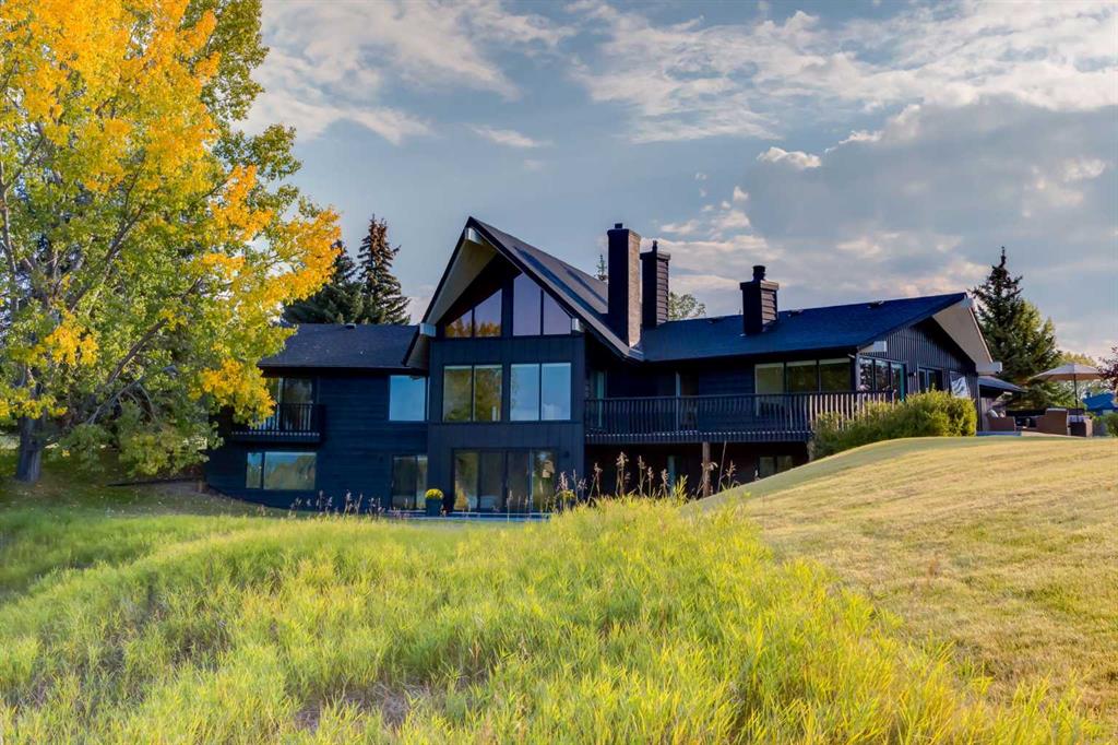 Perched on the edge of the Cullen Creek Valley, this exceptional contemporary residence offers an unparalleled blend of modern luxury and timeless architectural design. With expansive windows framing breathtaking Rocky Mountain vistas, the home is situated on two acres of pristine land at the end of a quiet cul-de-sac in the prestigious Cullen Creek Estates. Boasting over 5,300 square feet of living space, this five-bedroom, 3 ½ -bathroom family home seamlessly integrates new modern amenities with beautiful original architectural features, creating a true reflection of sophistication and comfort. The main floor showcases soaring vaulted ceilings, engineered oak flooring, and two wood-burning fireplaces, adding warmth and character throughout. A beautifully designed “Miele Chef’s Kitchen”, complete with gold-and-black quartz countertops and custom cabinetry anchors the open-concept living space. The private primary suite offers a serene retreat with scenic views and a spa-like ensuite, while two additional bedrooms complete the main-floor bedroom wing. Upstairs, a versatile loft provides endless possibilities, while the walk-out lower-level features two additional bedrooms, a striking two-sided wood-burning fireplace, a wet bar with a wine cooler, a gigantic storage space, an exercise room, and a sauna. Outside, the property is a private oasis with a rolling organic landscape, 45-year-old trees, and backs onto a magical wildlife corridor. The expansive backyard offers endless potential for a swimming pool, greenhouse, or additional garage. Recent upgrades include a new roof, new windows, furnaces, hot water, and water softening system, new cement board and industrial steel siding, new garage doors, and dual air conditioning units. Perfectly situated in one of Alberta’s top school districts, just minutes from shopping, 17 minutes to downtown Calgary and the easy access out to the Rocky Mountains, this home is not only and ideal location but offers a rare combination of natural beauty, modern elegance, and convenience. Don’t miss the opportunity to own this extraordinary property in one of Springbank’s most sought-after neighborhoods. Schedule your private showing today and experience refined, contemporary living at its finest!