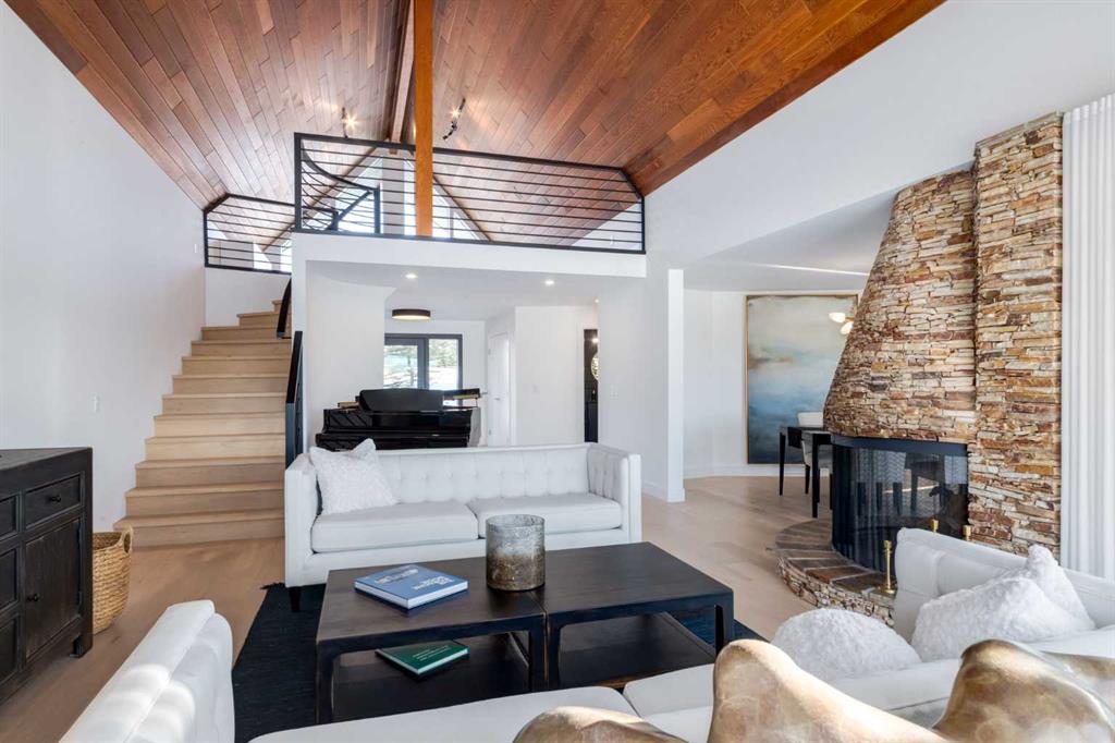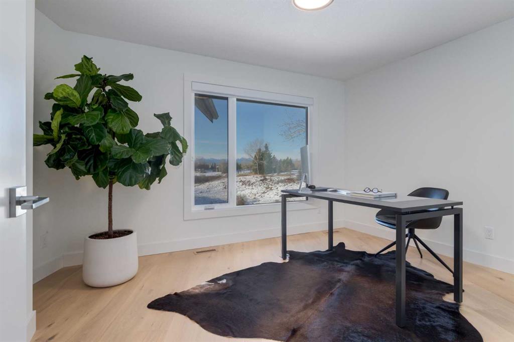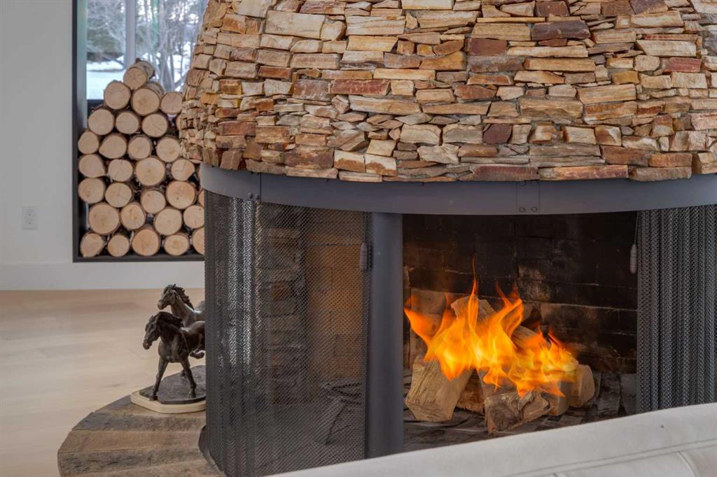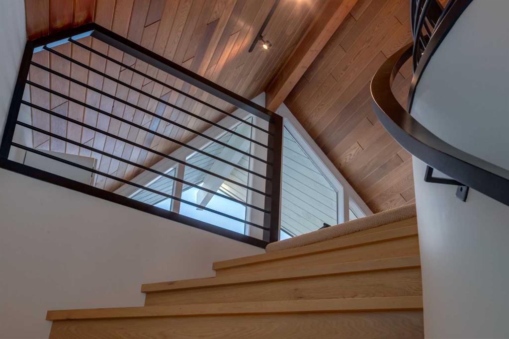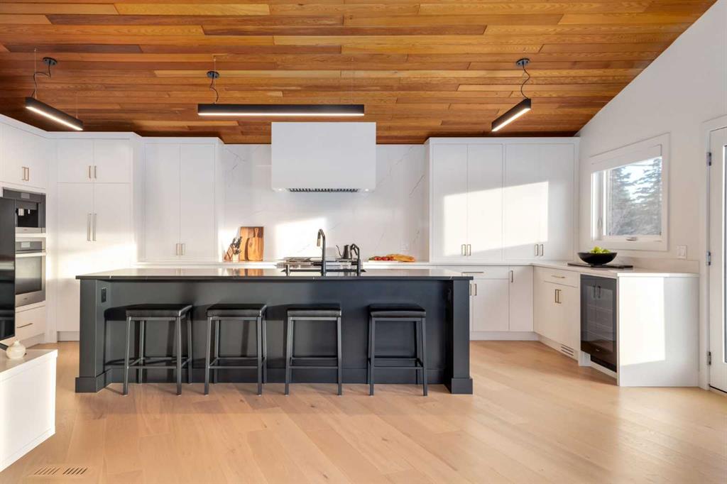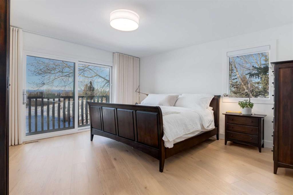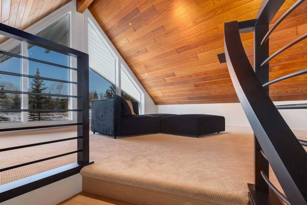 Perched on the edge of the Cullen Creek Valley, this exceptional contemporary residence offers an unparalleled blend of modern luxury and timeless architectural design. With expansive windows framing breathtaking Rocky Mountain vistas, the home is situated on two acres of pristine land at the end of a quiet cul-de-sac in the prestigious Cullen Creek Estates. Boasting over 5,300 square feet of living space, this five-bedroom, 3 ½ -bathroom family home seamlessly integrates new modern amenities with beautiful original architectural features, creating a true reflection of sophistication and comfort. The main floor showcases soaring vaulted ceilings, engineered oak flooring, and two wood-burning fireplaces, adding warmth and character throughout. A beautifully designed “Miele Chef’s Kitchen”, complete with gold-and-black quartz countertops and custom cabinetry anchors the open-concept living space. The private primary suite offers a serene retreat with scenic views and a spa-like ensuite, while two additional bedrooms complete the main-floor bedroom wing. Upstairs, a versatile loft provides endless possibilities, while the walk-out lower-level features two additional bedrooms, a striking two-sided wood-burning fireplace, a wet bar with a wine cooler, a gigantic storage space, an exercise room, and a sauna. Outside, the property is a private oasis with a rolling organic landscape, 45-year-old trees, and backs onto a magical wildlife corridor. The expansive backyard offers endless potential for a swimming pool, greenhouse, or additional garage. Recent upgrades include a new roof, new windows, furnaces, hot water, and water softening system, new cement board and industrial steel siding, new garage doors, and dual air conditioning units. Perfectly situated in one of Alberta’s top school districts, just minutes from shopping, 17 minutes to downtown Calgary and the easy access out to the Rocky Mountains, this home is not only and ideal location but offers a rare combination of natural beauty, modern elegance, and convenience. Don’t miss the opportunity to own this extraordinary property in one of Springbank’s most sought-after neighborhoods. Schedule your private showing today and experience refined, contemporary living at its finest!