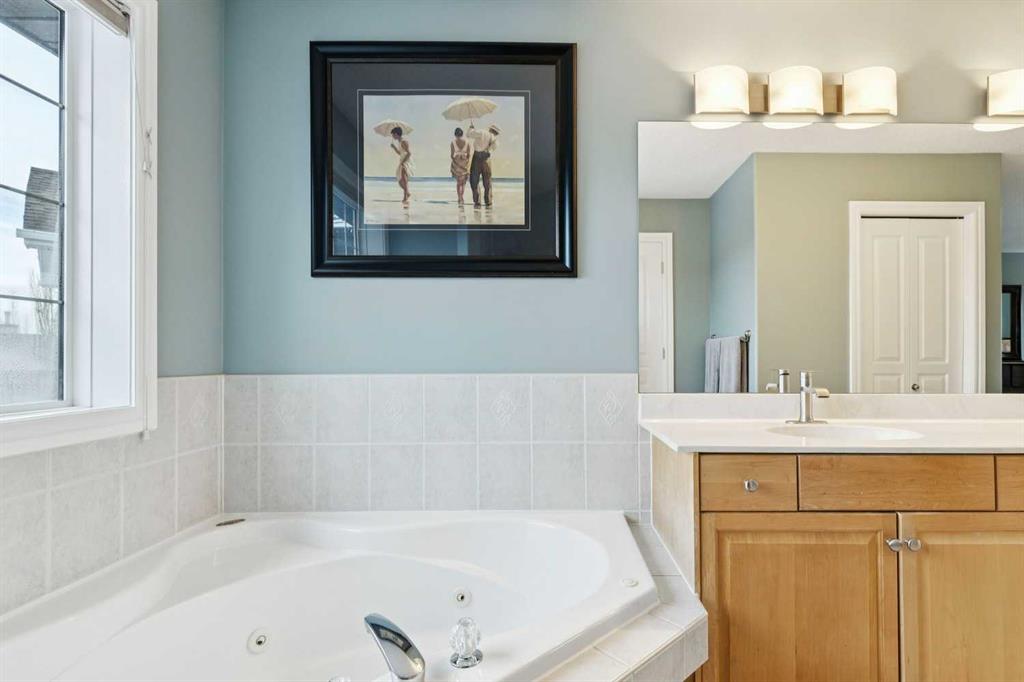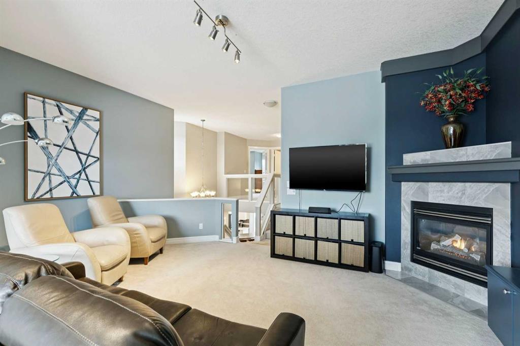 *Open House Saturday January 17, 1:00 – 3:30p.m.* This is the kind of home where families put down roots. It is tucked away on a quiet cul-de-sac in one of the most sought-after pockets of the community, with a south facing yard backing on to a treed green space. With a charming front porch, a welcoming red door, and a flowering tree providing curb appeal, the tone is set from the moment you arrive. Inside, refinished hardwood floors lead you through a comfortable living room anchored by a fireplace and flowing seamlessly into the open-concept kitchen and dining area designed for everyday life. The kitchen has been thoughtfully updated in a fresh black and white palette, featuring quartz countertops, stainless steel appliances, a gas cooktop, a central island with seating, and a spacious pantry that keeps everything organized and within reach. A dedicated main-floor den offers an ideal work-from-home space, complete with built-in bookcases and a peaceful outlook to the front porch. Upstairs, the home truly shines for family living. A generous bonus room with vaulted ceilings and a fireplace creates the perfect gathering place for movie nights, games, or simply unwinding together. The primary bedroom is a serene retreat, with space for a sitting area overlooking the backyard, a walk-in closet, and a private ensuite. Two additional bedrooms – one with a built-in desk, along with a full bathroom complete the upper level.