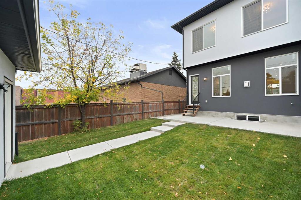 Calling all Investors! Looking for a brand new SXS Duplex with legal basement suites? This 8112 unit can be sold together with attached 8114 to provide an excellent cash flowing opportunity with the convenience of having all construction materials and components still under New Home Warranty. Both 8112 and 8114 are rented on long term leases with tenants who would prefer to stay. This unit rents monthly at $2900 for the upper suite + 70% util. and $1250 + 30% util. for the lower suite. Amazing home boasting elevated design and incredible functionality, featuring a legal 2-bedroom basement suite and a sunny south exposed front with expansive valley views from the upper floor. Every detail was thoughtfully selected, from the wide-plank modern floors to the curated lighting and premium finishes throughout. Step inside to a bright, open-concept main floor with 10′ ceilings, oversized windows and neutral tones that create an airy, inviting vibe. The large, well-lit dining room is perfect for bigger families and/or hosting guests and shows off a vibrant and colourful feature wall, which flows seamlessly into a designer kitchen featuring modern warm toned cabinetry, paired with beautifully coloured glass backsplash, quartz countertops, matte black hardware, a huge walk-in pantry with built-in shelving, and a perfect-sized center island with bar seating with more natural wood tones, bringing everything together beautifully. The upgraded stainless steel appliance package includes an oversized sub zero fridge with french doors, a gas cooktop with stylish hood fan, and a thoughtfully placed wall oven and microwave. The rear living room is wide and spacious featuring additional large windows plus a cozy gas fireplace with stone surround and custom mantle, and which leads you out to the large backyard, which features an oversized concrete pad, perfect for end of the day BBQ’s and lounging. An enclosed mudroom with a large closet area and a sleek powder room that comes with a raised matte black sink complete the mainfloor. Upstairs contains the three large bedrooms, all with trayed ceilings, including the primary bedroom which is a true retreat that features a large walk-in closet with several custom built-ins plus a hotel like ensuite. Enjoy heated tile flooring, dual sinks, quartz countertops, matching tile surrounds, plus a free standing soaker tub and an oversized glass shower with rain shower head and roughed-in for steam. The upper laundry room comes with a sink, quartz countertops, additional wood toned cabinetry, and is situated beside the stylish full bathroom which features a tiled tub/shower combo. Downstairs features the thoughtfully designed legal 2 bedroom suite and features 9′ ceilings, luxury vinyl plank flooring, wonderfully warm toned cabinetry, stainless steel appliances and lots of pot lighting. A full bathroom with elegant tile is also featured plus a dedicated laundry room, separate side entrance and storage, making this perfect for rental income.