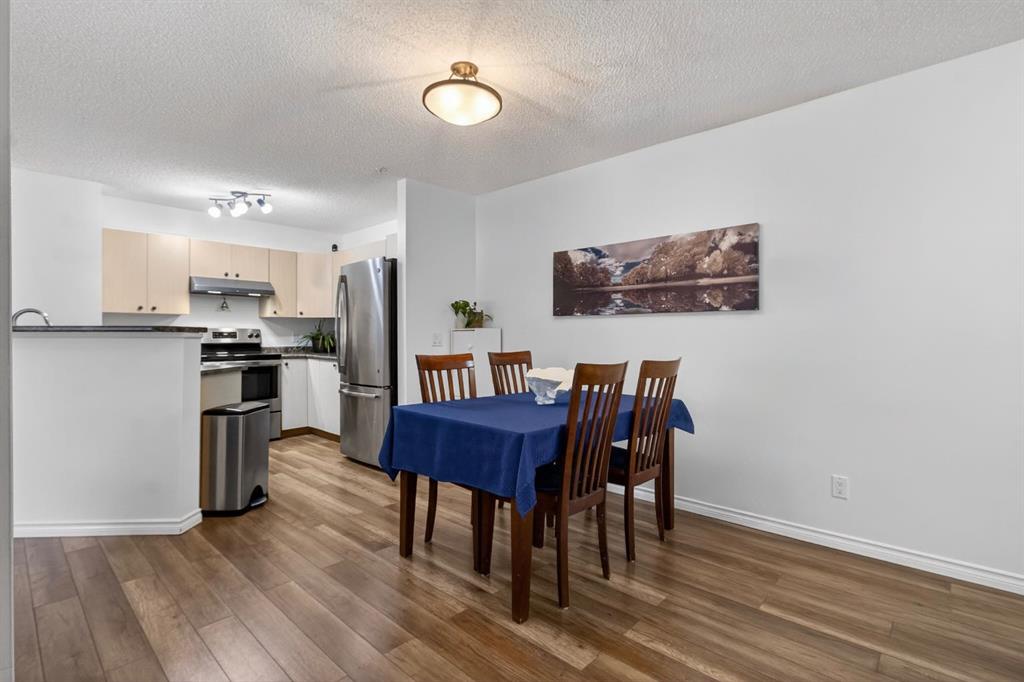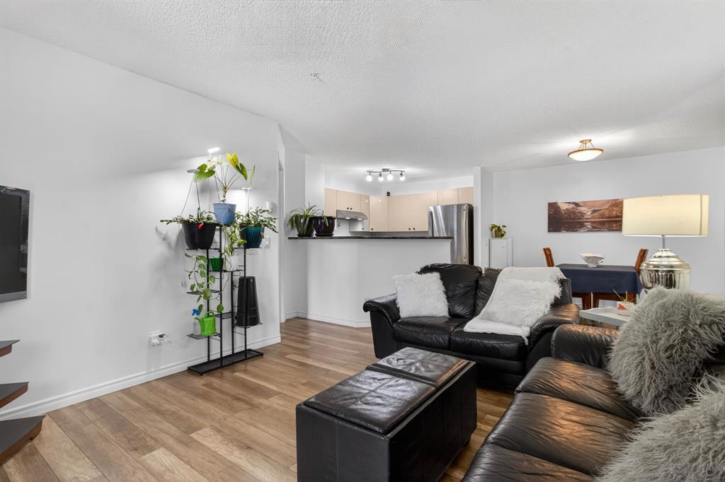 Welcome to Mackenzie Pointe backing onto green space, all utiities are included with the condo fees. This beautifully maintained ground-floor 2 bedroom, 2 bathroom condo offers incredible value with two parking stalls (titled underground + assigned outdoor) and a titled storage locker. Step inside to a bright, modern interior featuring upgraded laminate flooring and fresh paint throughout. The welcoming entryway offers excellent functionality with two closets, including one with in-suite laundry. The open-concept layout creates a seamless flow, perfect for both everyday living and entertaining. The spacious kitchen is thoughtfully designed with light-toned cabinetry, a breakfast bar, and newer stainless steel appliances. Overlooking the dining and living areas, it allows you to stay connected while hosting or enjoying a quiet night in. The living room is filled with natural light from a large sliding glass door that leads to your private, covered northwest-facing patio, backing onto beautiful greenspace and mature trees, a peaceful setting to relax and unwind. The generous primary suite features a bright window, walk-in closet, and a private 4-piece ensuite. The second bedroom is ideally located on the opposite side of the unit, complete with its own 4-piece bathroom, perfect for guests, roommates, or added privacy. Additional highlights include, ground-floor convenience, all utilities included, titled underground parking (truck-friendly), second outdoor stall steps from the entrance, titled storage locker, private covered patio backing greenspace. Move-in ready and offering exceptional comfort and convenience, this is one you won’t want to miss. Book your private showing today!