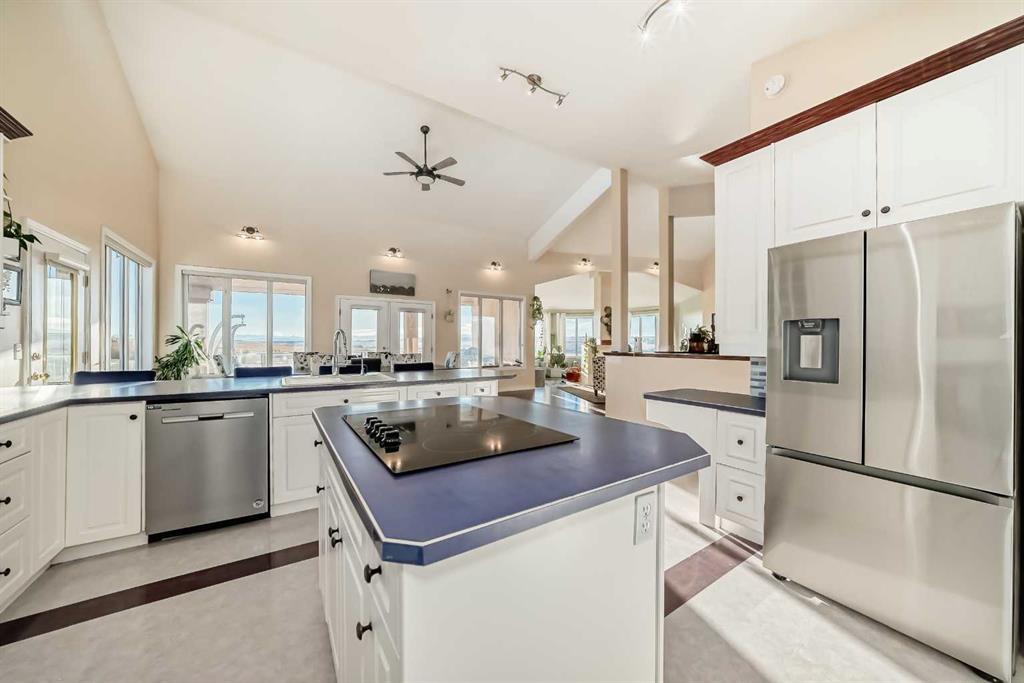 Spacious 2,890 sq. ft. Walkout Bungalow on 3.2 Acres — Solid, Spacious, and Ready for Your Vision. Welcome to 8121 408 Avenue East, where wide-open Foothills skies meet exceptional space and opportunity. Just 2.5 km south of Okotoks, this nearly 2,900 sq. ft. walkout bungalow with over 2,000 sq. ft. of developed lower level offers more than 4,800 sq. ft. of total living space: ideal for large families, multi-generational living, or anyone seeking a peaceful country lifestyle close to town. Bright, open, and thoughtfully designed, this home provides the perfect foundation for your dream renovation, without the frustration of undoing someone else’s dated or overly personalized remodels. The neutral finishes, solid craftsmanship, and timeless layout make it easy to move in now, enjoy comfortably, and update at your own pace. The open-concept main floor is ideal for entertaining and everyday life. The spacious kitchen features two pantries, a large island, and breakfast bar seating, all flowing into a sun-filled living area with a double-sided woodburning fireplace and expansive west-facing windows framing the mountain views. Patio doors open to a generous deck for effortless indoor-outdoor living. The primary suite offers a private retreat with its own deck, walk-in closet, and 5-piece ensuite. Two additional bedrooms, including one with a loft perfect for an office or playroom, plus a full bath and large laundry/mudroom with built-in storage complete the main level. Downstairs, the walkout basement with in-floor heating (keeps heating costs low) delivers incredible flexibility and immediate income potential. A 2-bedroom illegal suite with full kitchen, family room, and separate bathroom layout is ideal for rental income, extended family, or independent teens. The suite enjoys private patio access overlooking the pond and rolling landscape. Outdoors, you’ll find 3.2 acres of mature trees, a tranquil pond, and open spaces for kids and pets to explore. Wildlife visitors from foxes and owls to a pair of ducks who return each spring. With a double attached garage and workshop, RV parking, and ample driveway space, there’s plenty of room for vehicles, hobbies, and storage. This is a rare opportunity to own a large, well-built country home with great bones, smart layout, and no bad renos to undo. Move in now, modernize when you’re ready, and start earning income right away. Fast possession available.